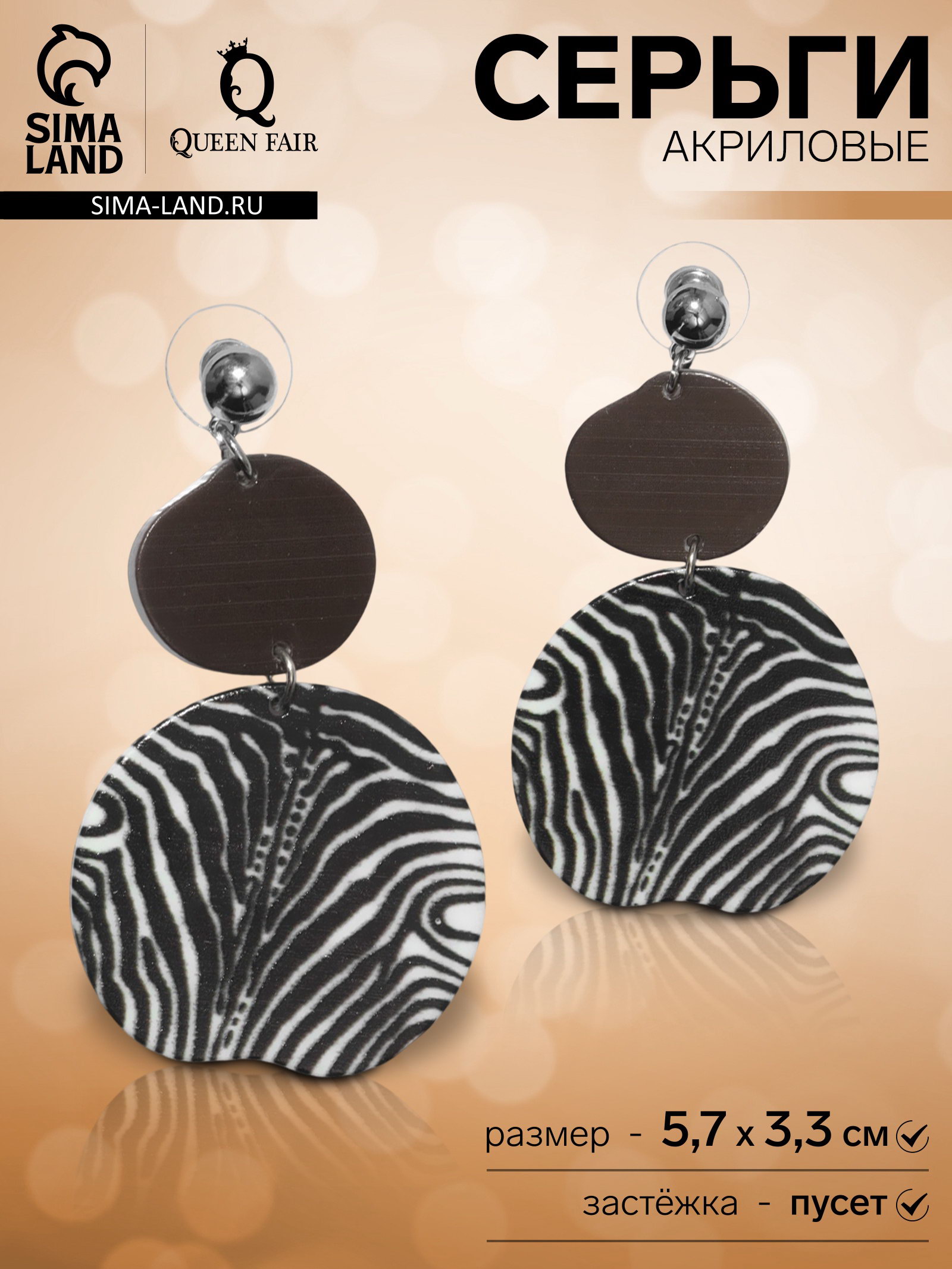 Серьги акриловые "Круг", цвет чёрно-белый в серебре, 3.3x5.7x0.5 см., QF, Китай