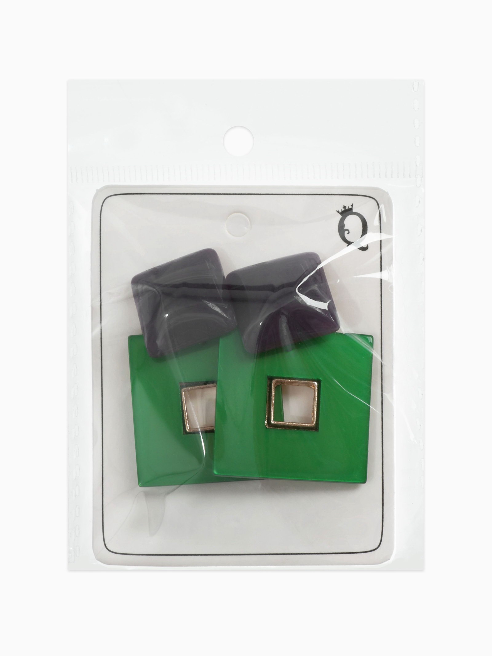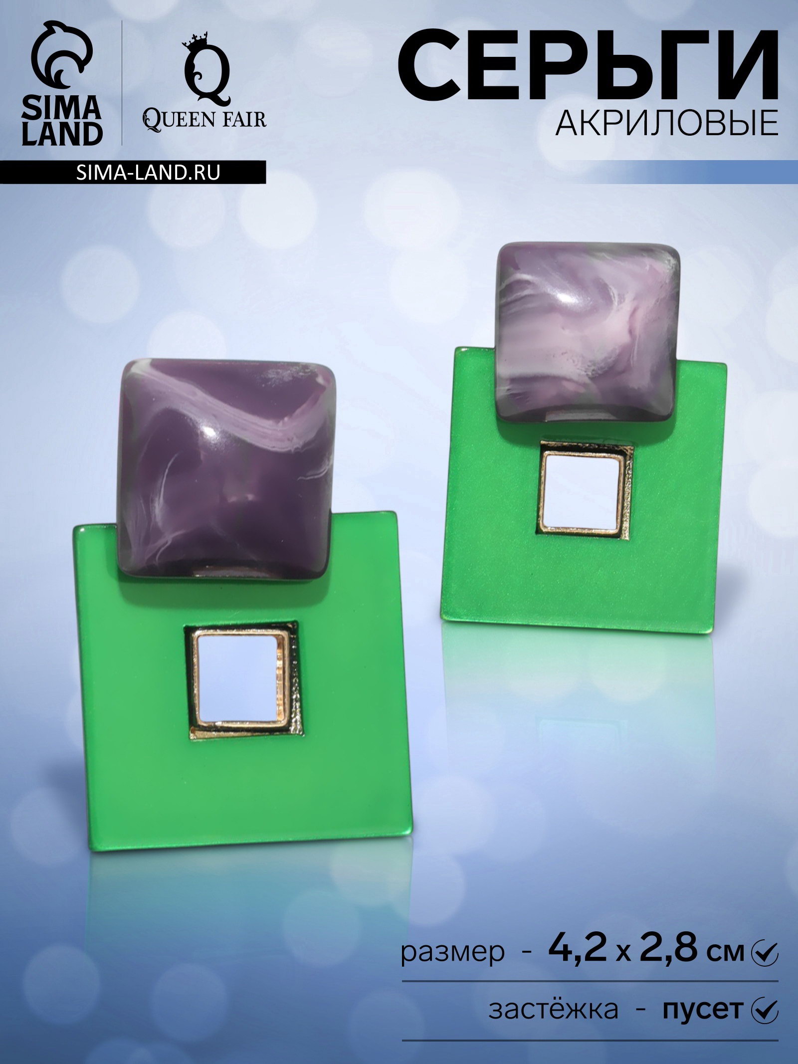 Серьги акриловые "Квадро", цвет зелёно-фиолетовый в золоте, 2.8x4.2x1 см., QF, Китай