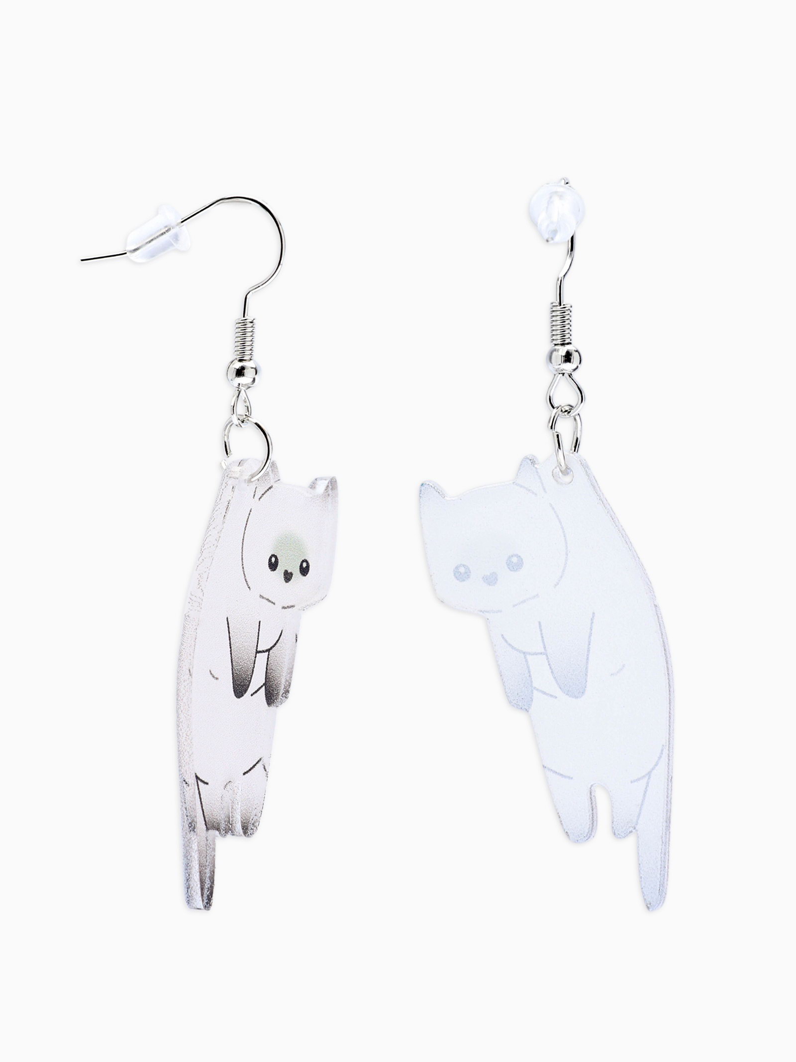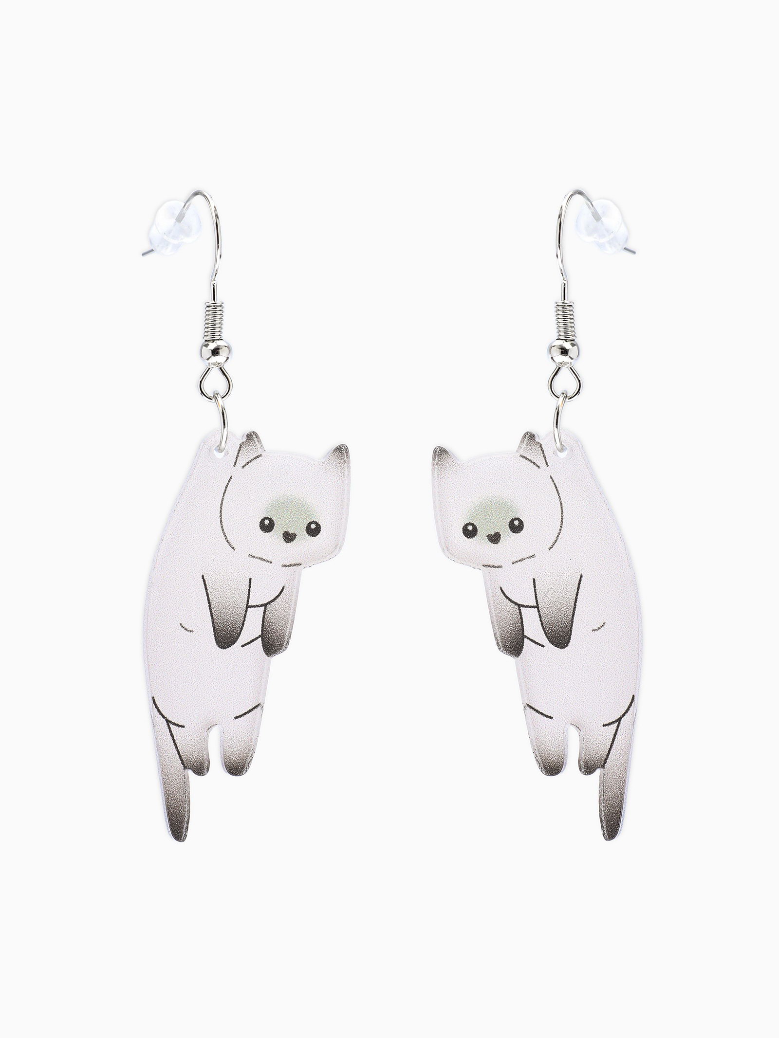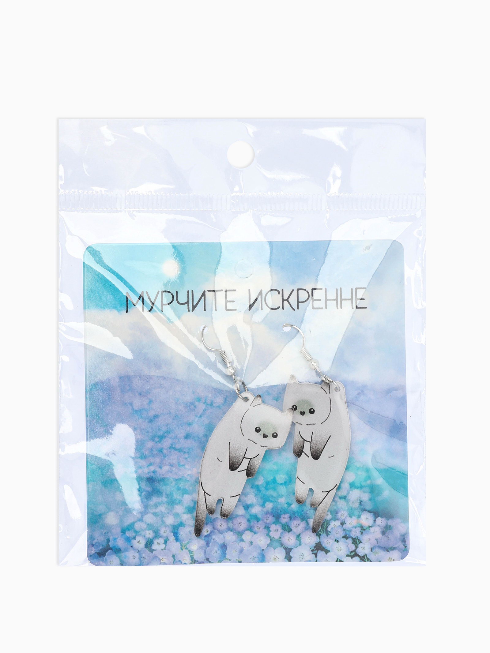 Серьги акрил "Котики", цвет бело-серый, 1.6x5x0.3 см., Queen fair, Китай