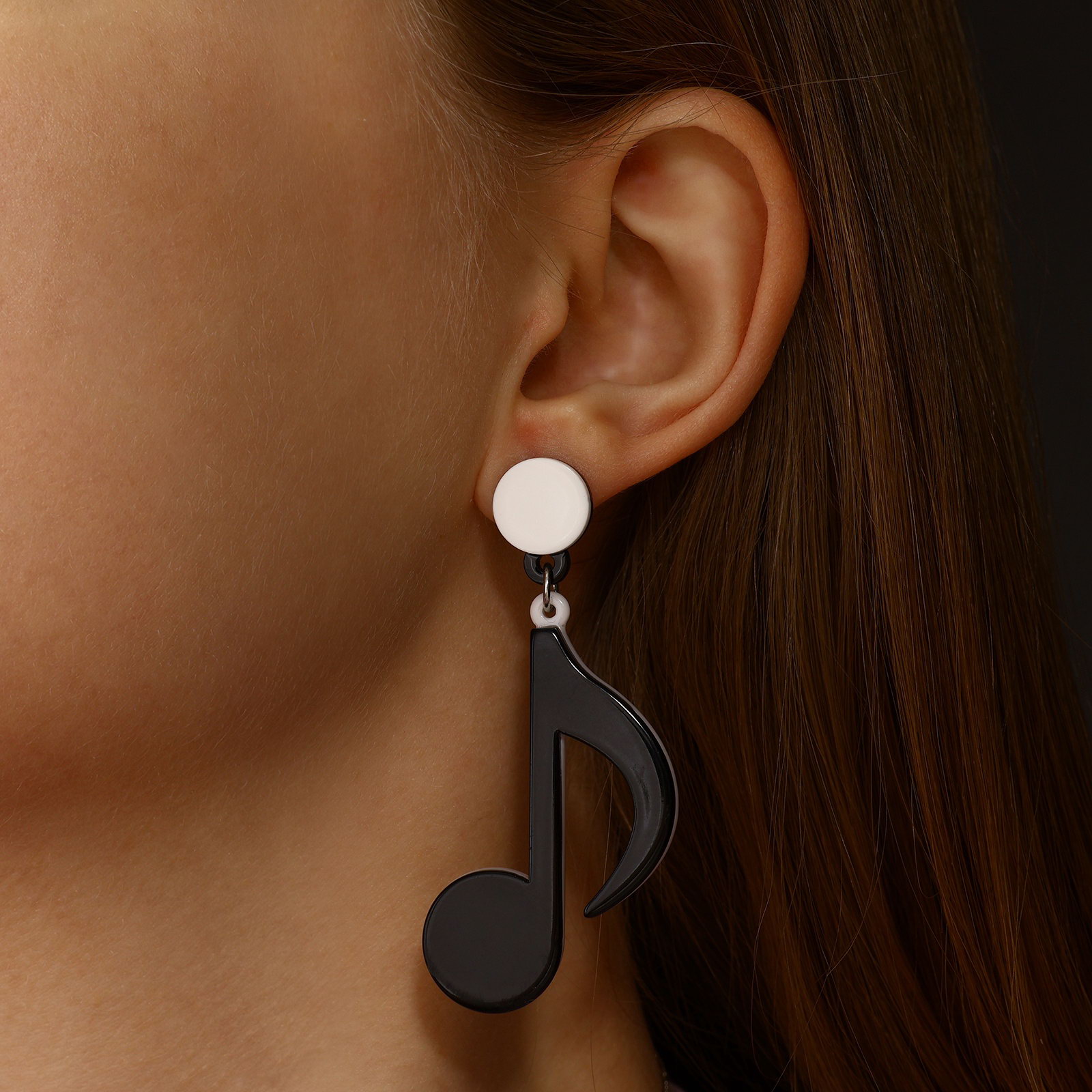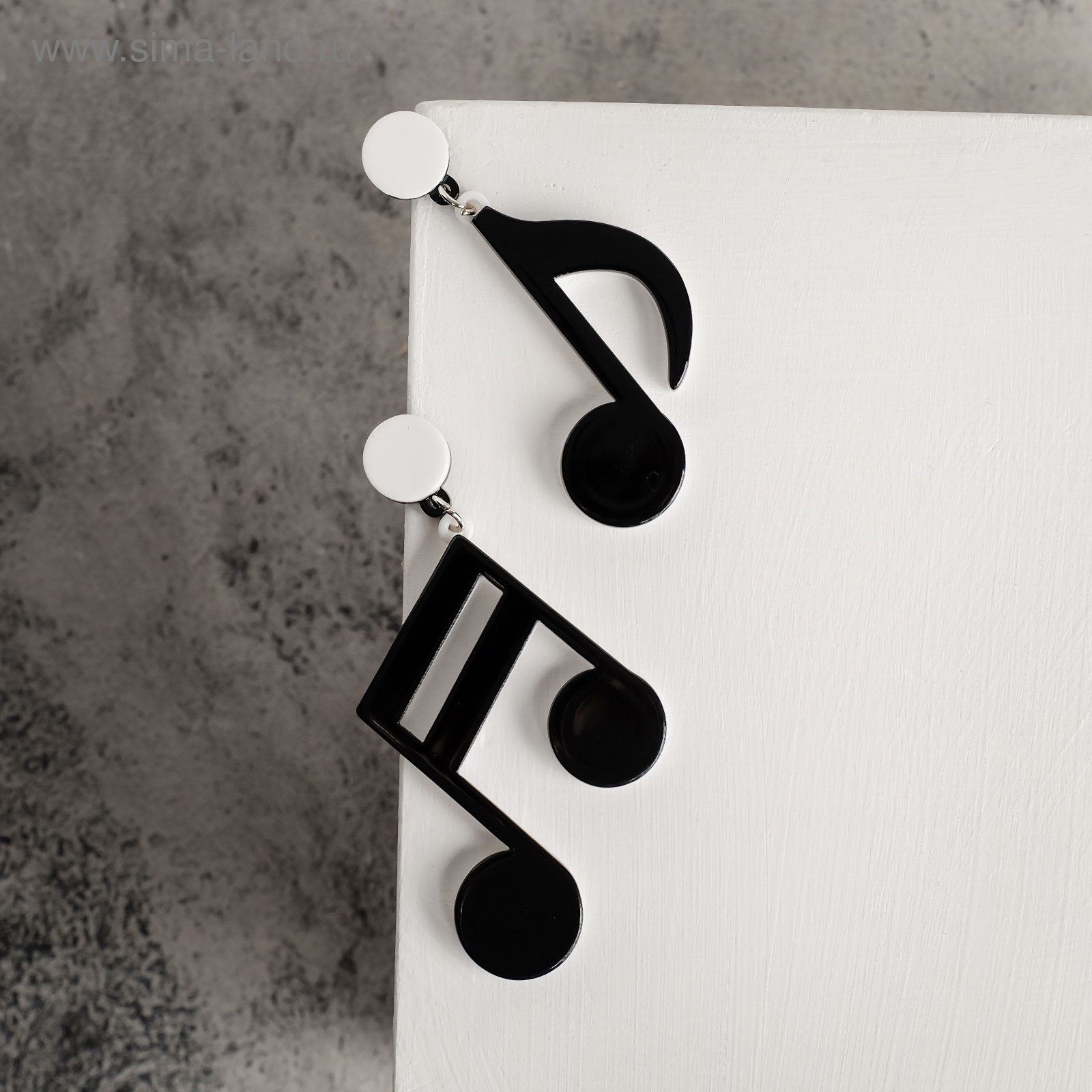 Серьги пластик "Вивьен" ноты, цвет чёрно-белый, 4x7x0.5 см., QF, Китай