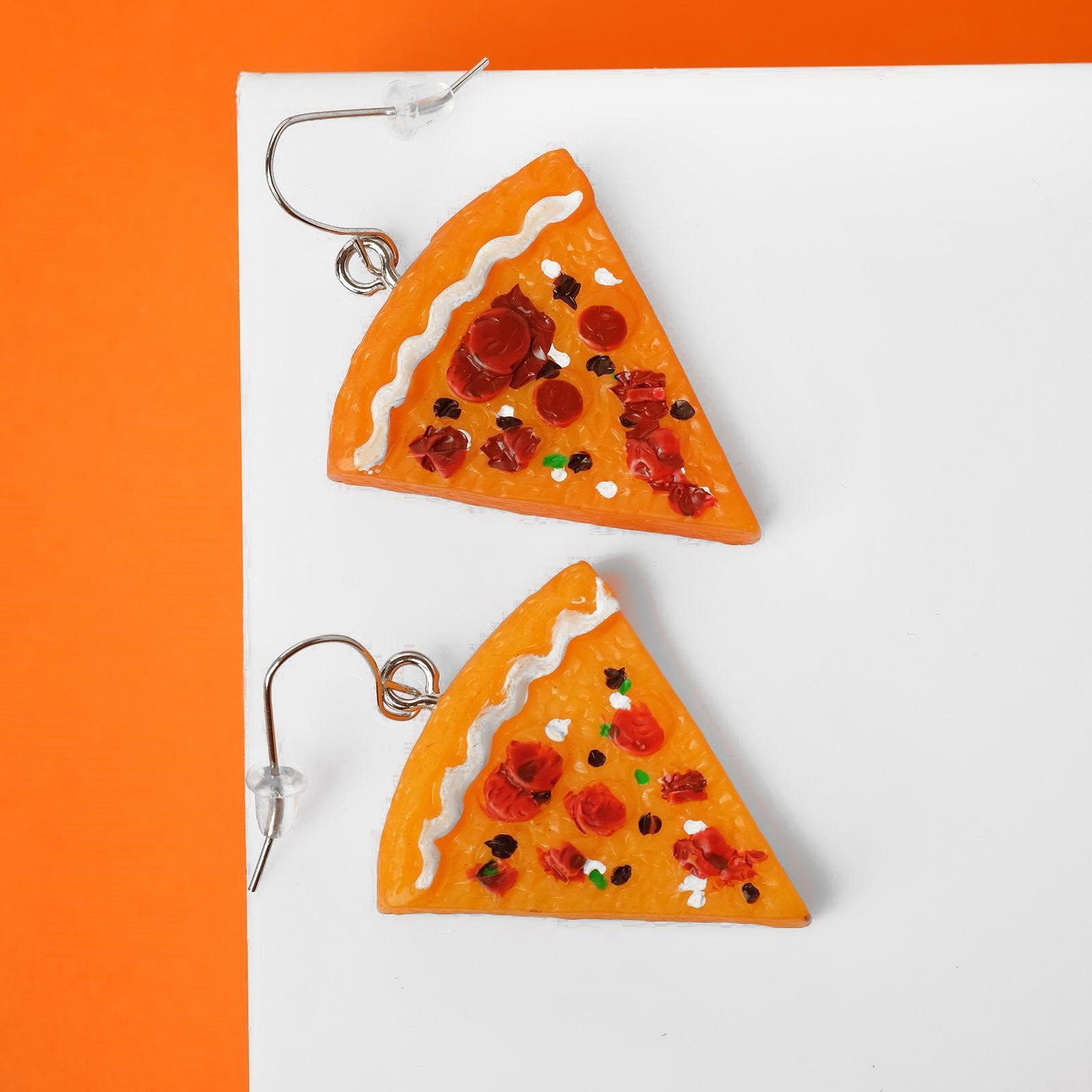 Серьги пластик "Вкусности" пицца, цвет оранжево-красный, 3x3x1 см., QF, Китай