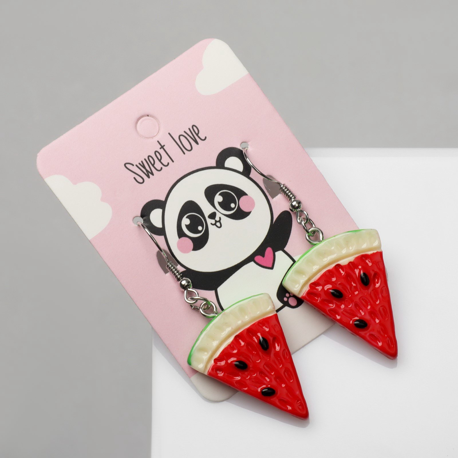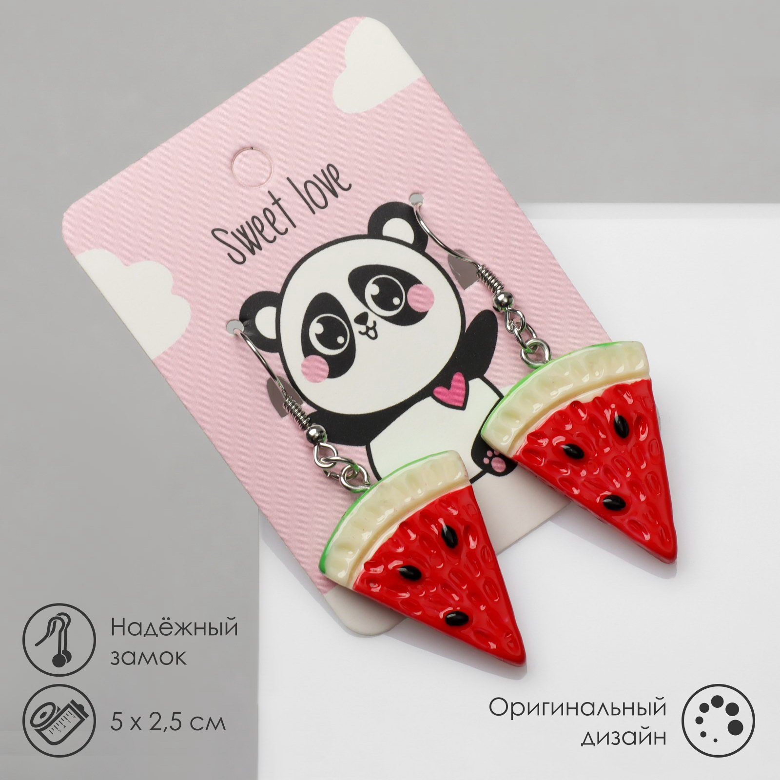 Серьги пластик "Вкусности" арбуз, красно-зелёные, 2.5x5x1 см., QF, Китай