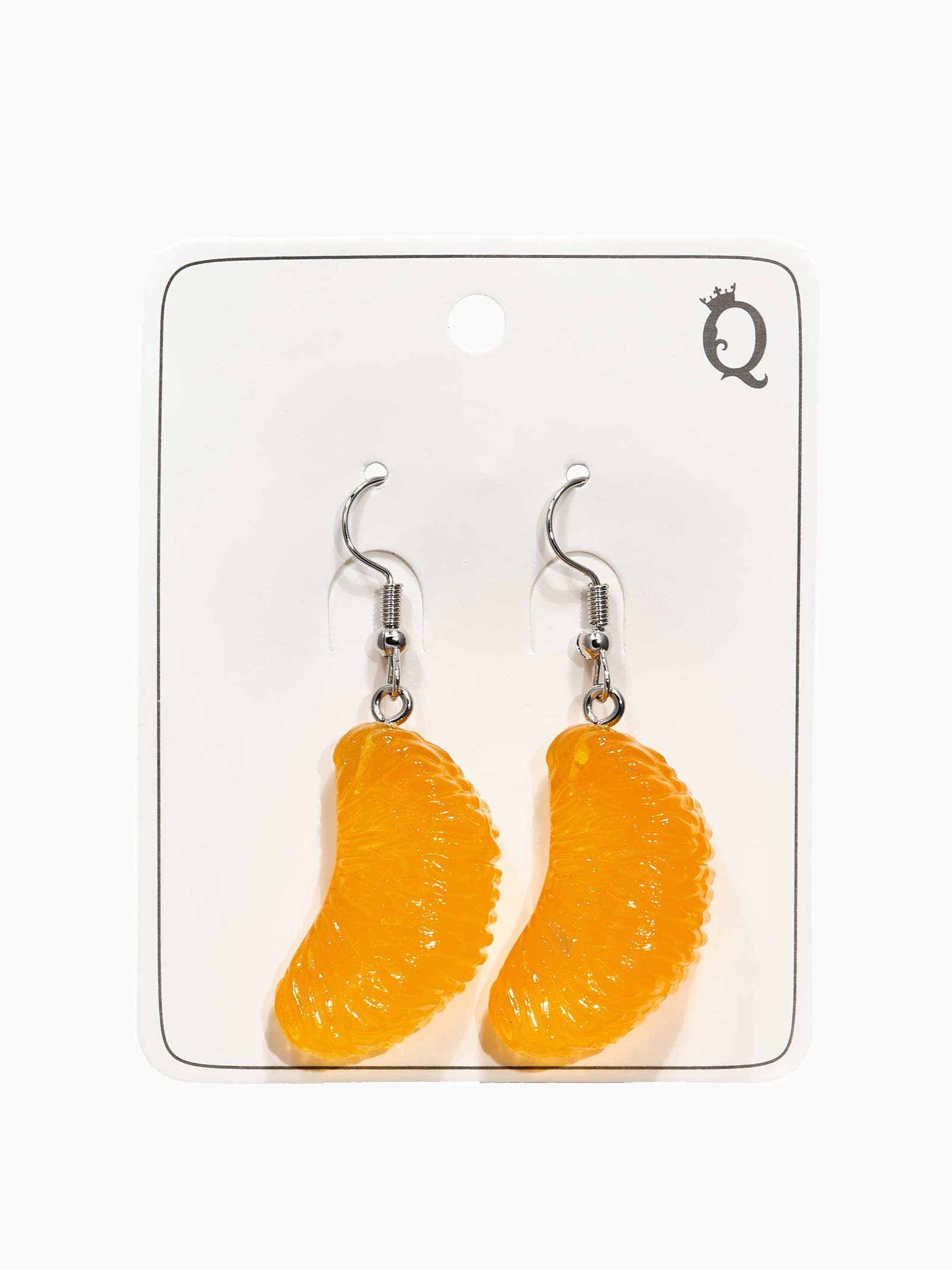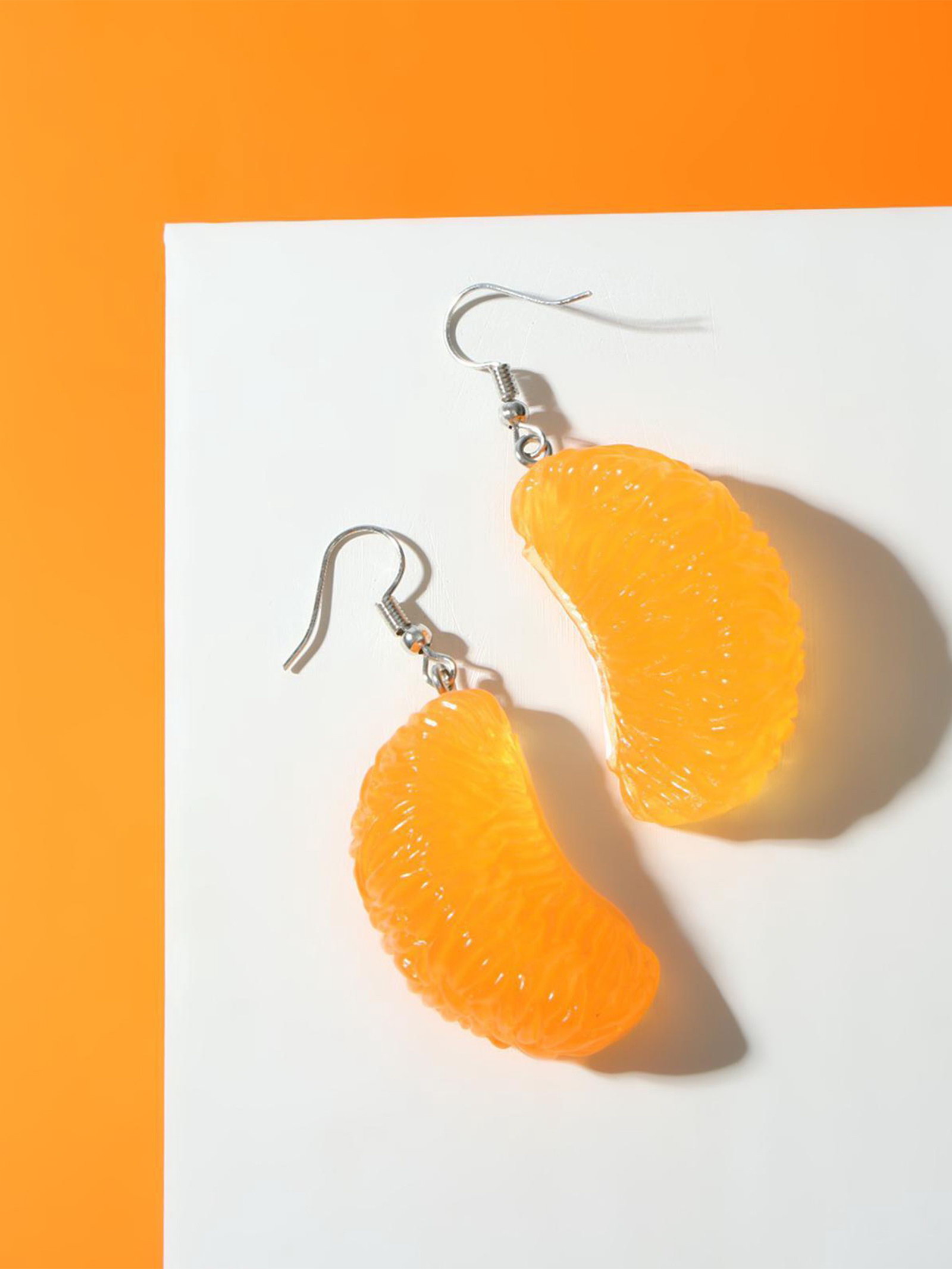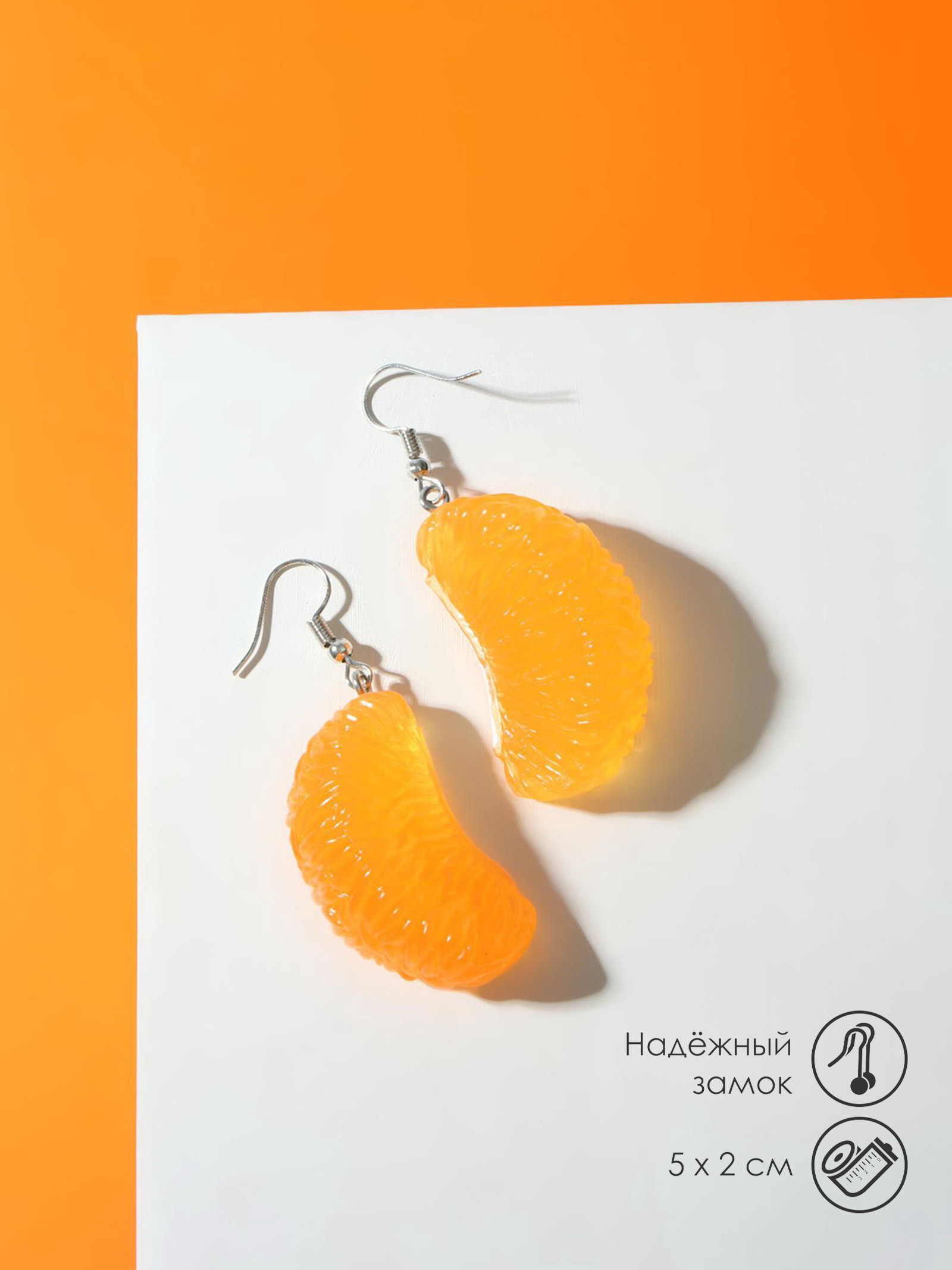 Серьги "Вкусности. Дольки мандарина", пластик, оранжевые, 2x5x1.5 см., QF, Китай