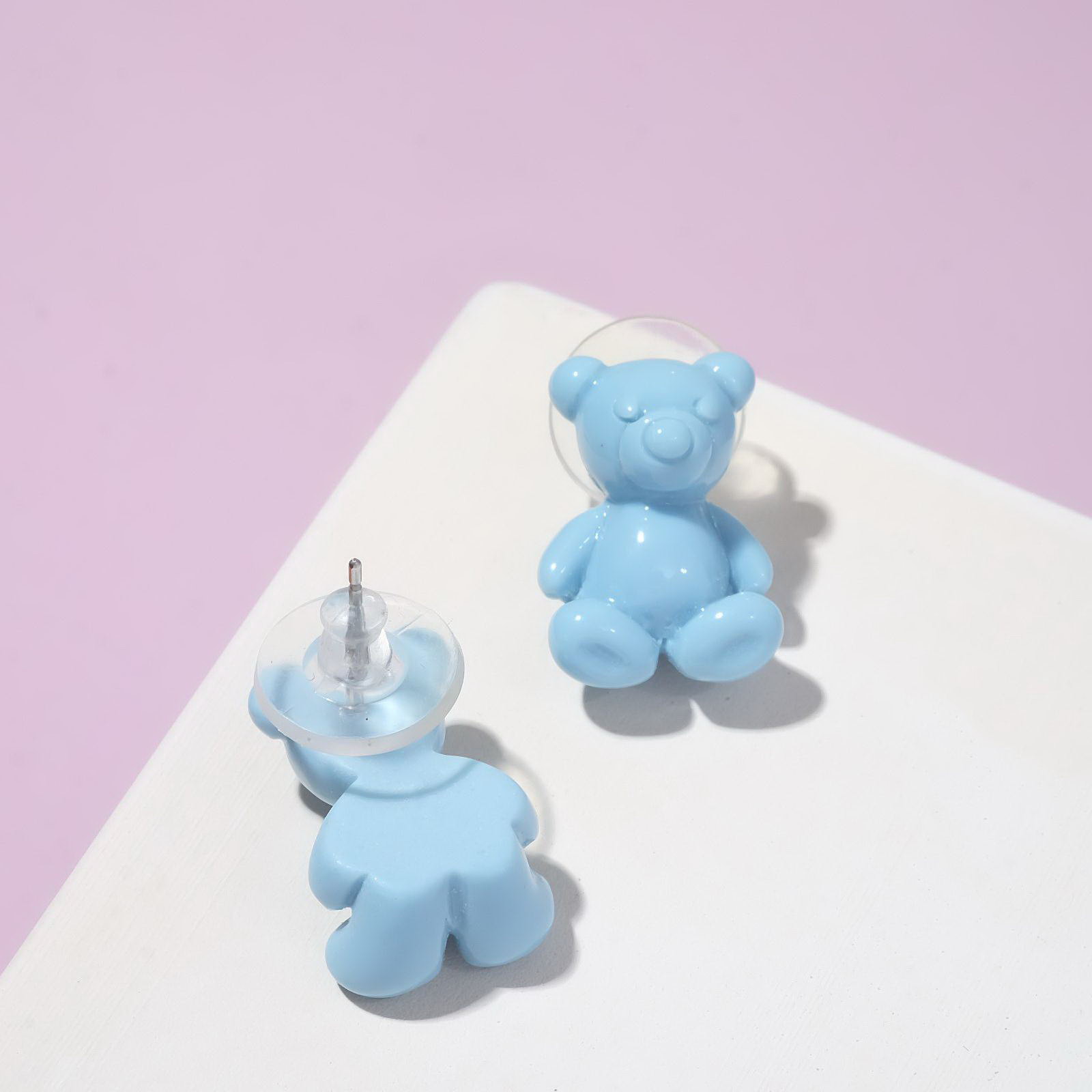 Серьги пластик "Мишки" объёмные, цвет голубой, 1x2x1 см., QF, Китай