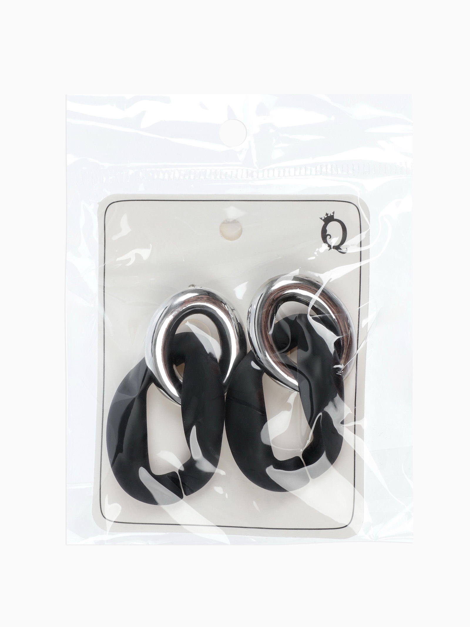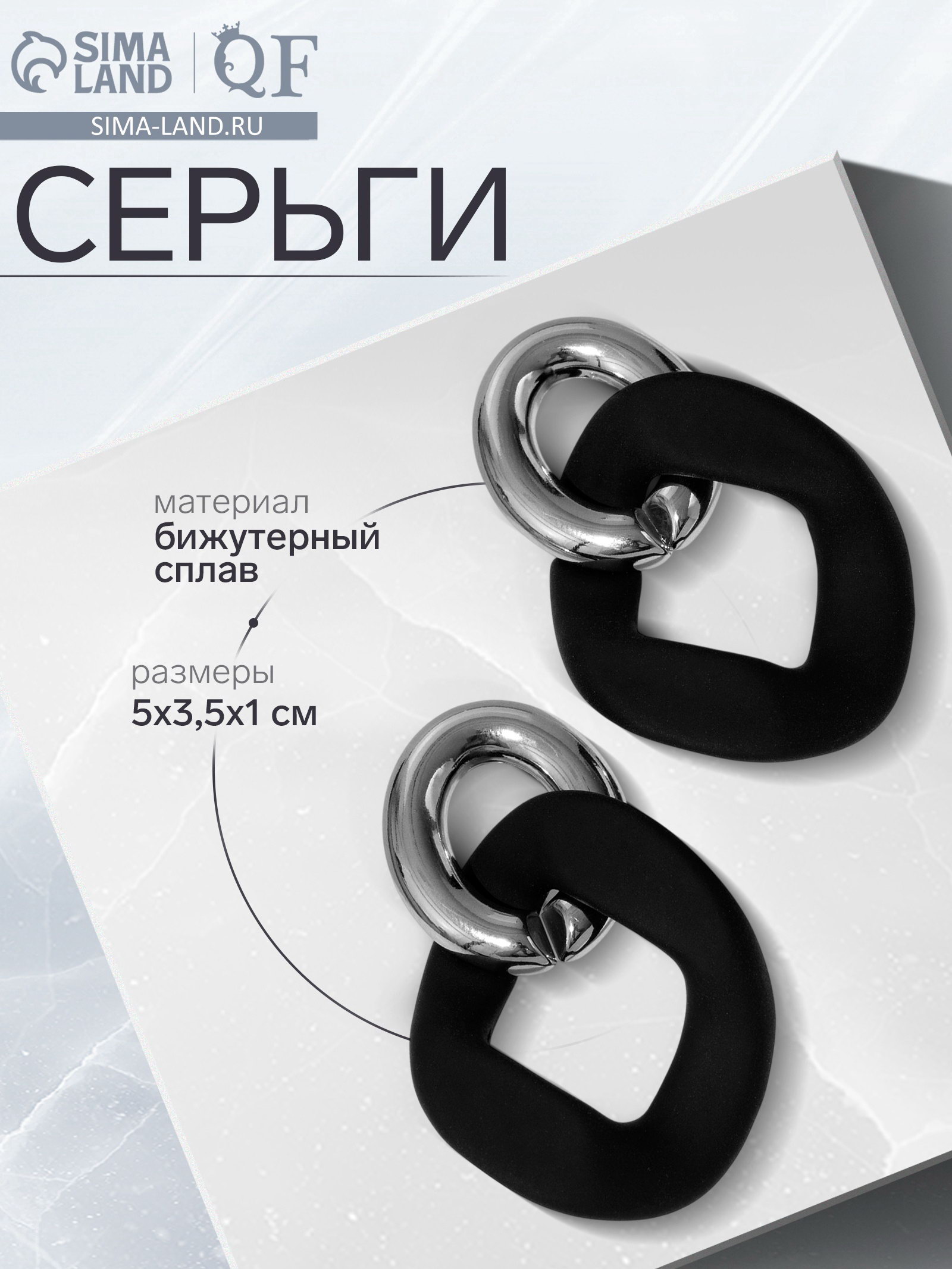 Серьги металл "Цепь" неровность, 2 звена, цвет серебристо-чёрный, 3.5x5x1 см., QF, Китай