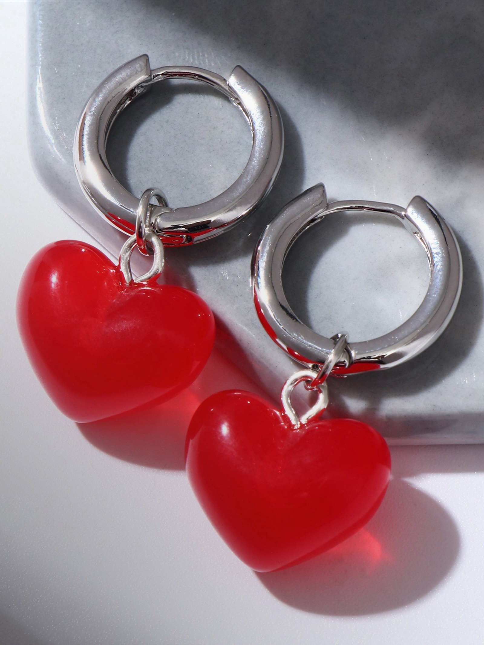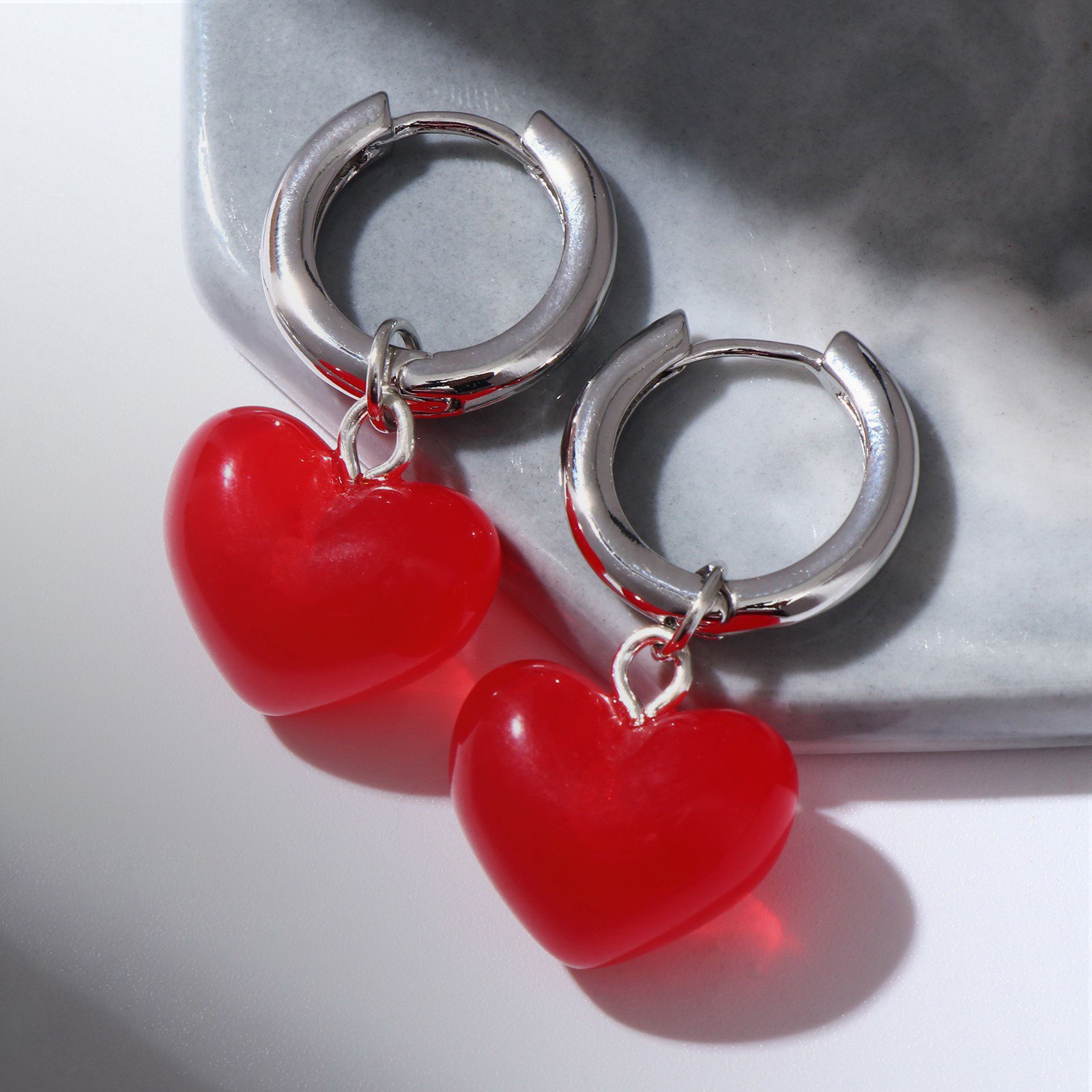 Серьги со съёмным элементом "Трансформер" сердечки, красные в серебре, 2x4x1.8 см., QF, Китай