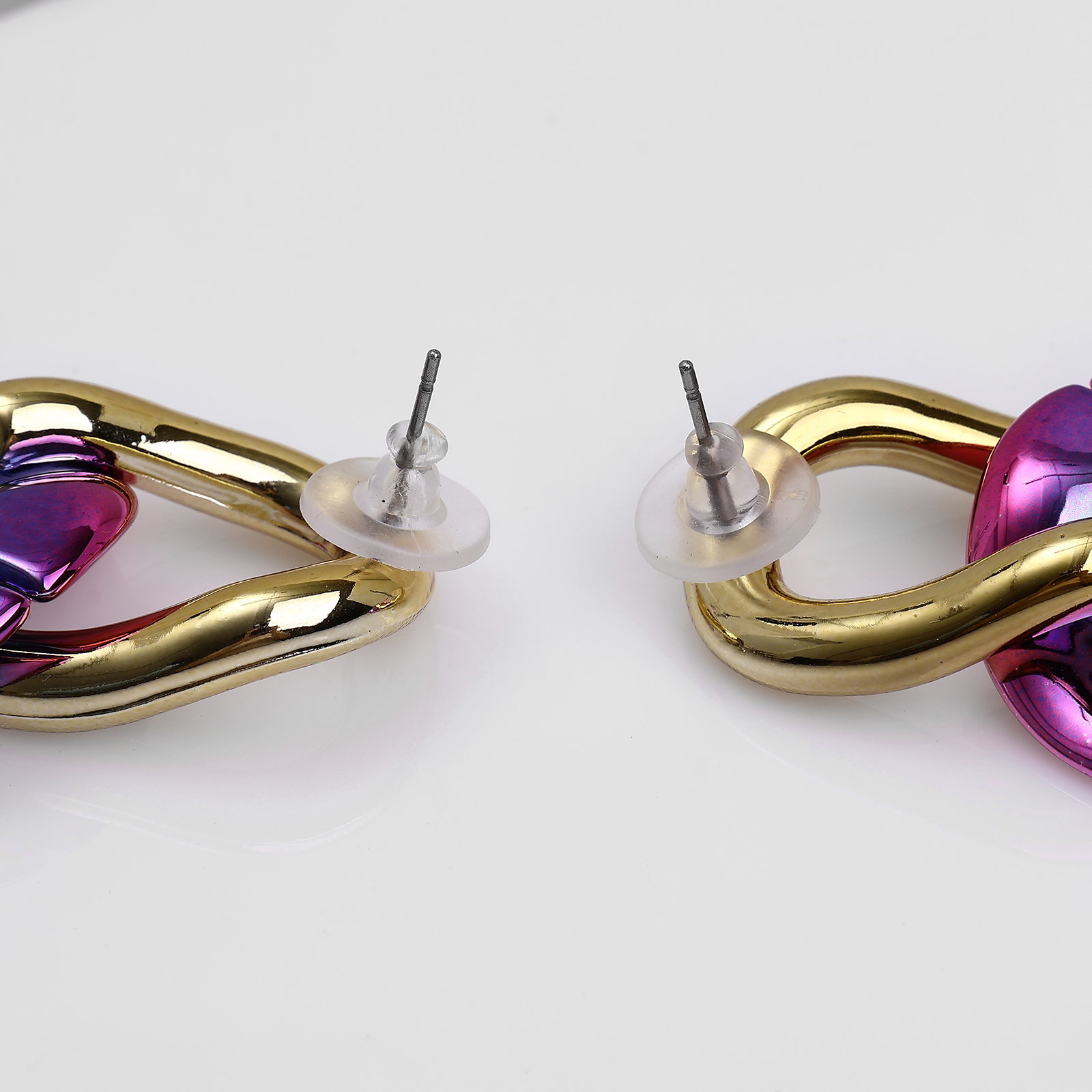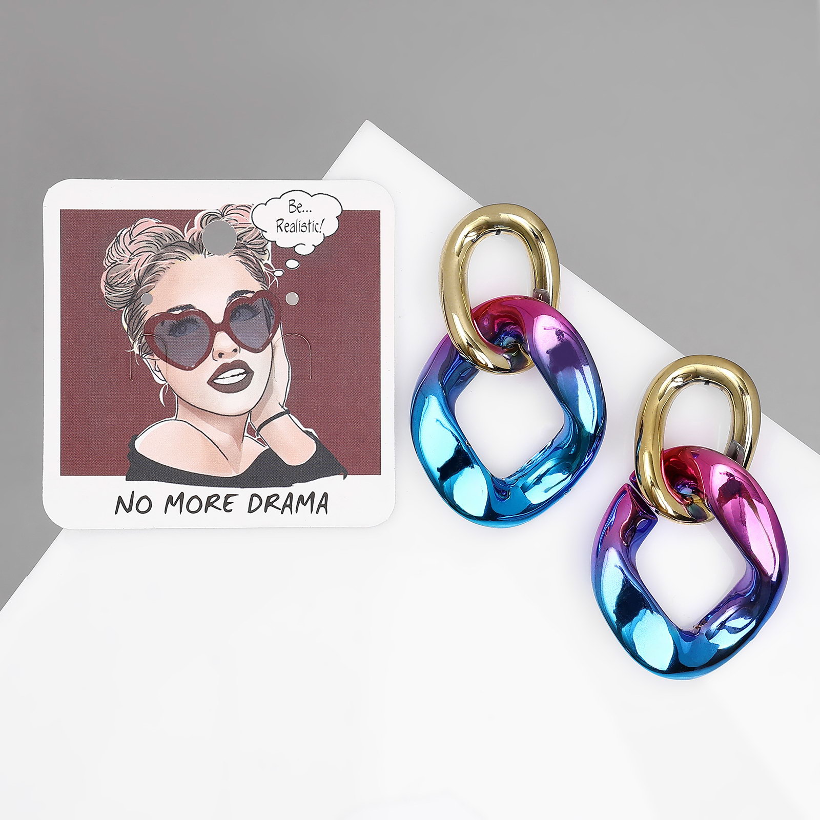 Серьги пластик "Цепь" волшебство, цветные в золоте, 2.5x5.7x0.8 см., QF, Китай
