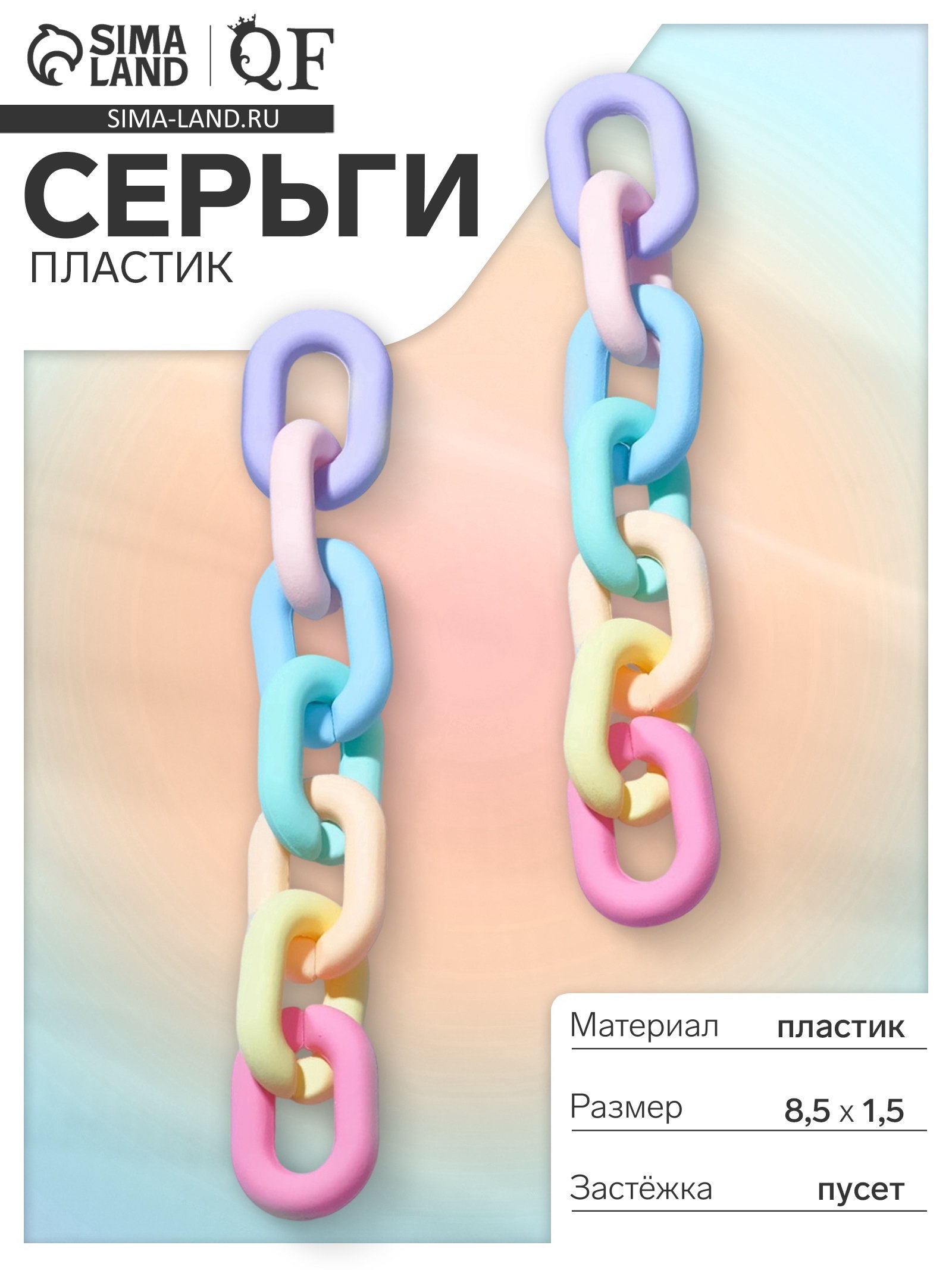 Серьги матовые "Цепь", пластик, разноцветные, 1.5x8.5x2 см., QF, Китай