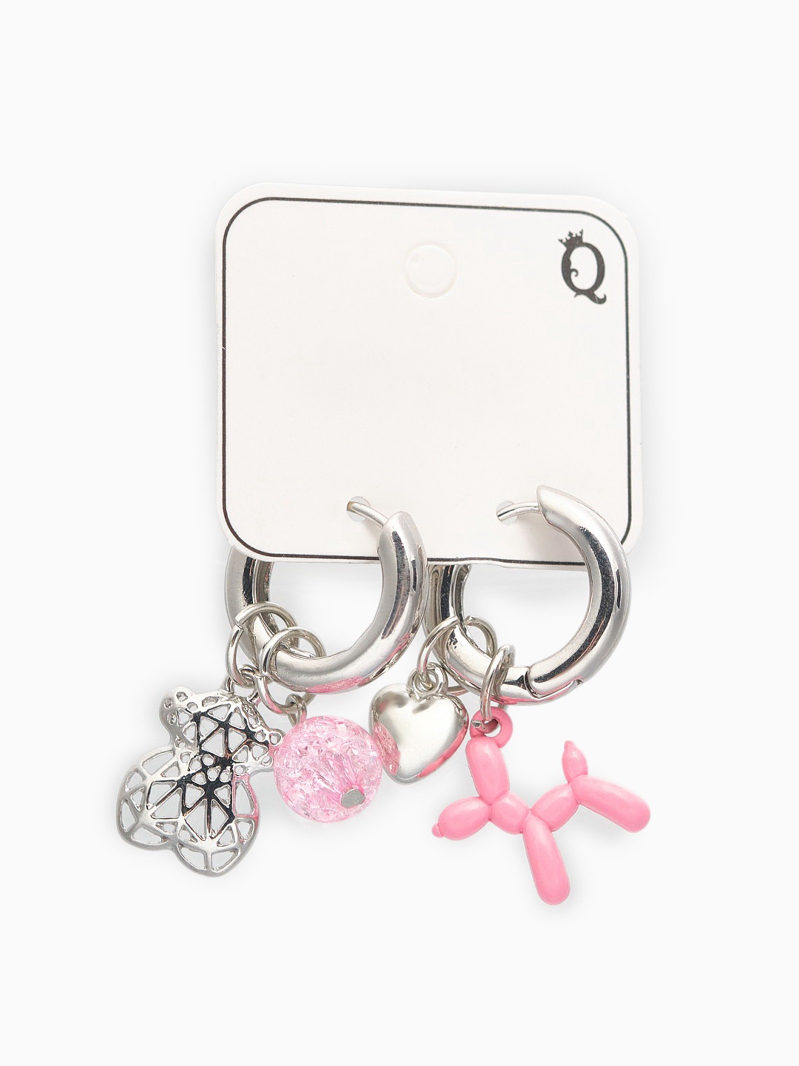Серьги со съёмным элементом "Трансформер" мишка, цвет розовый в серебре, 0.5x1.3x4.1 см., QF, Китай