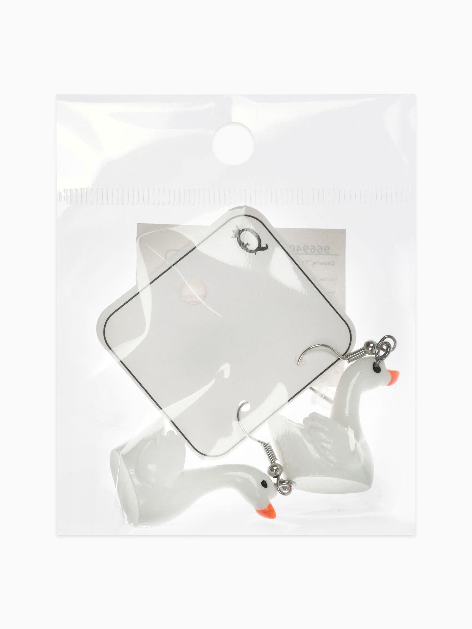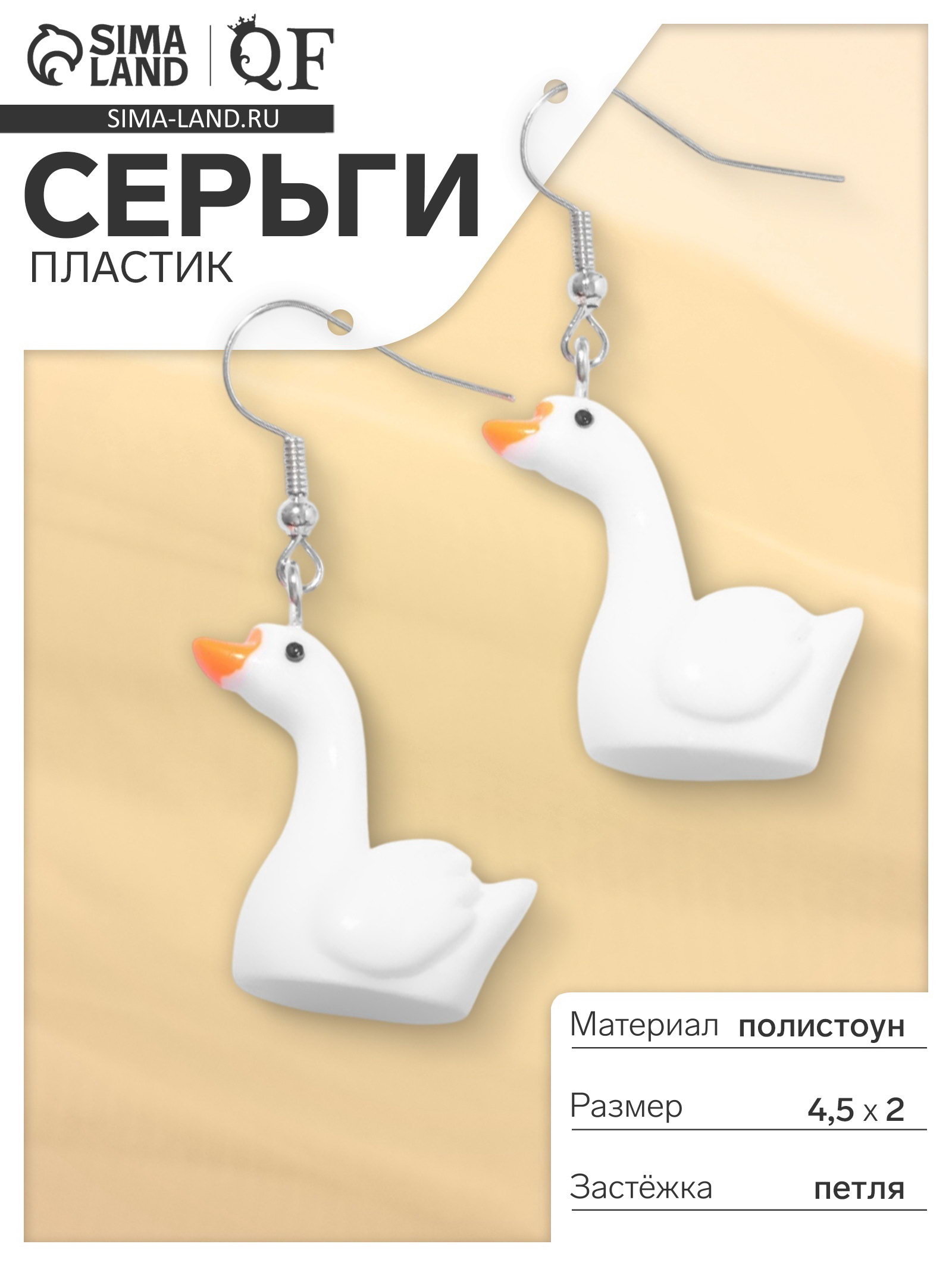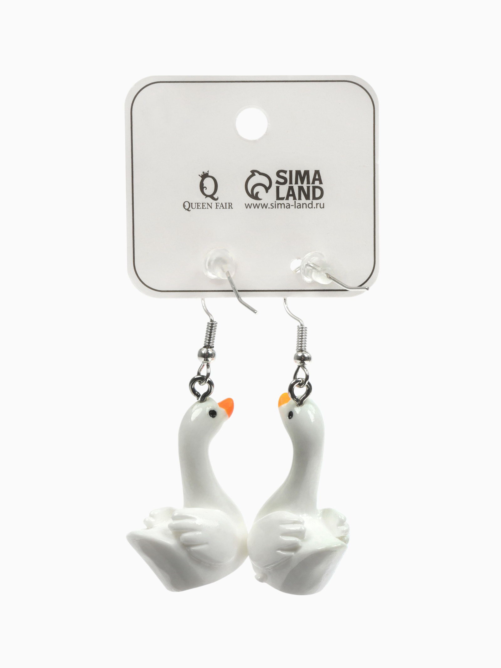 Серьги пластик "Гуси", цвет бело-оранжевый в серебре, 2x4.5x3 см., QF, Китай