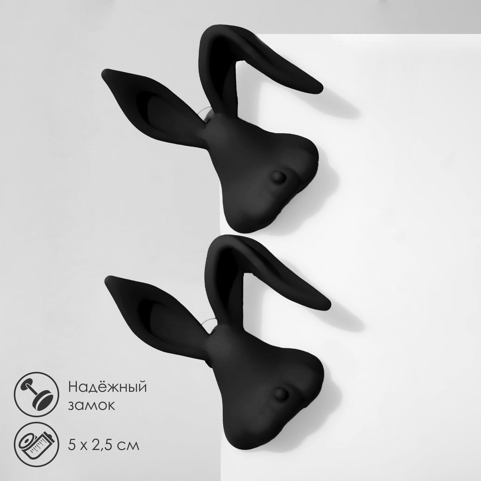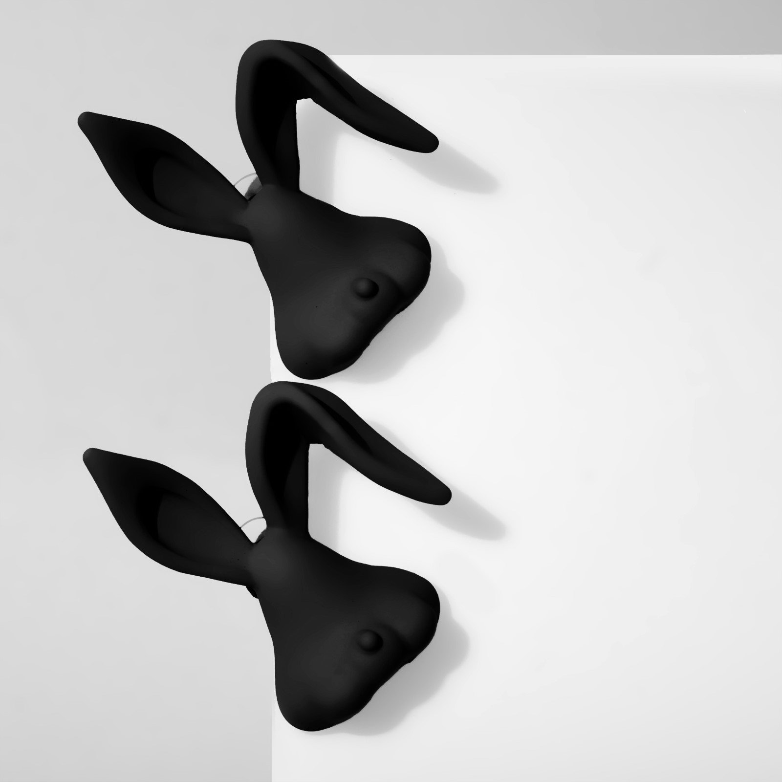 Серьги пластик "Кролики", цвет чёрный, 2.5x5x1.5 см., QF, Китай