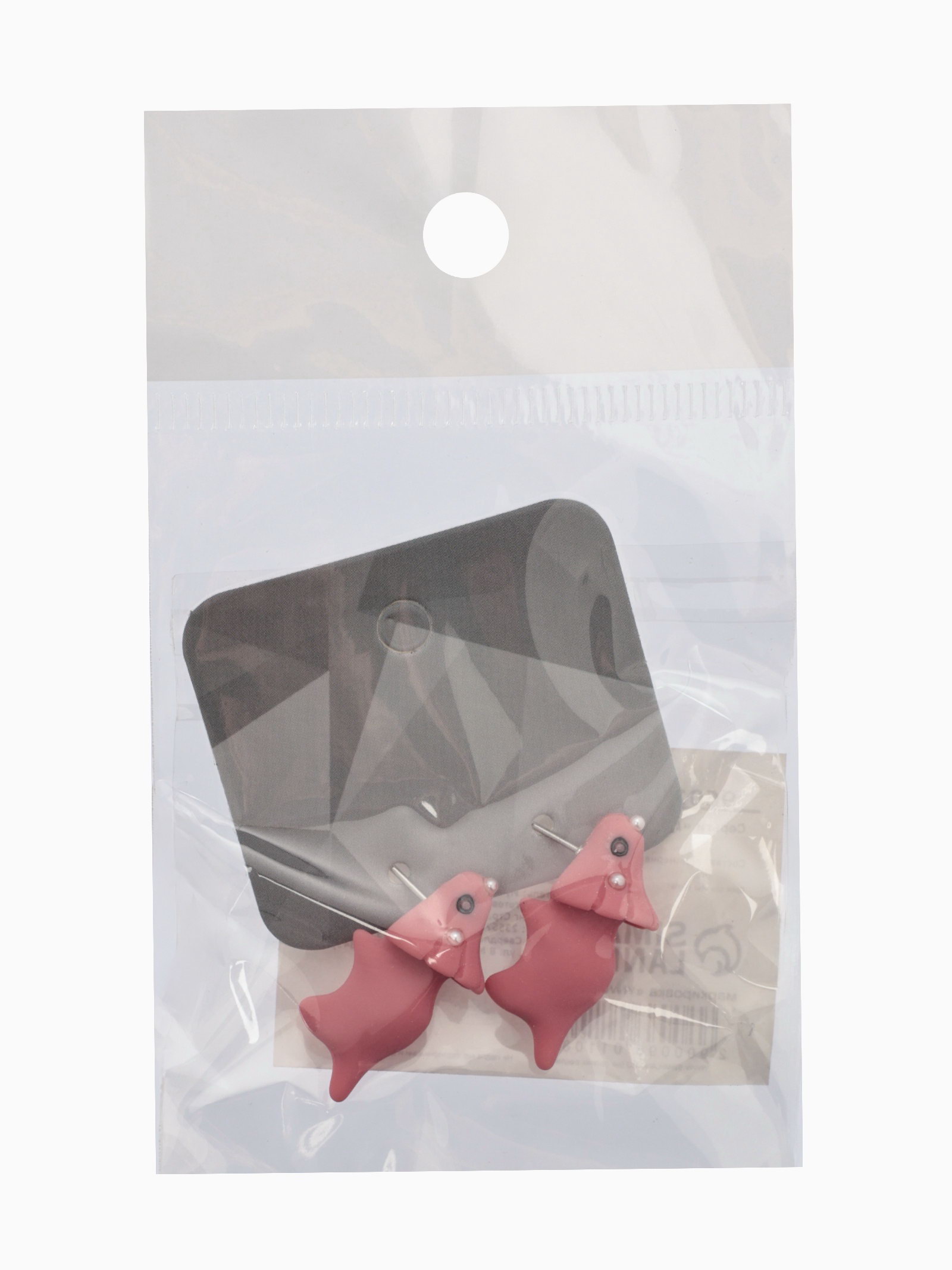 Серьги из полимерной глины "Динозавр", цвет розовый, 3x3.1x1 см., QF, Китай
