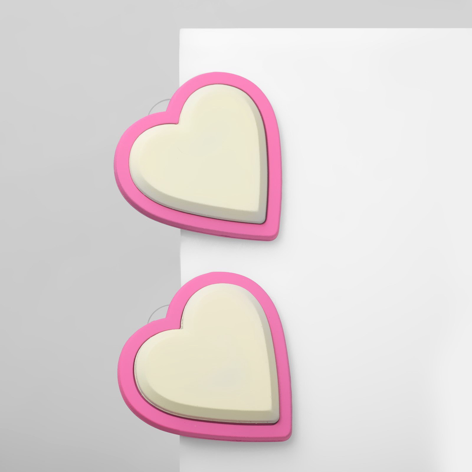 Серьги пластик "Сердечки", цвет бело-бежевый, 3.5x3.5x0.5 см., QF, Китай