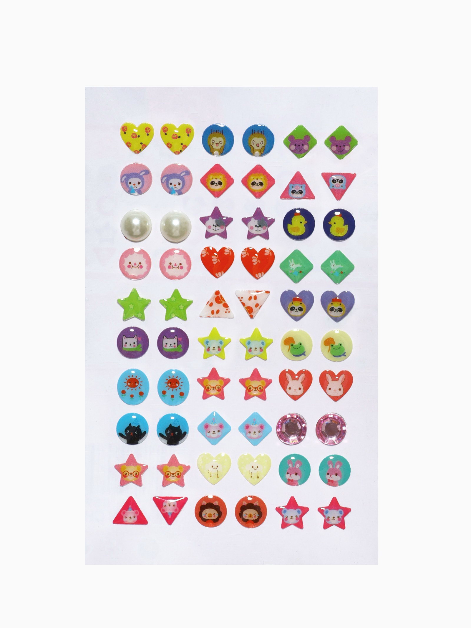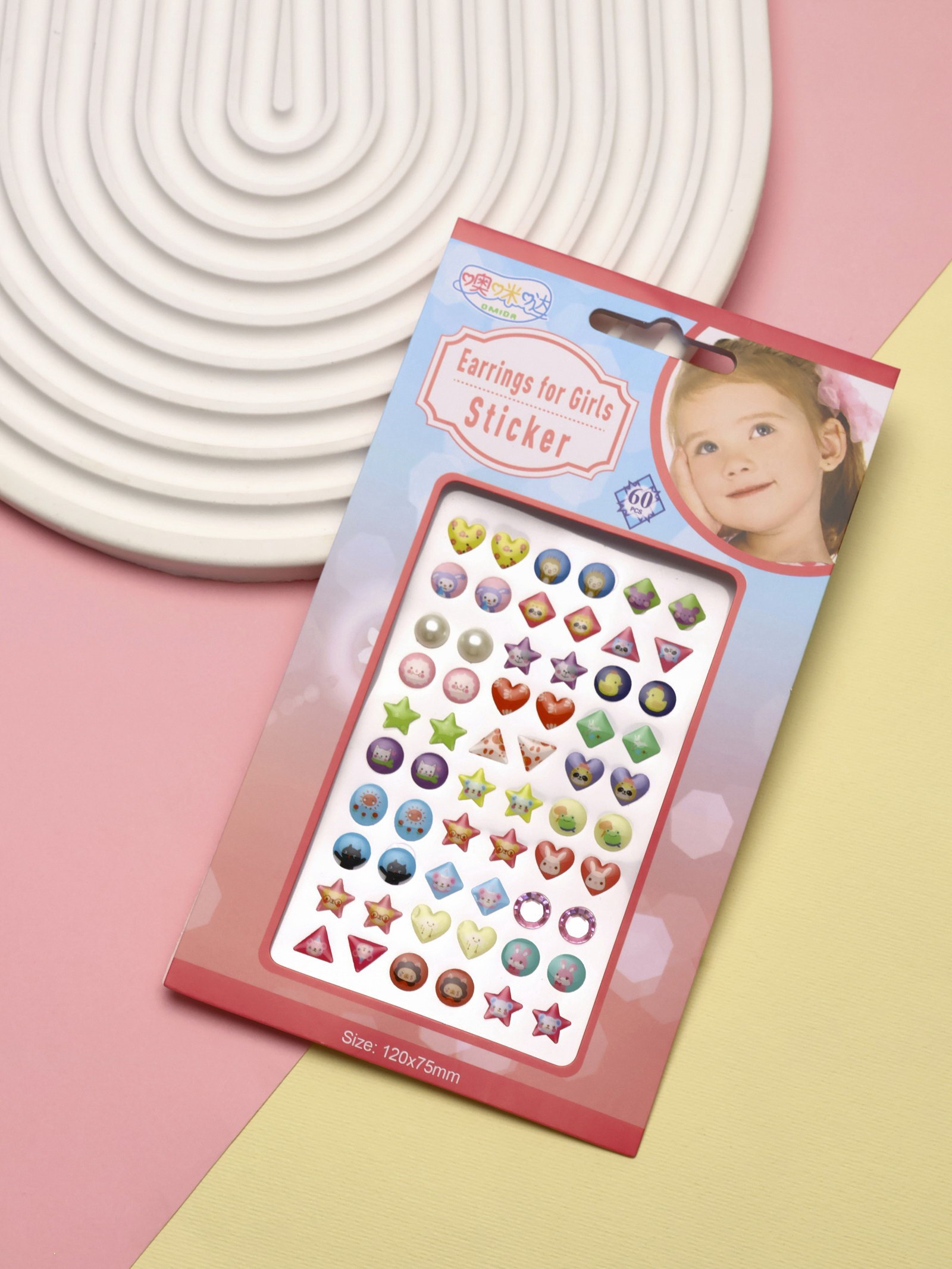 Серьги наклейки детские, пластик, улыбка, яркие, цветные, 10x18x0.3 см., QF, Китай