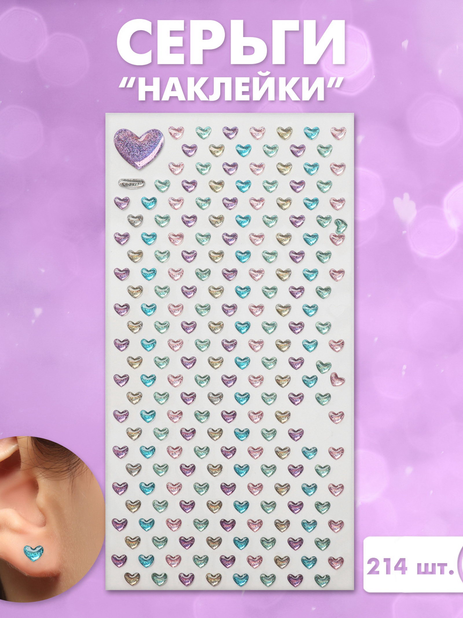 Серьги наклейки детские, пластик, любовь, сердечки, цветные, 9x17.5x0.2 см., QF, Китай
