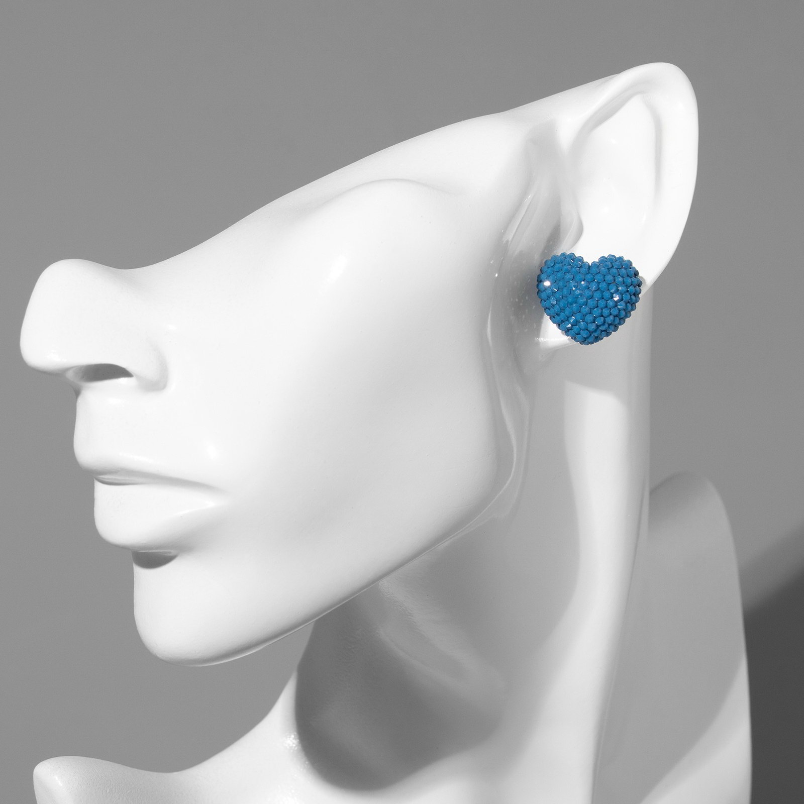 Серьги пластик "Карамель" сердце, цвет синий, 2x2x0.1 см., QF, Китай