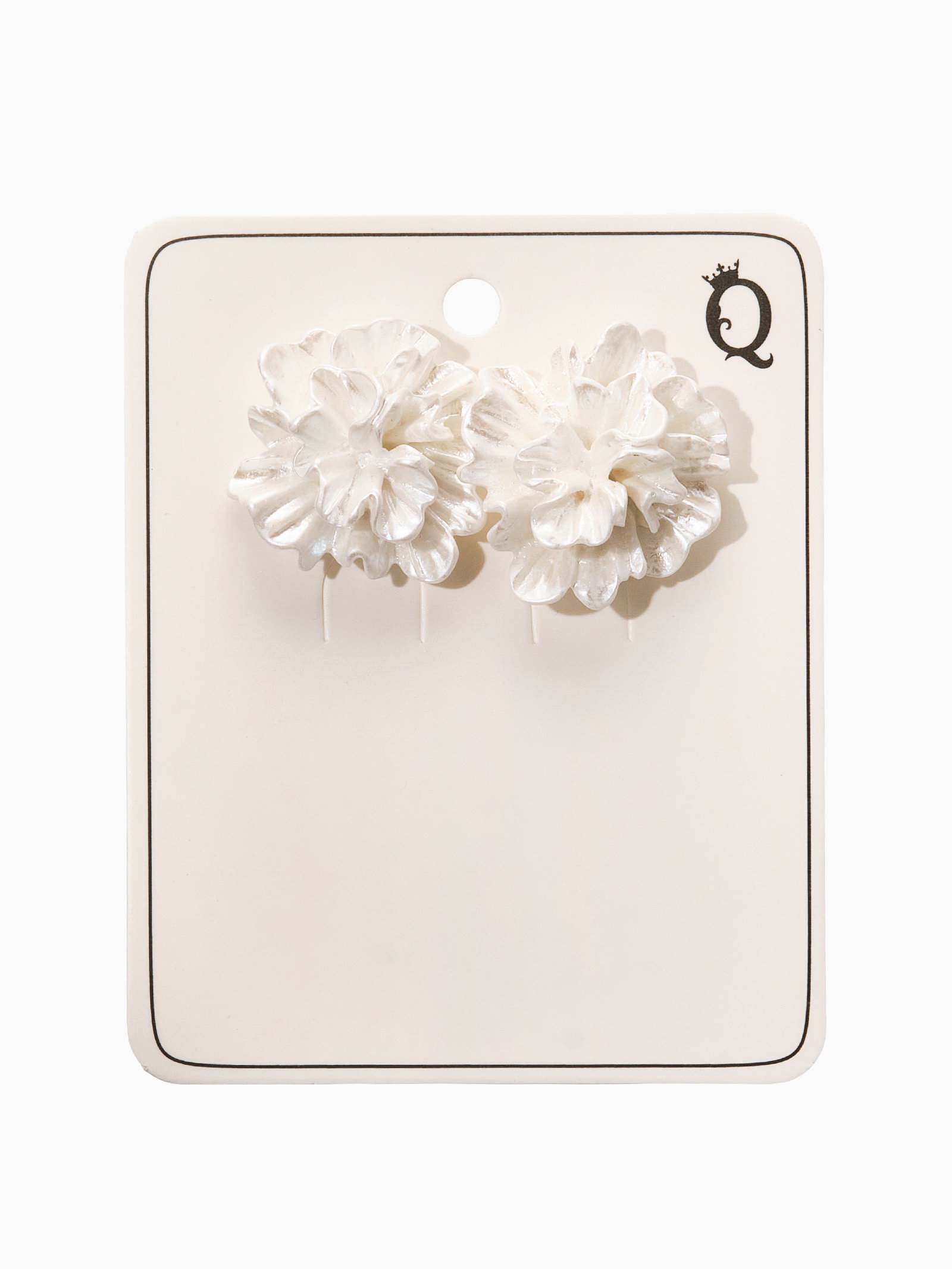 Серьги "Цветок бархатец", цвет белый перламутр, 2x2x0.5 см., QF, Китай
