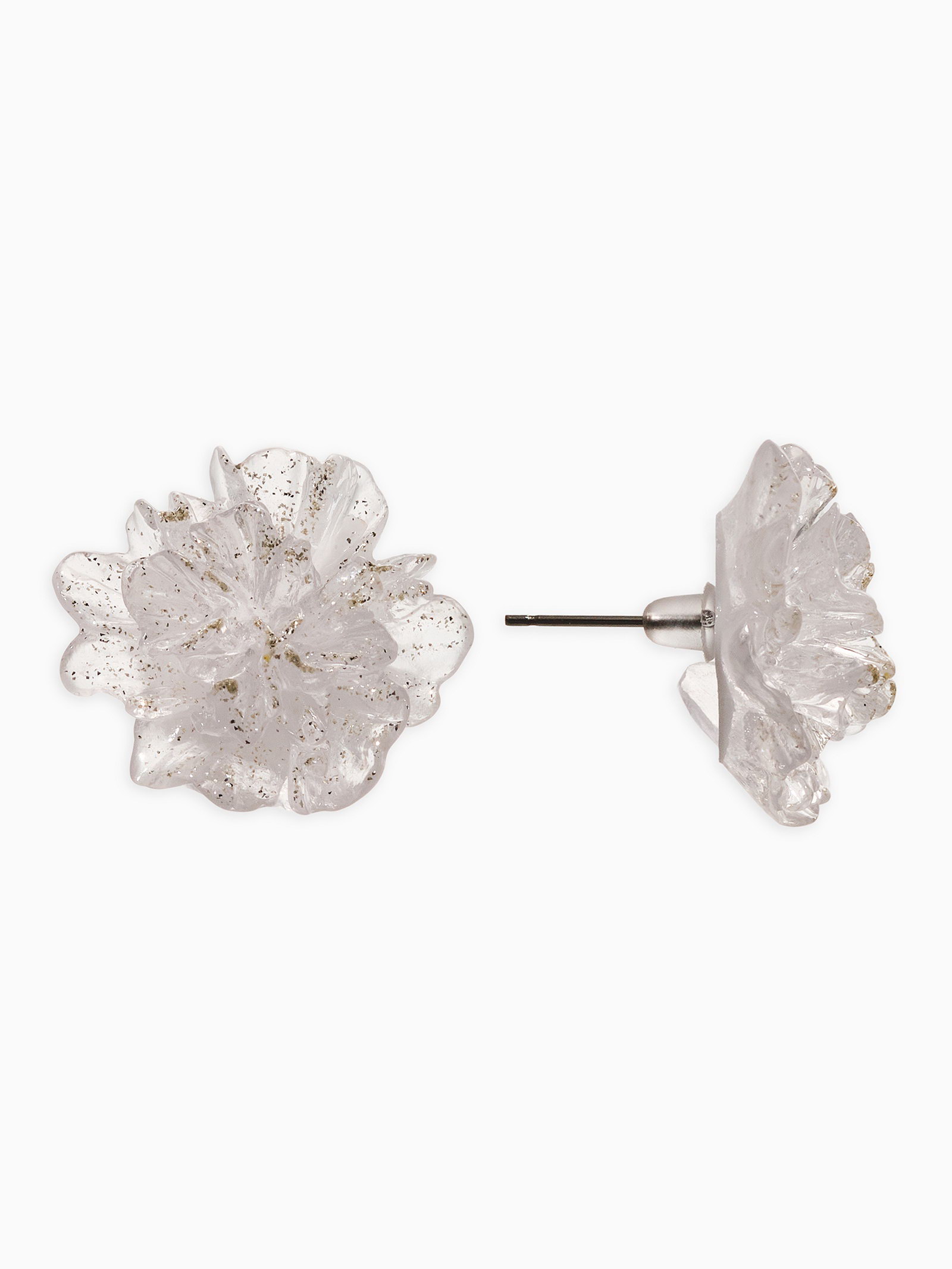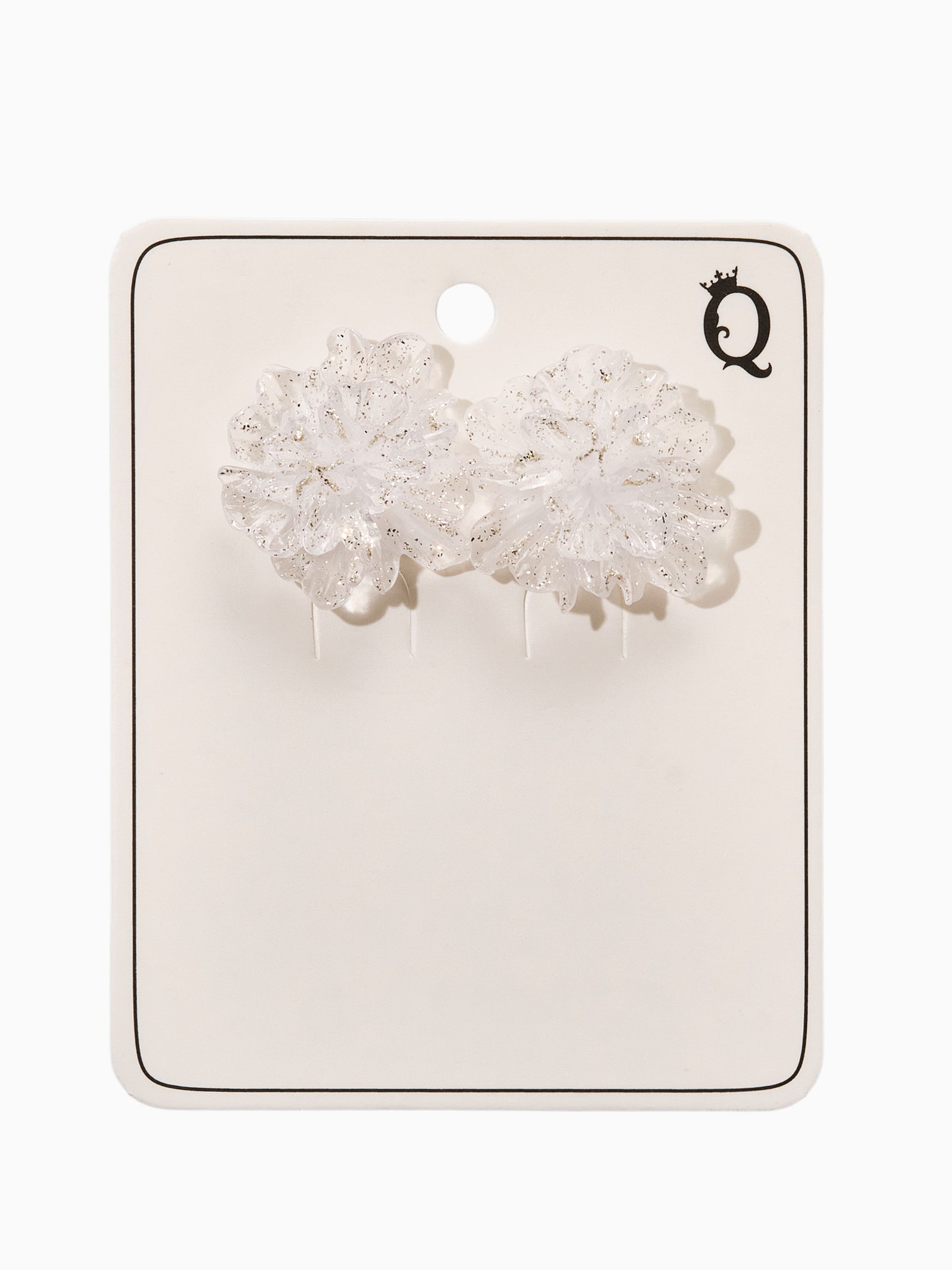 Серьги "Цветок ажурный воздушный", прозрачные, белые, с, блёстками, 2x2x0.5 см., QF, Китай