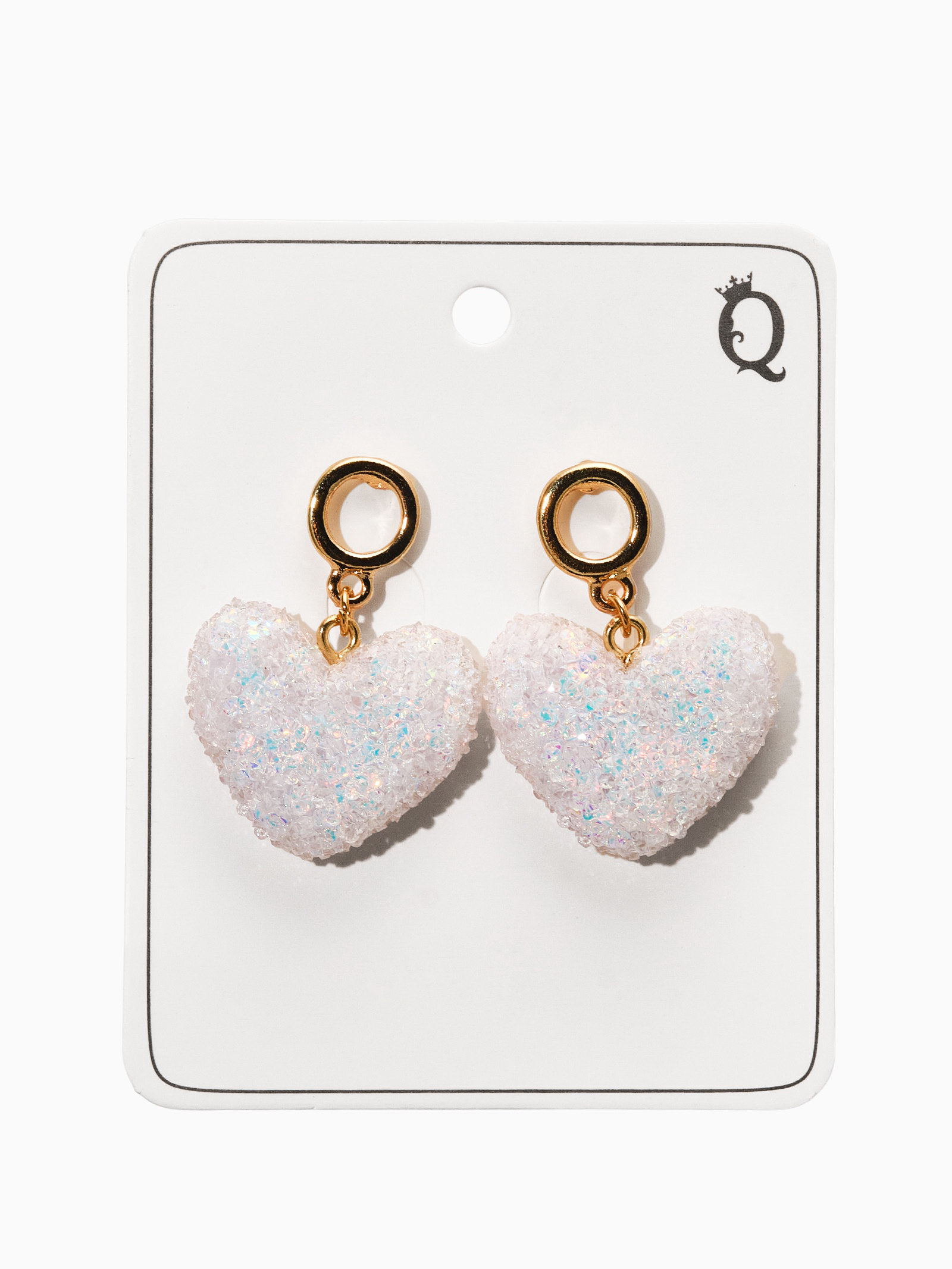Серьги "Сердце сахарное", белые в золоте, 2.8x3.5x1 см., QF, Китай