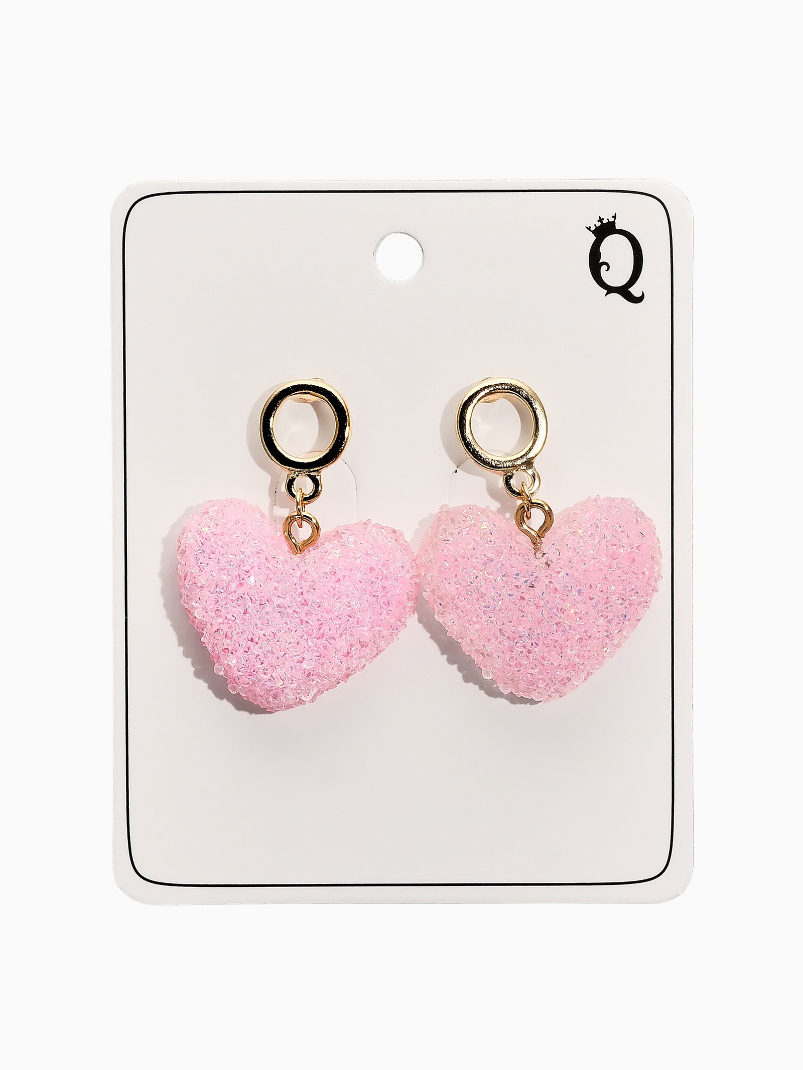 Серьги "Сердце сахарное", розовые в золоте, 2.8x3.5x1 см., QF, Китай