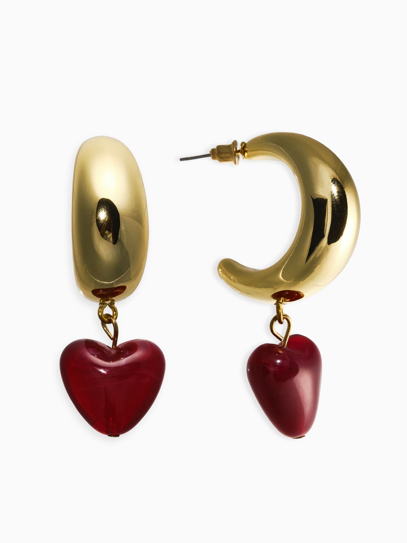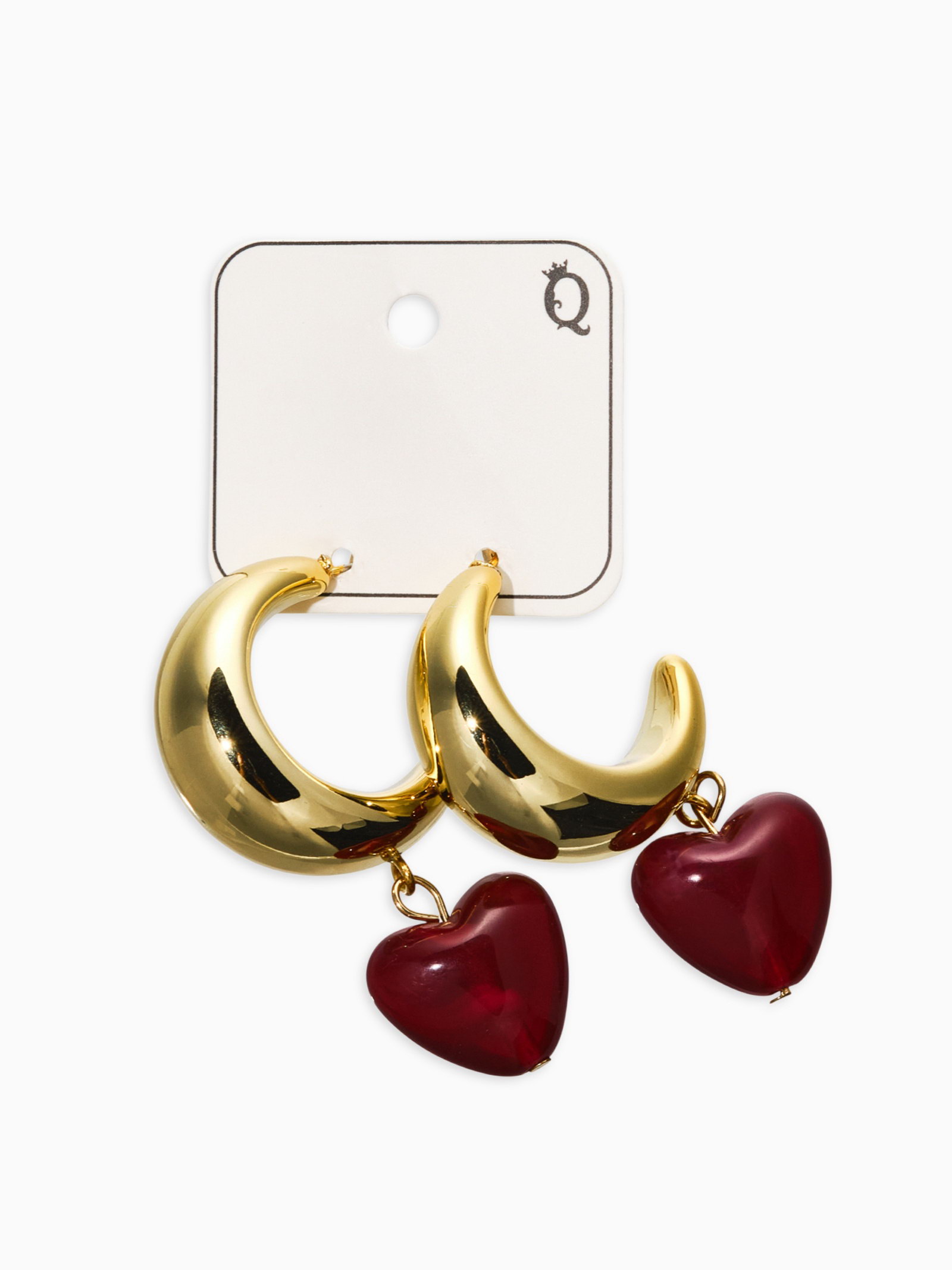Серьги "Новый стиль. Сердечки", бордовые в золоте d=3 см, 3x5x2 см., QF, Китай