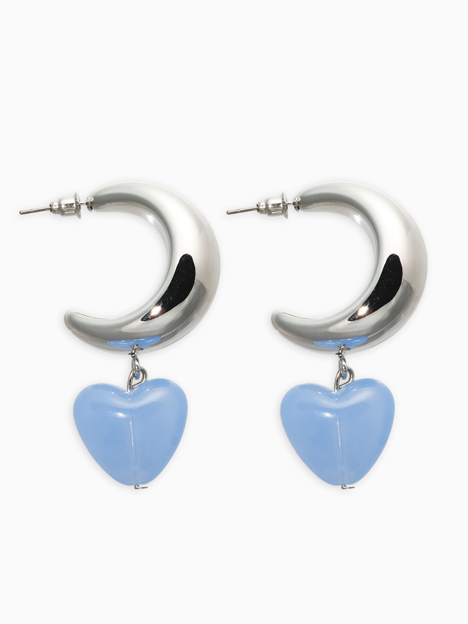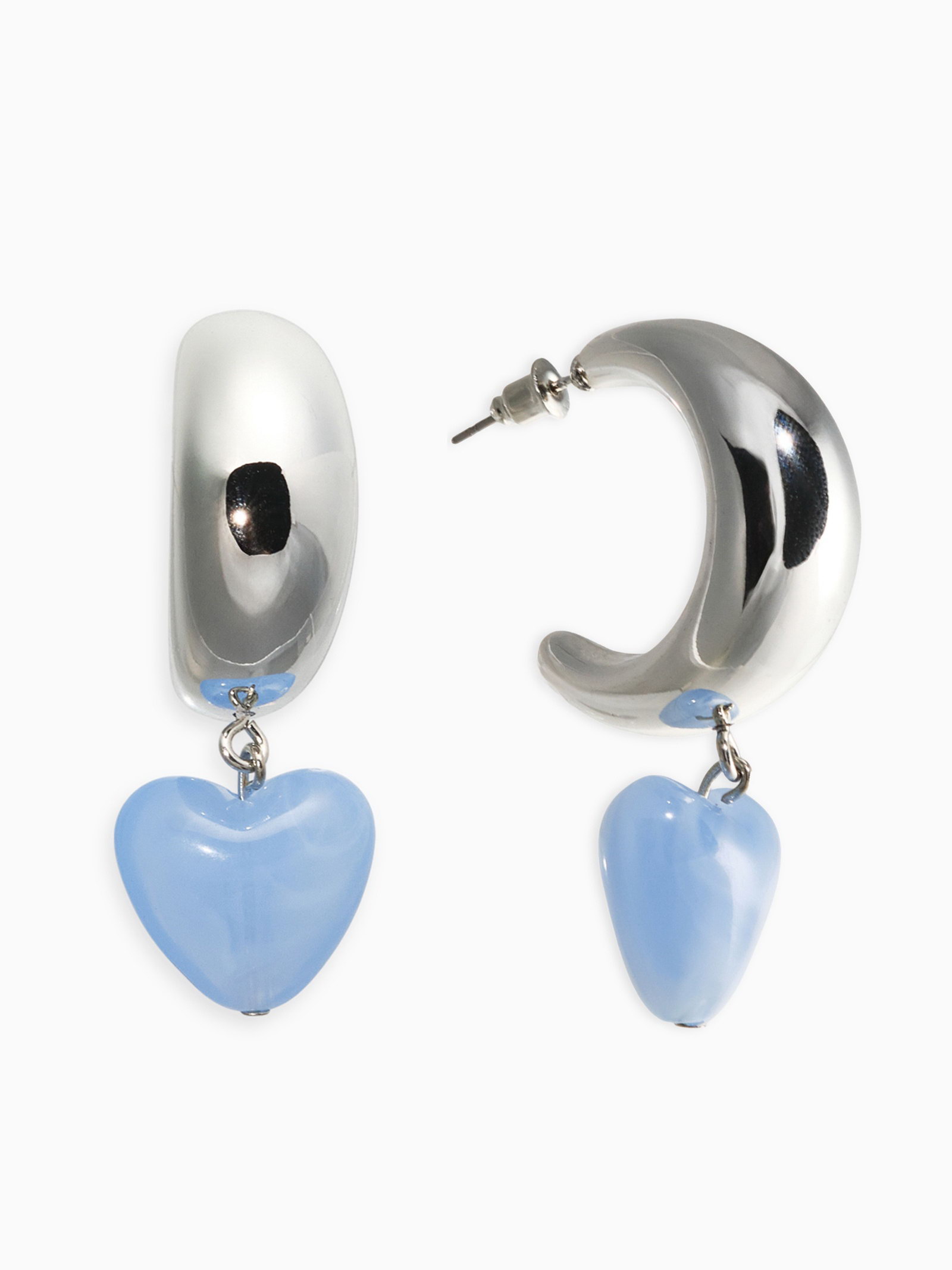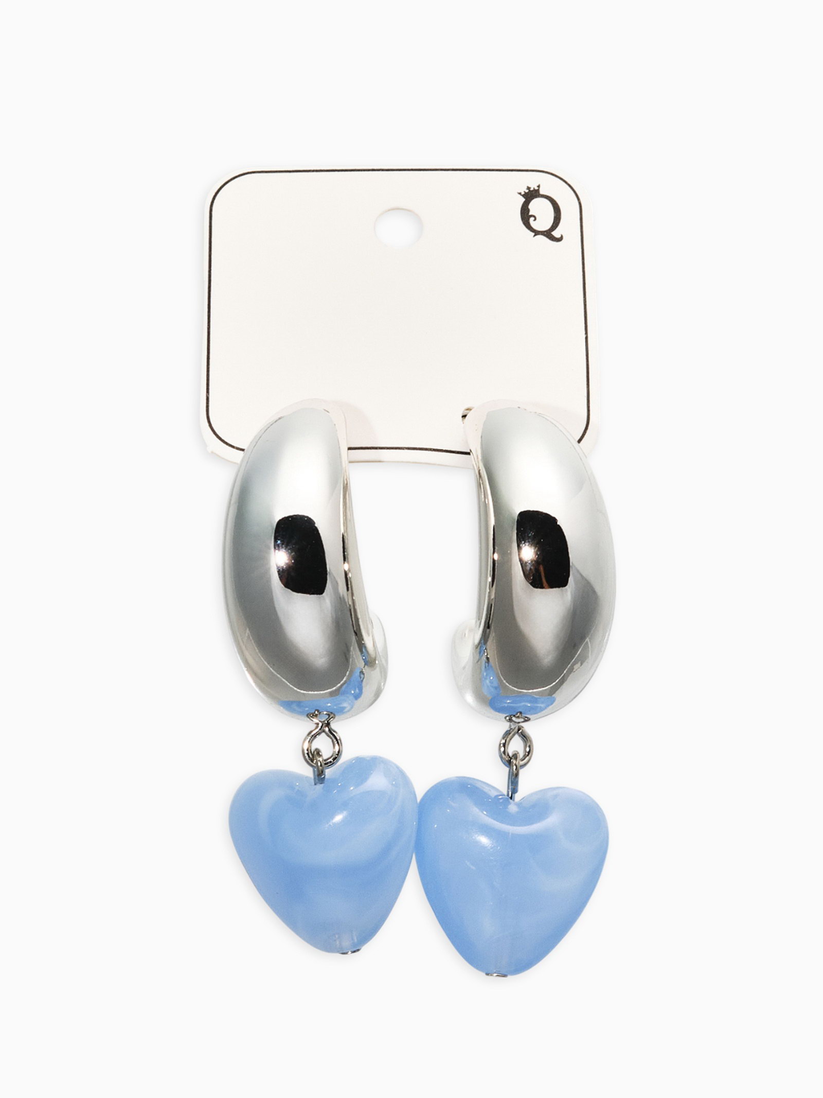 Серьги "Новый стиль. Сердечки", голубые в серебре d=3 см, 3x5x2 см., QF, Китай