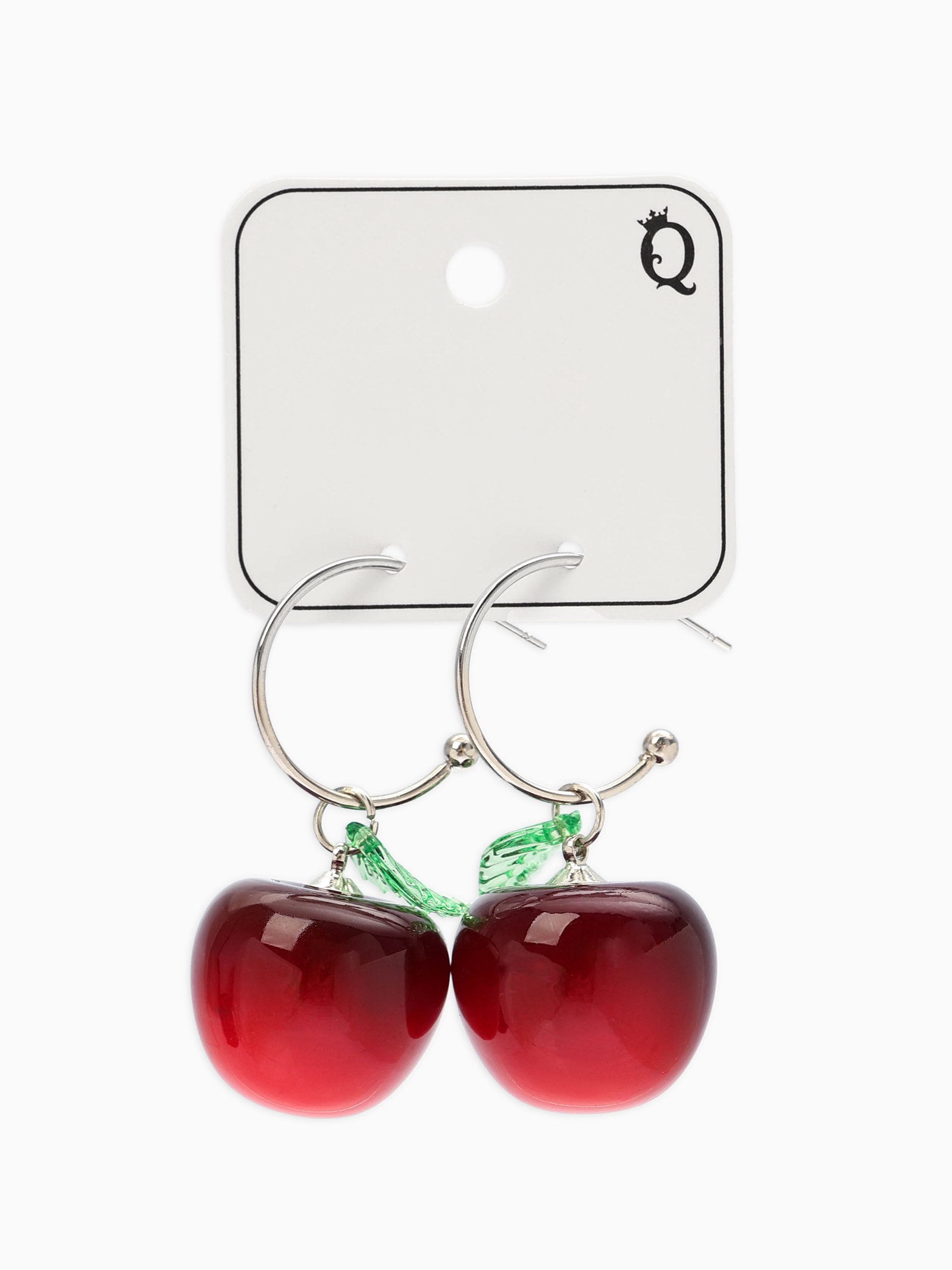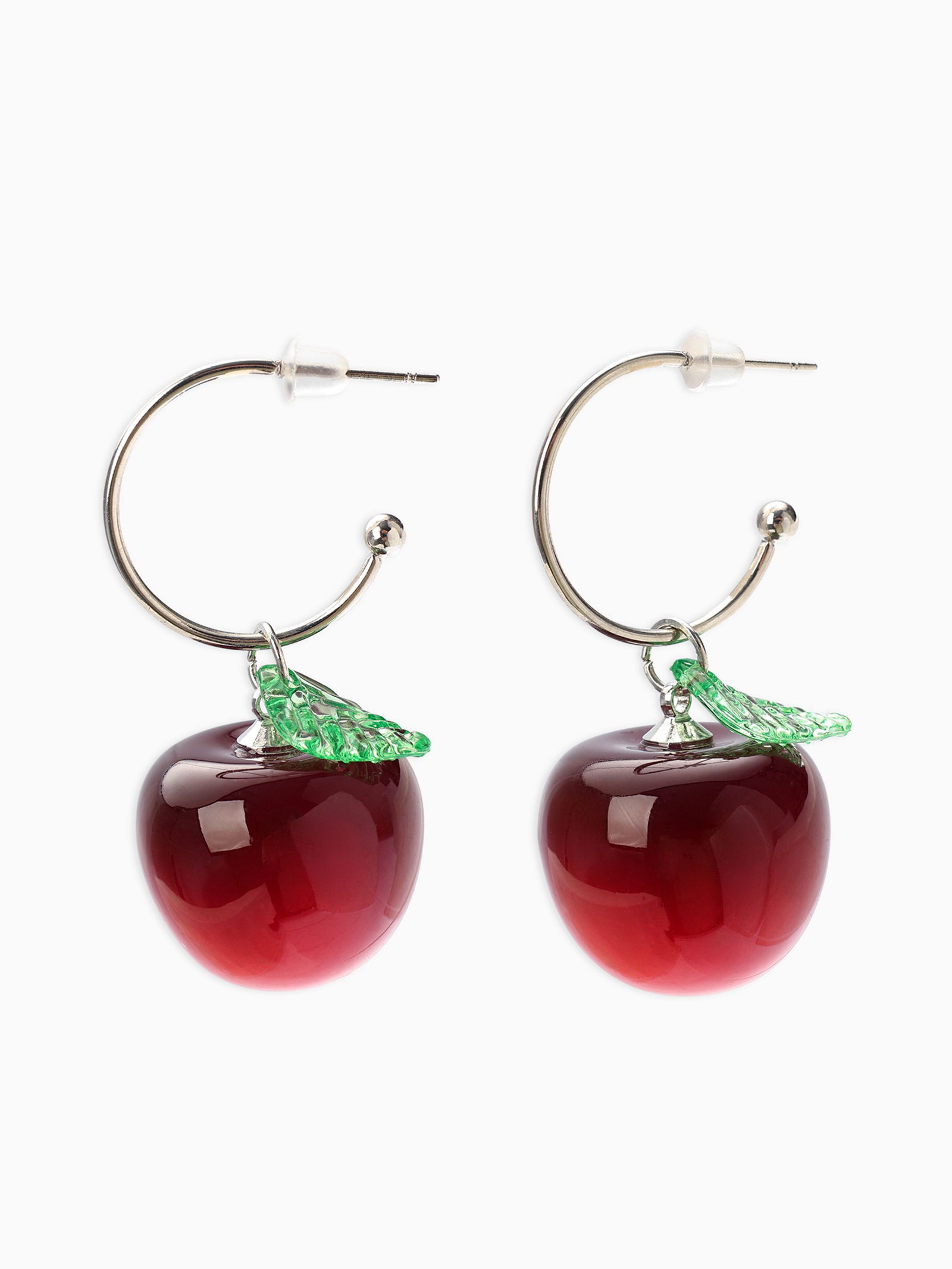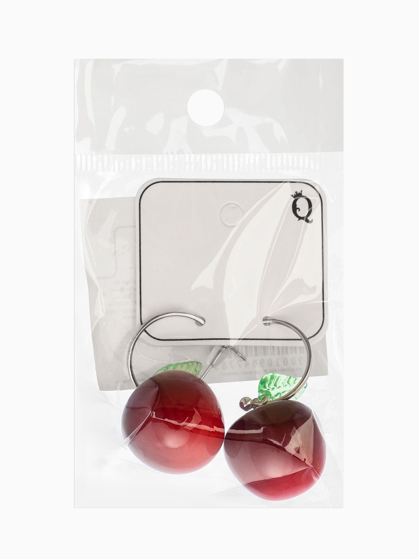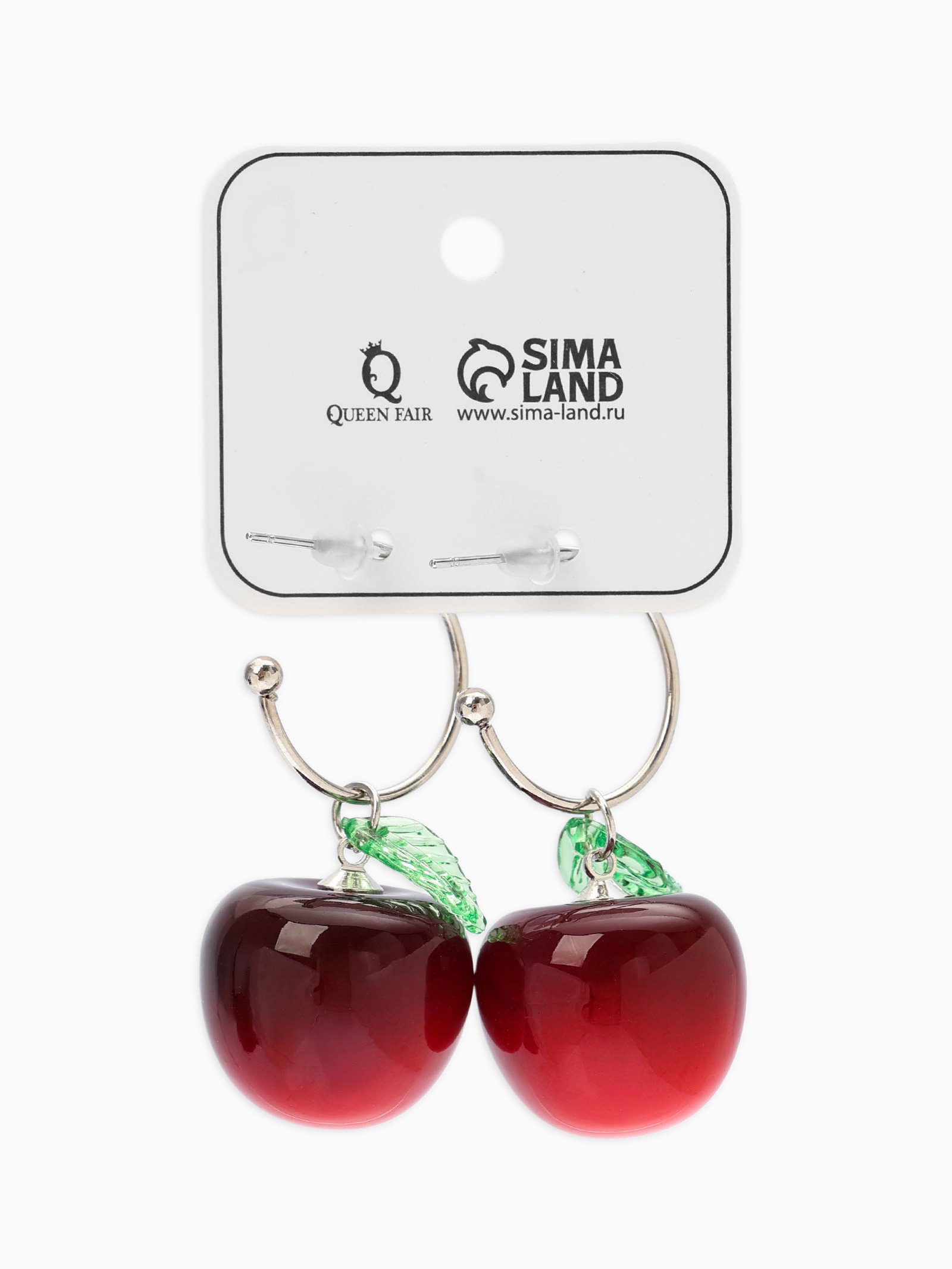 Серьги кольца "Черешня с листочком", бордовые в серебре, 2x4.5x2 см., QF, Китай