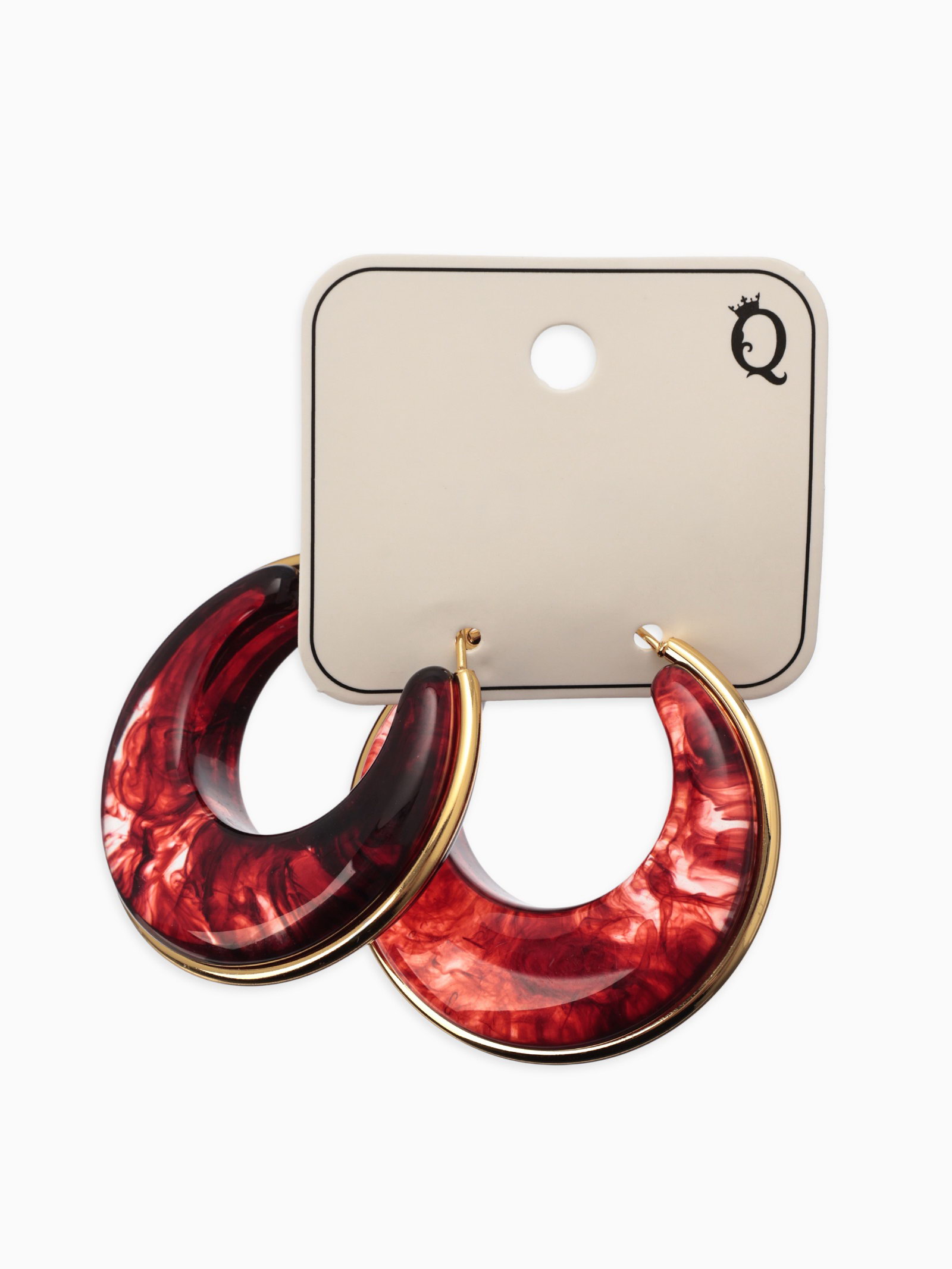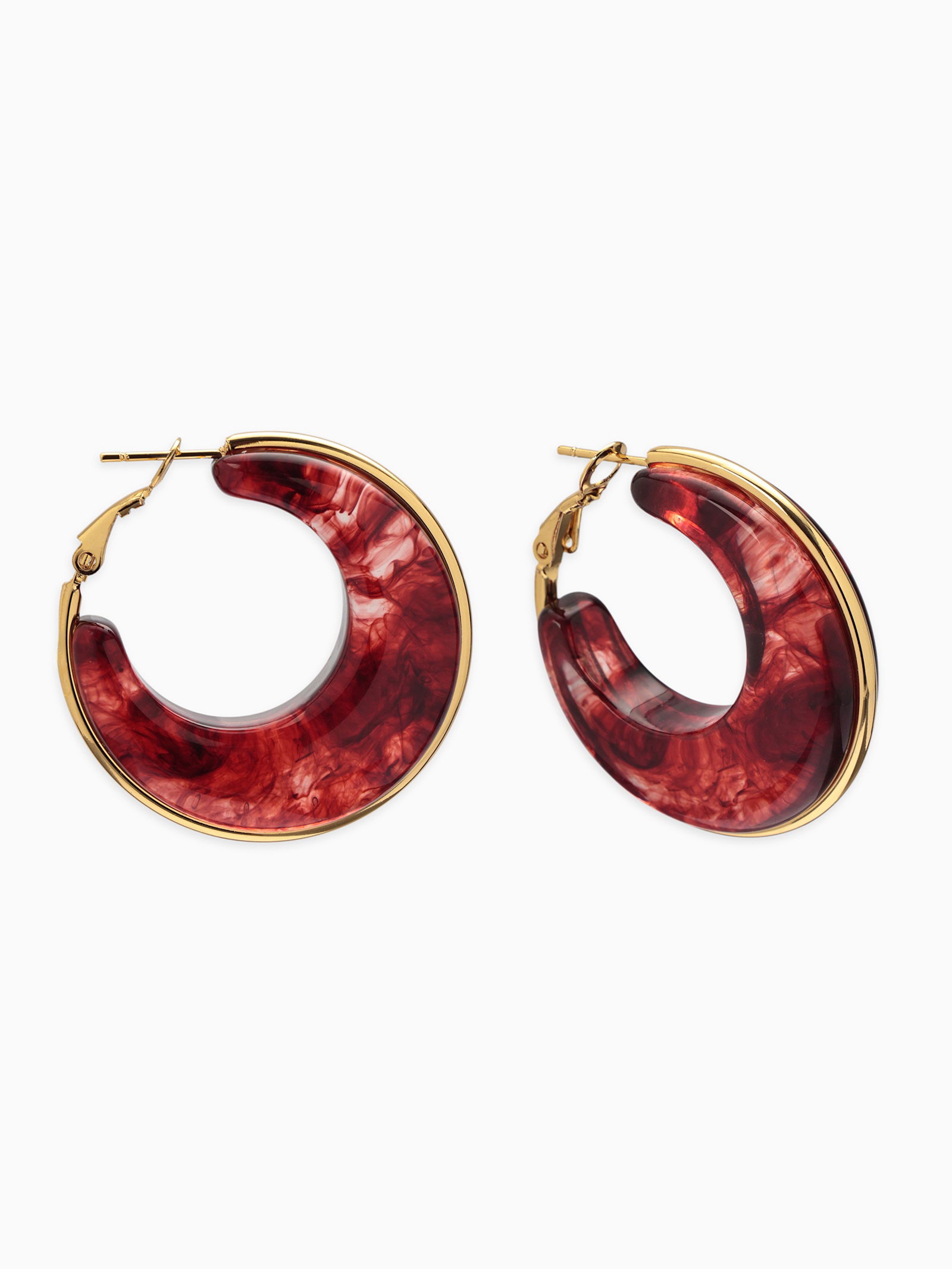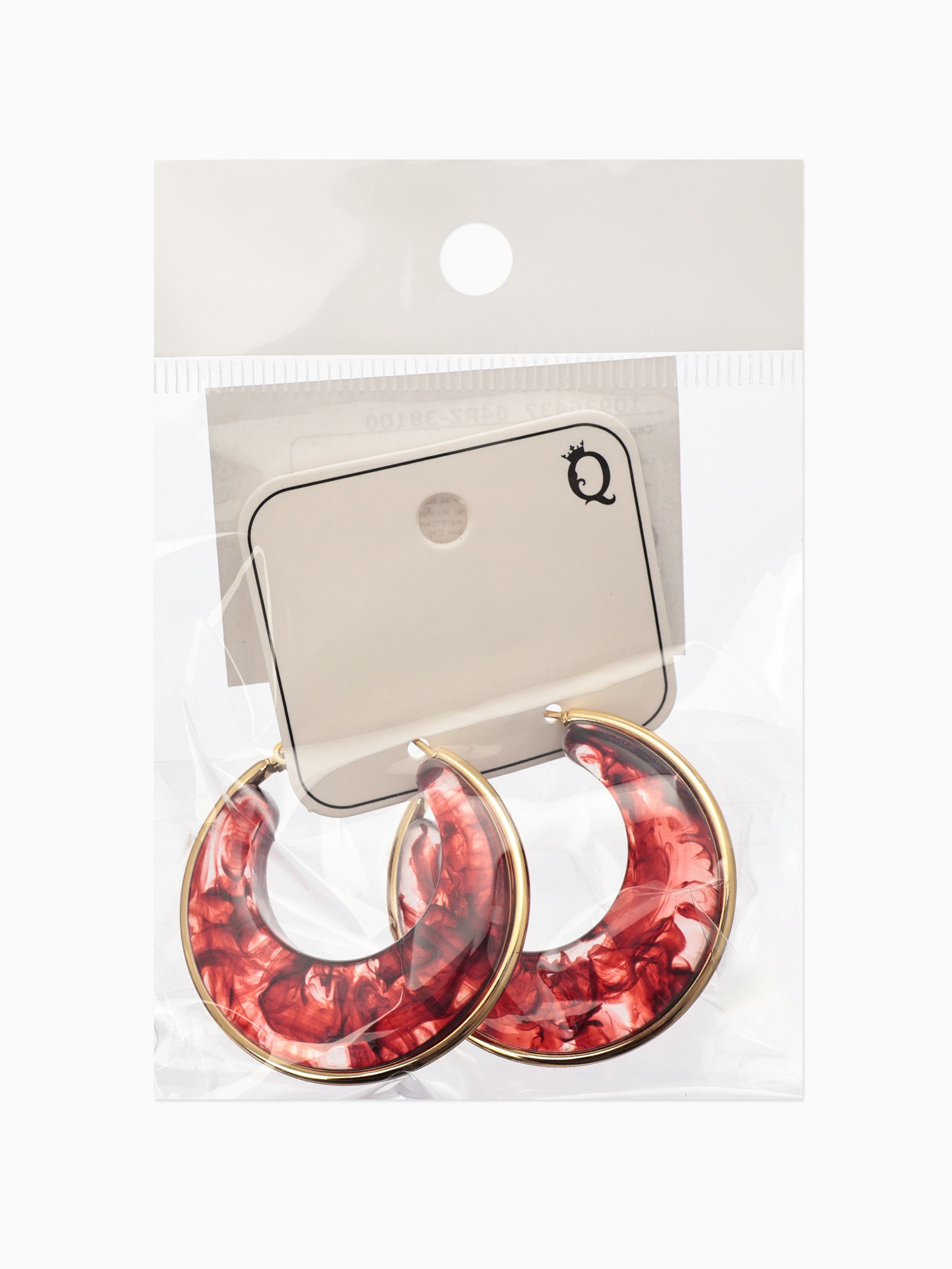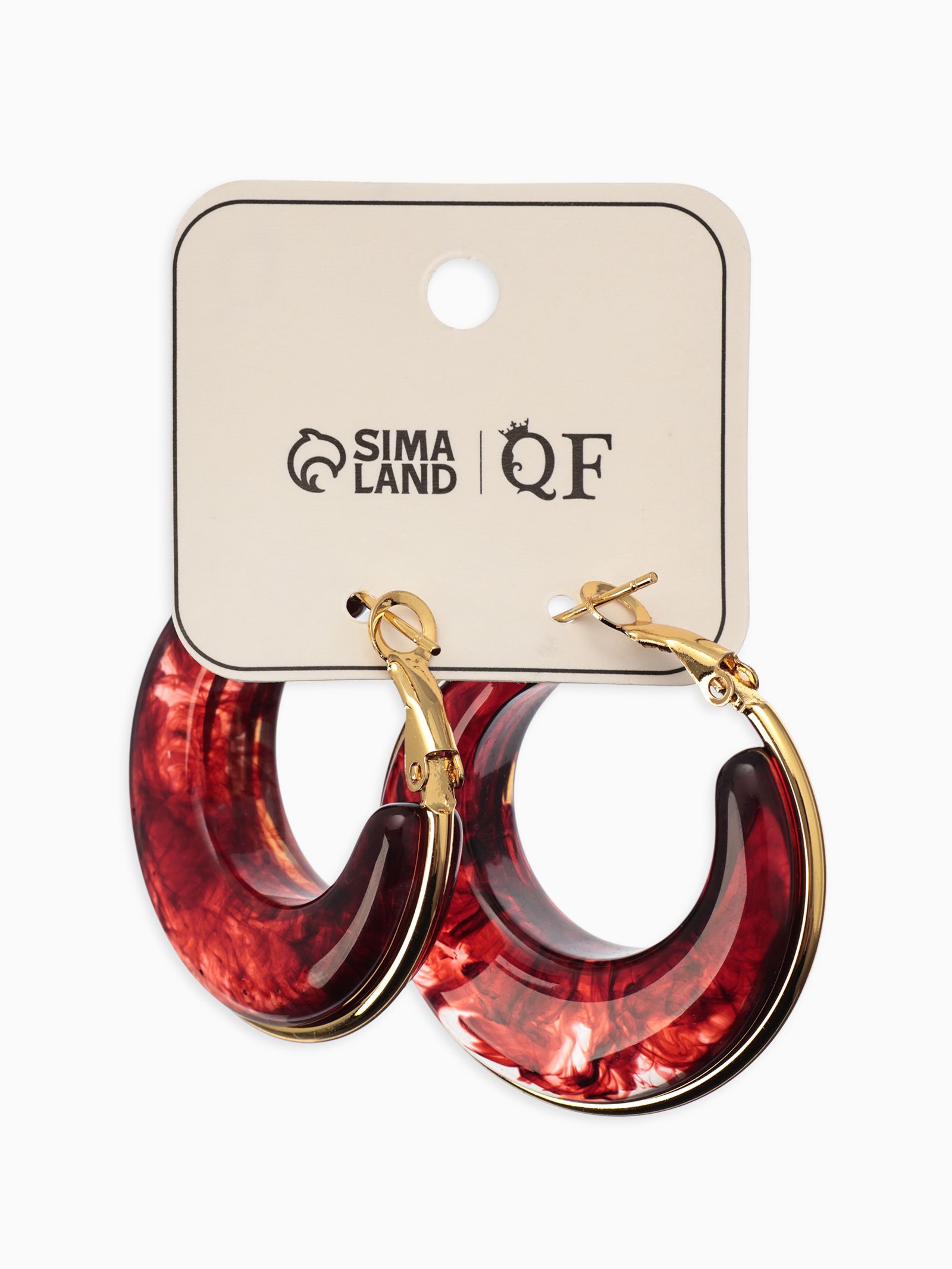 Серьги-кольца акрил "Тренд", бордовые в золоте, 3.5x3.5x1 см., QF, Китай