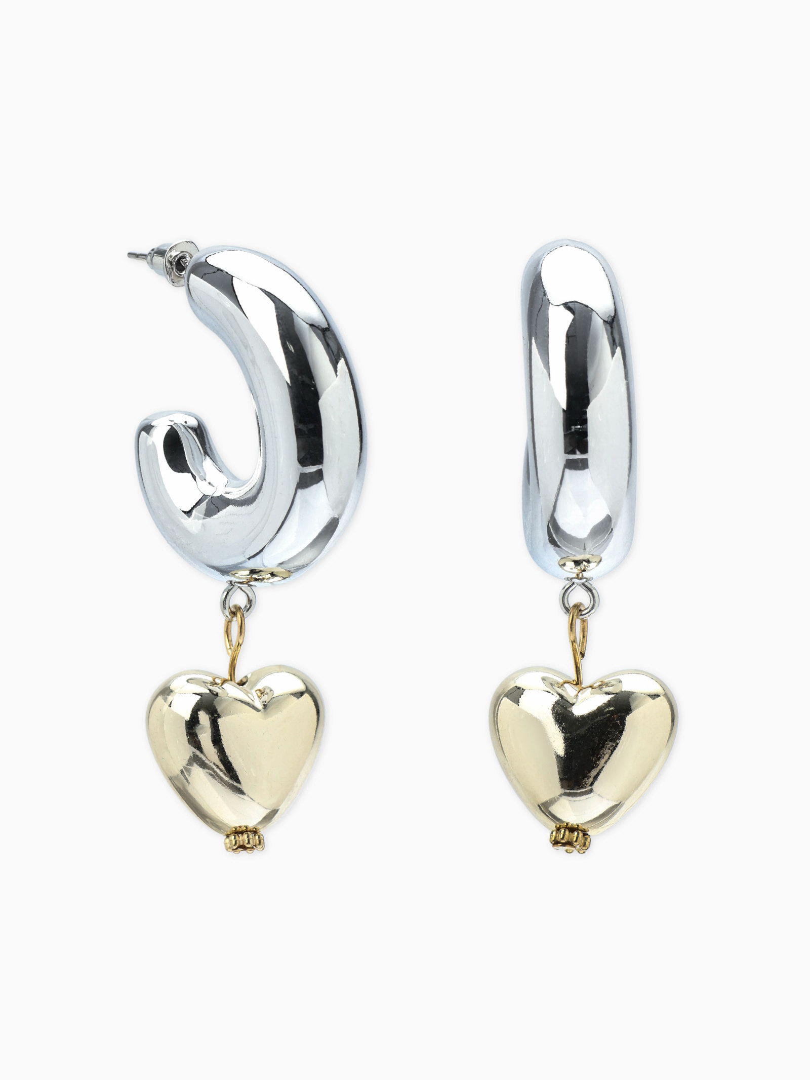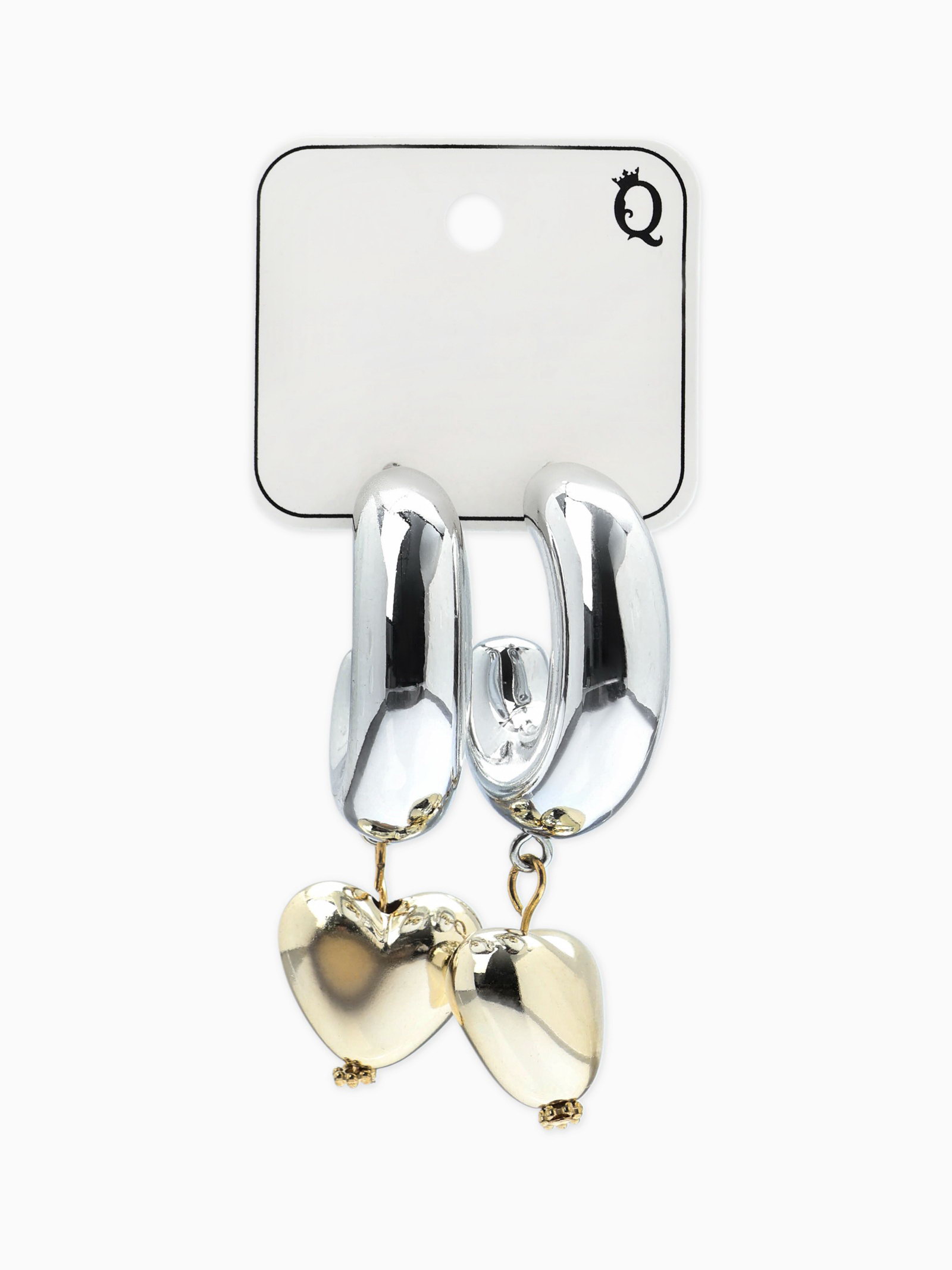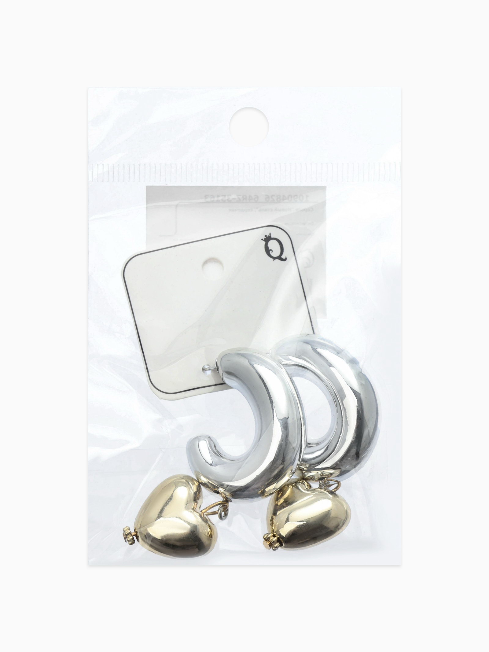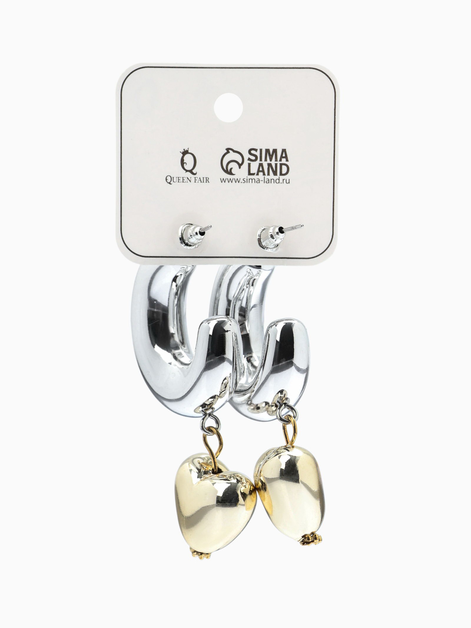 Серьги "Новый стиль. Сердечки", d=3 см, цвет серебристо-золотистый, 3x6.5x2 см., QF, Китай
