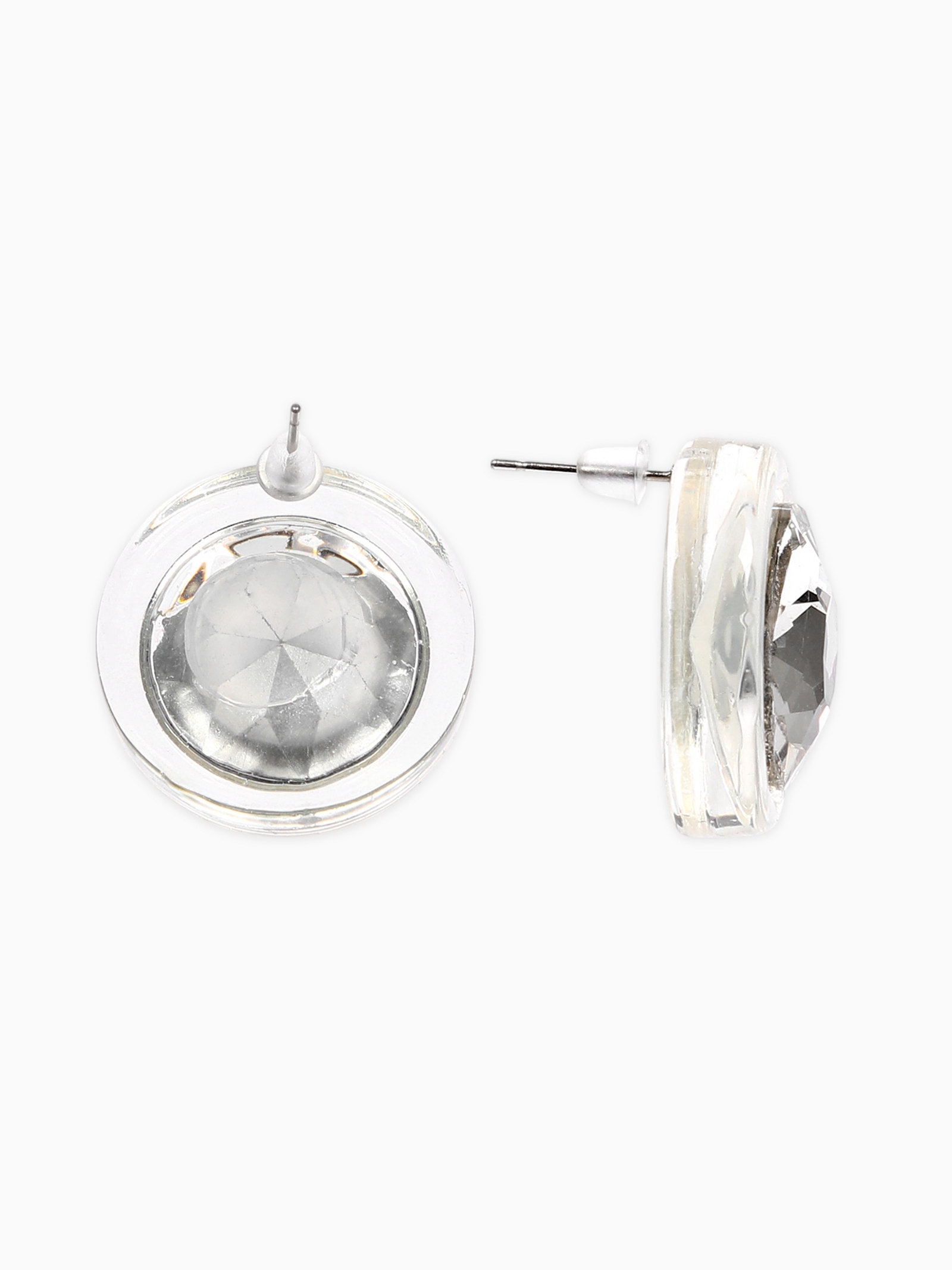 Серьги гвоздики "Кристалл. Круг", белые, 2.5x2.5x1 см., QF, Китай