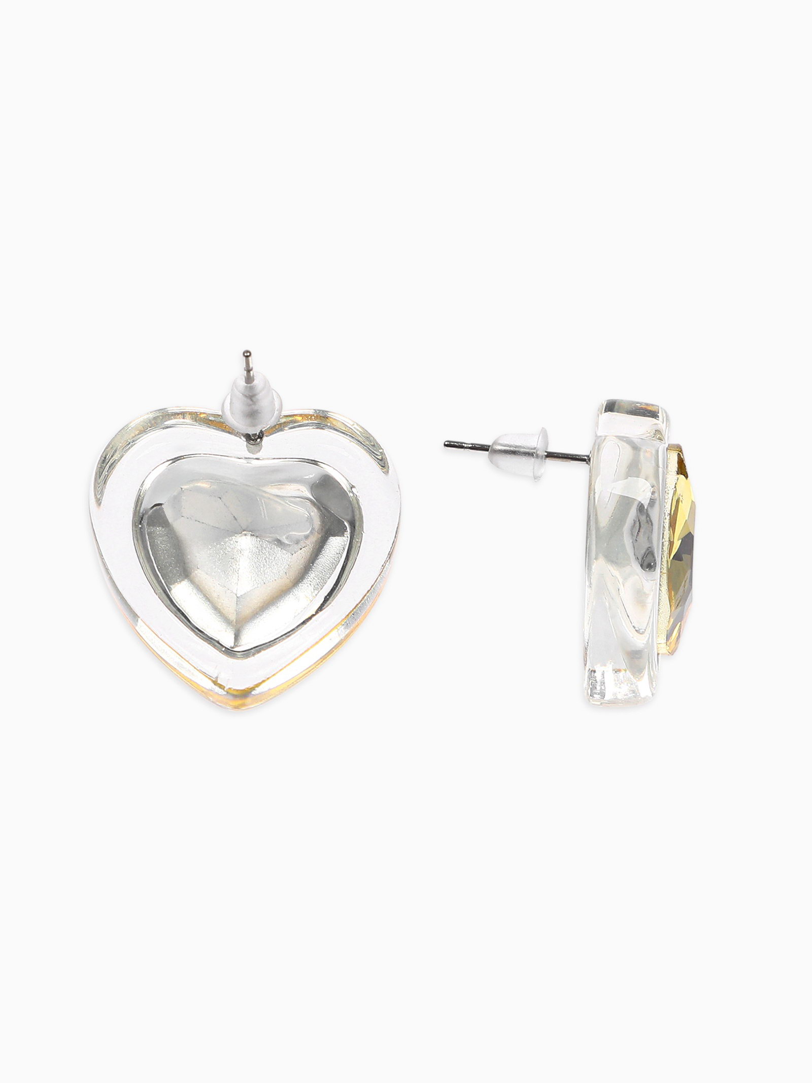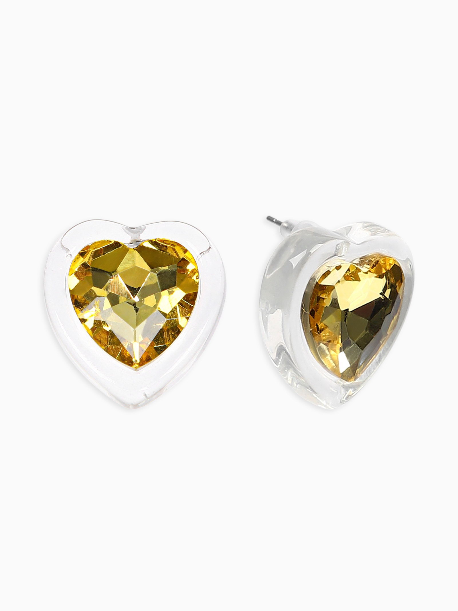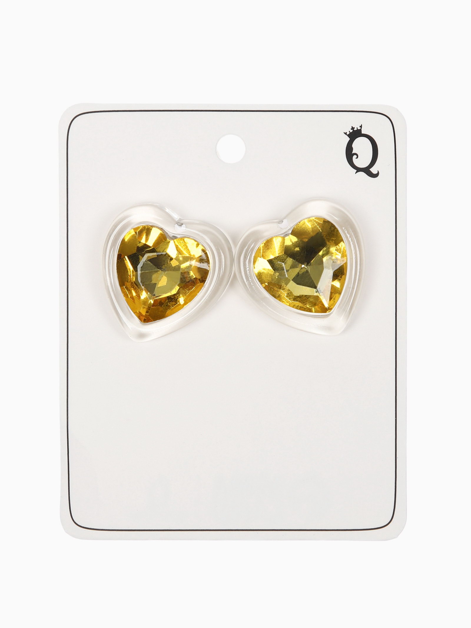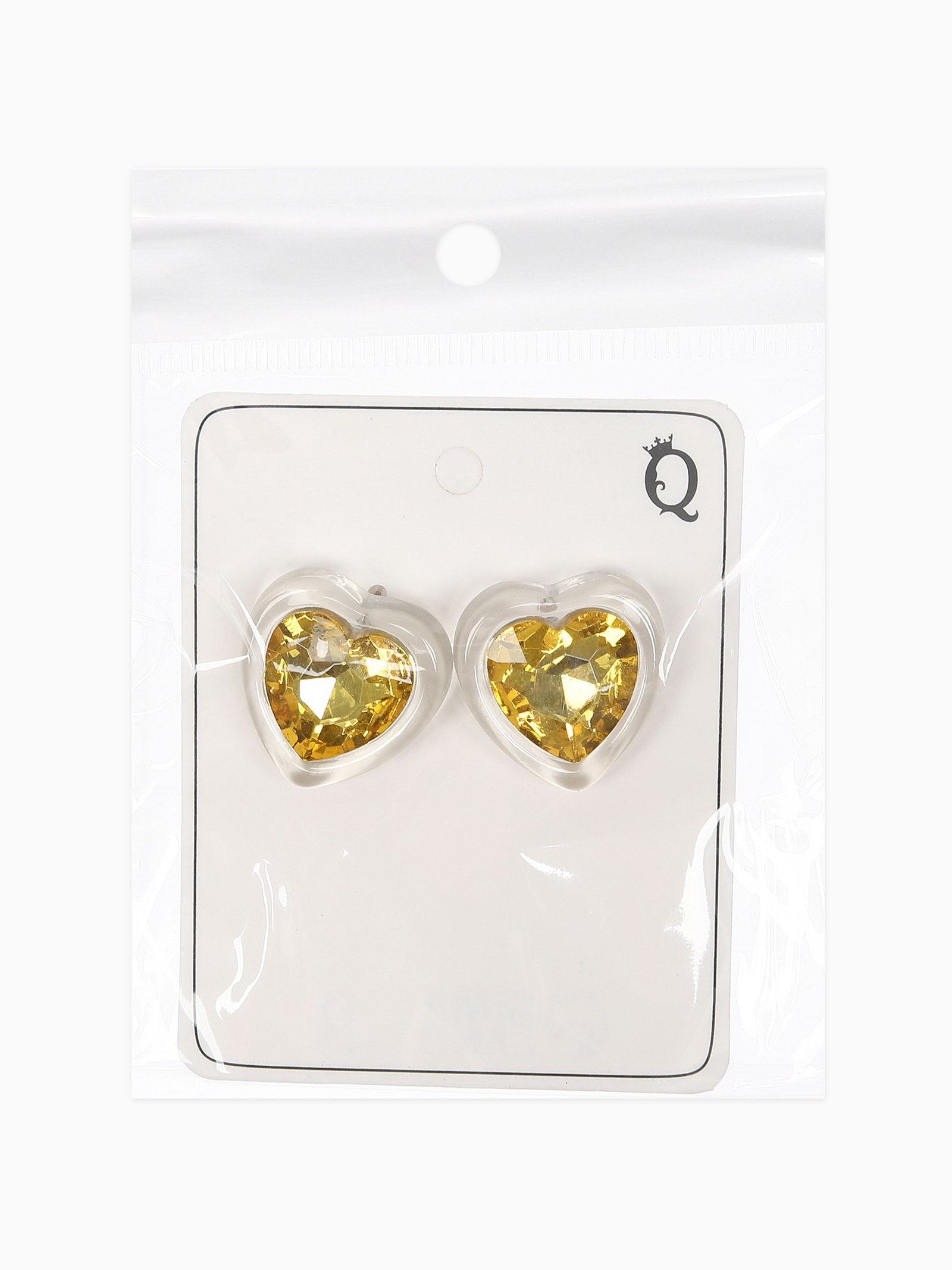 Серьги гвоздики "Кристалл. Сердце", жёлтый, 2.2x2.5x1 см., QF, Китай