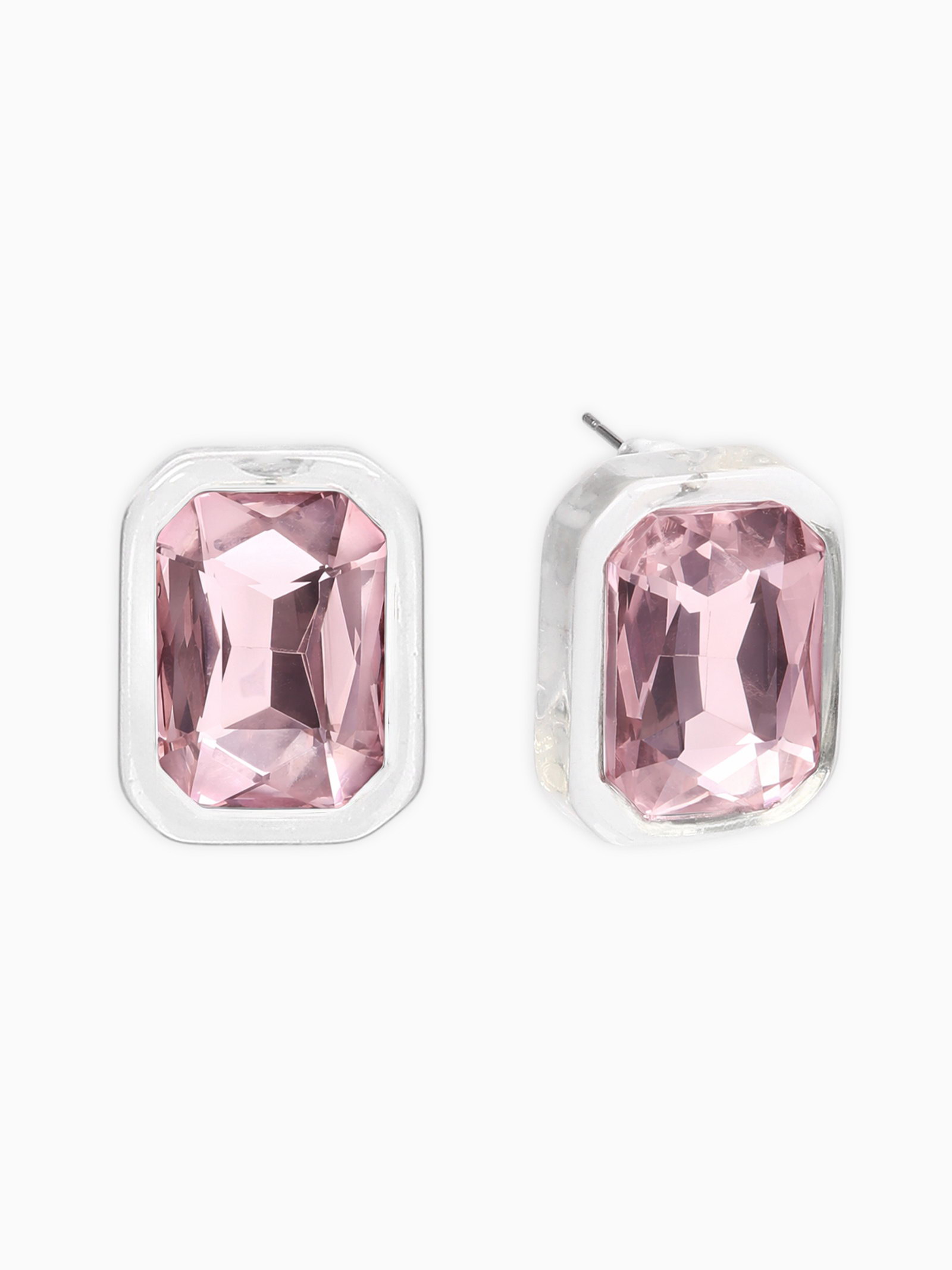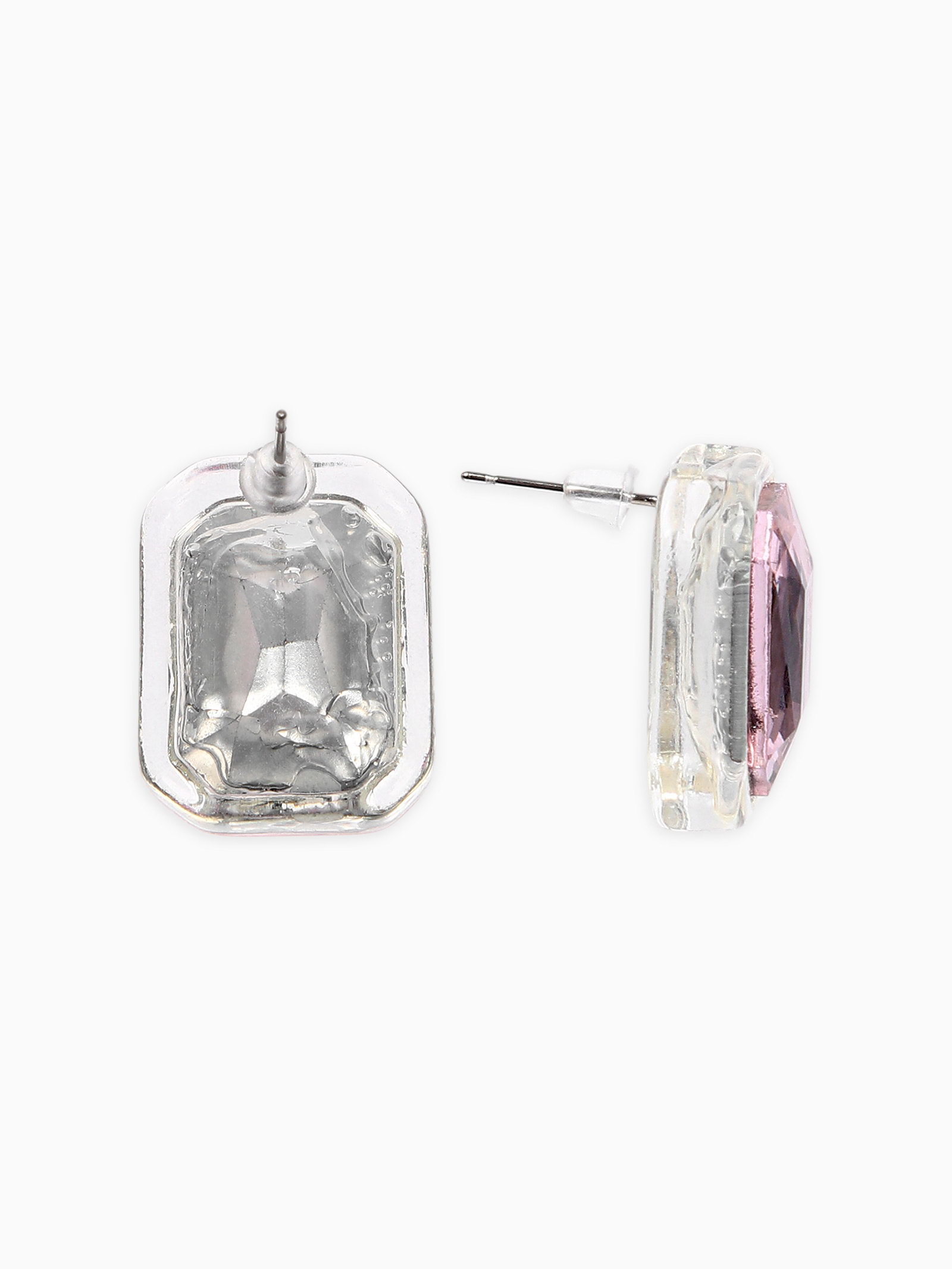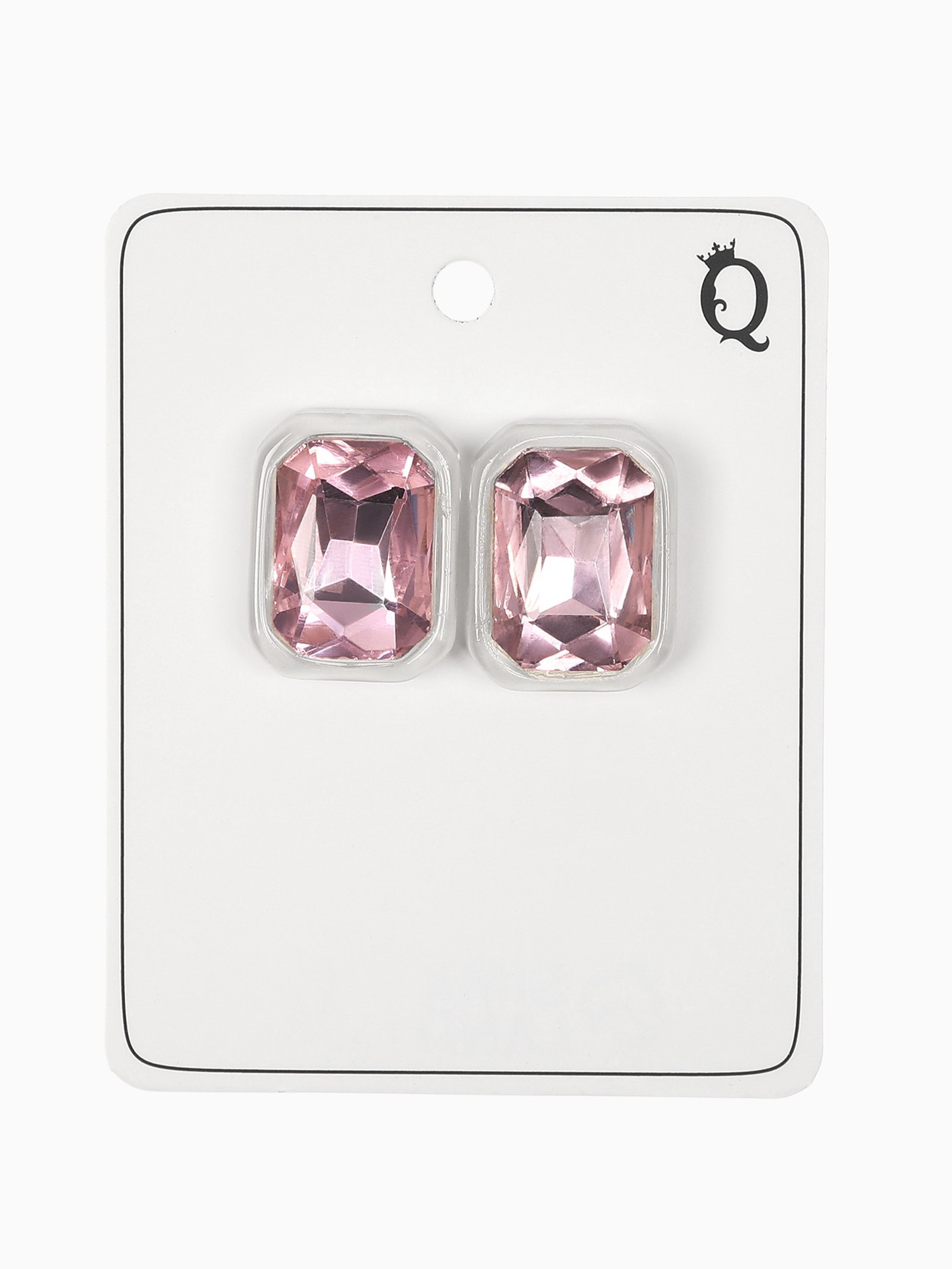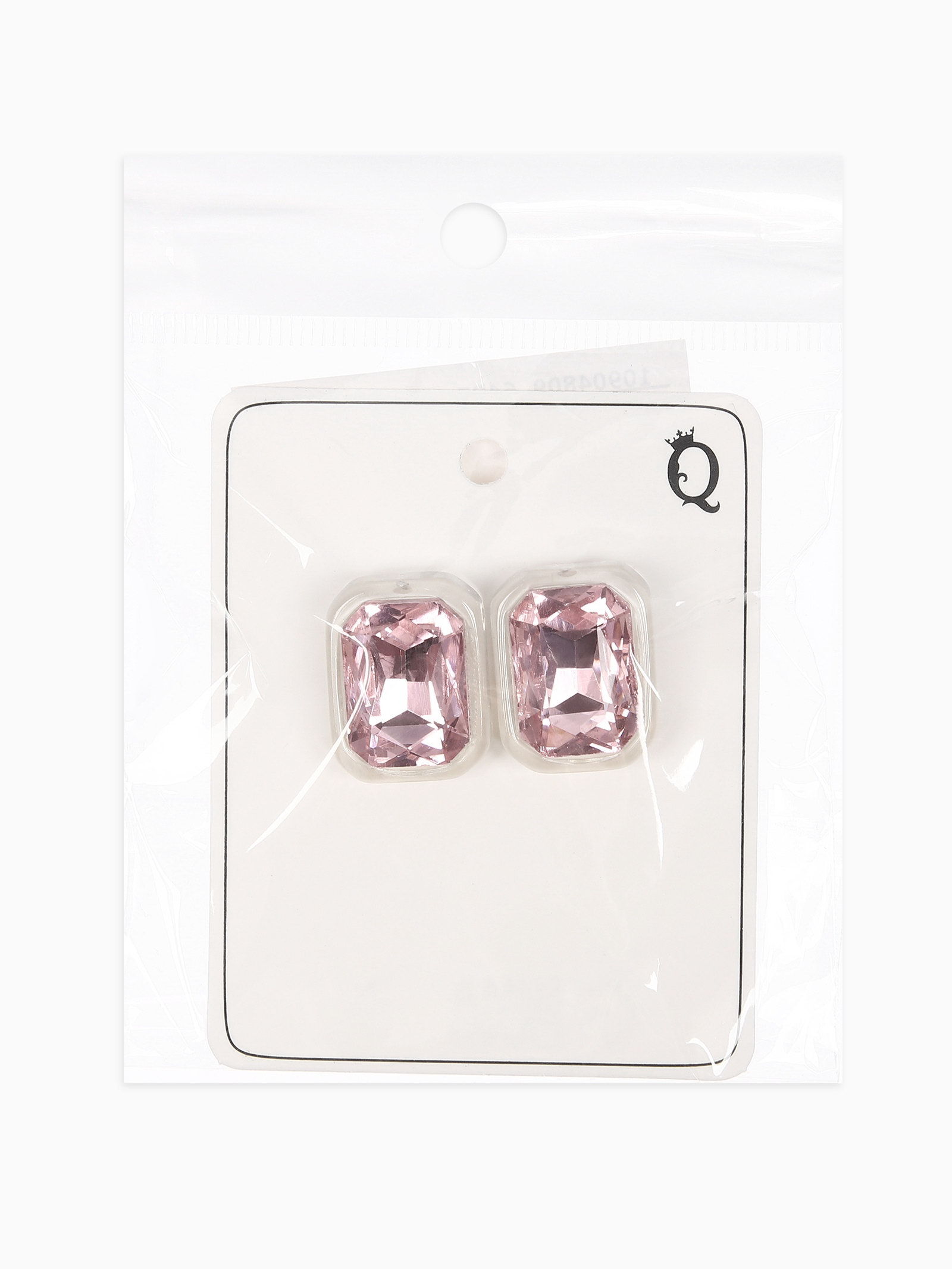 Серьги гвоздики "Кристалл. Прямоугольник", розовые, 2.3x2.8x1 см., QF, Китай