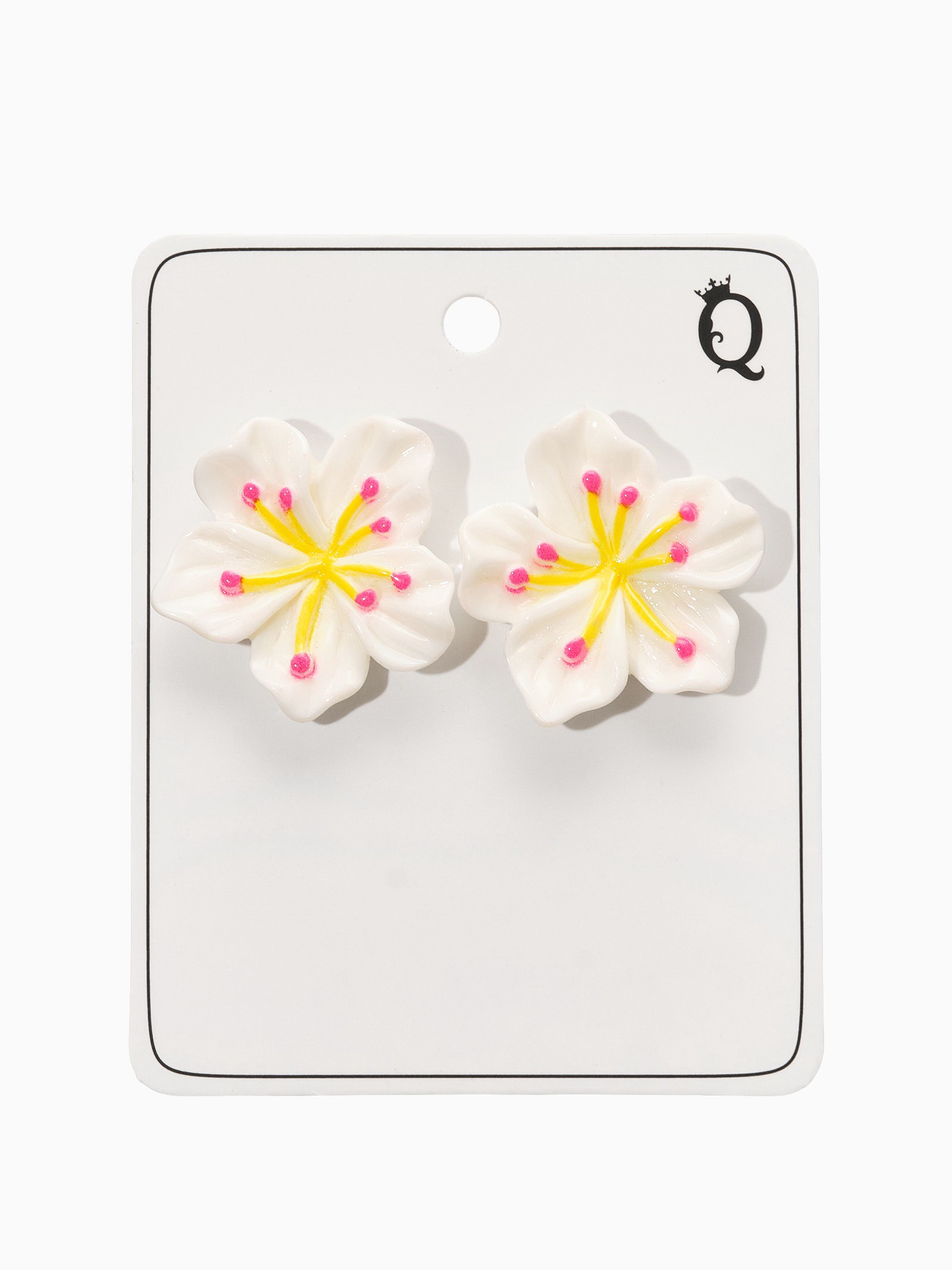 Серьги "Цветок Лилии", белые, 2.8x2.8x0.5 см., QF, Китай