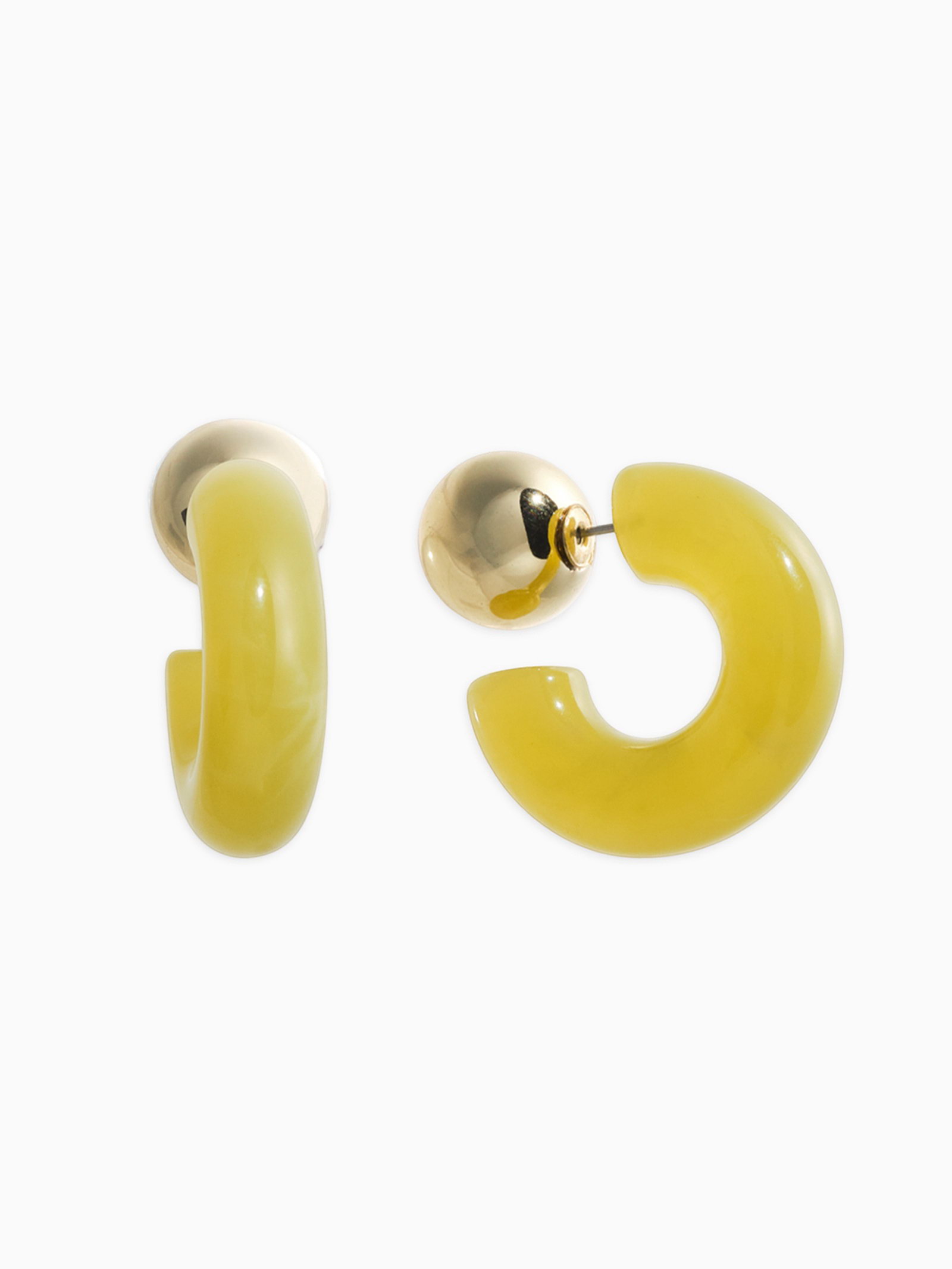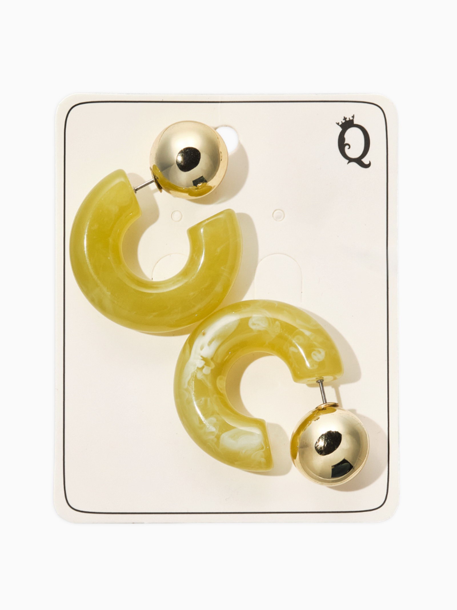 Серьги акрил "Полукольцо с бусиной №14", зелёные, болотные в золоте, 3x3x1.4 см., QF, Китай