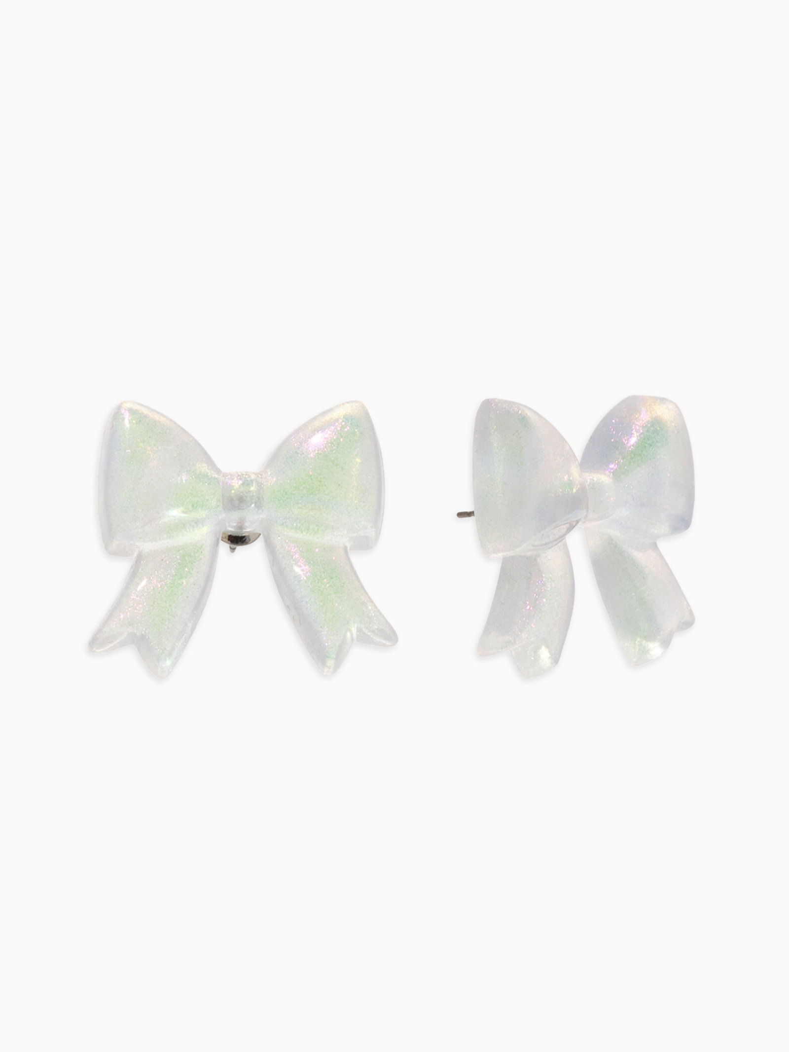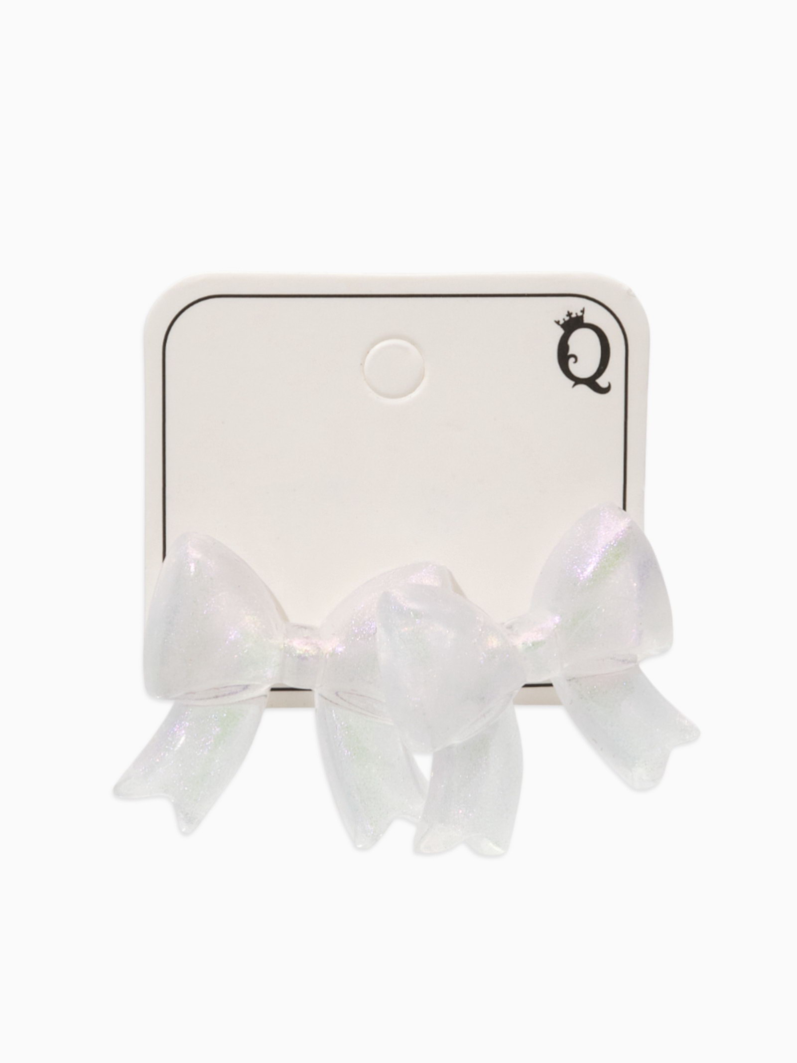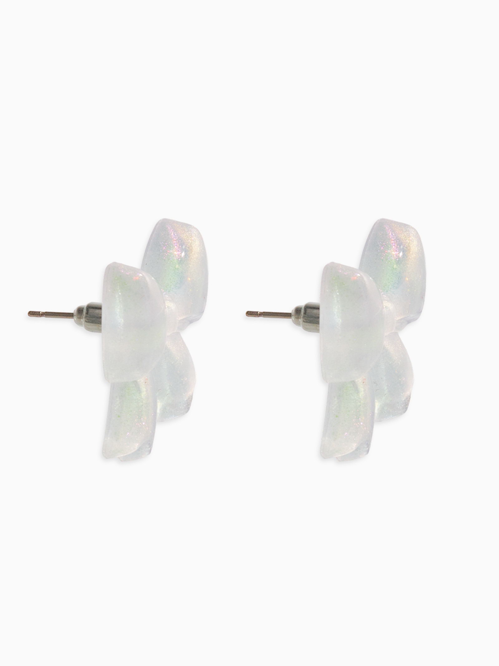 Серьги пластик "Бантик", перламутровый, белые, радужные, 2.5x2.5x0.5 см., QF, Китай