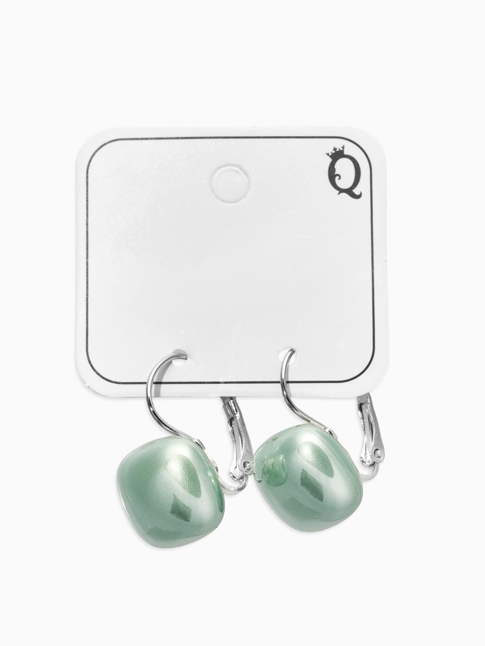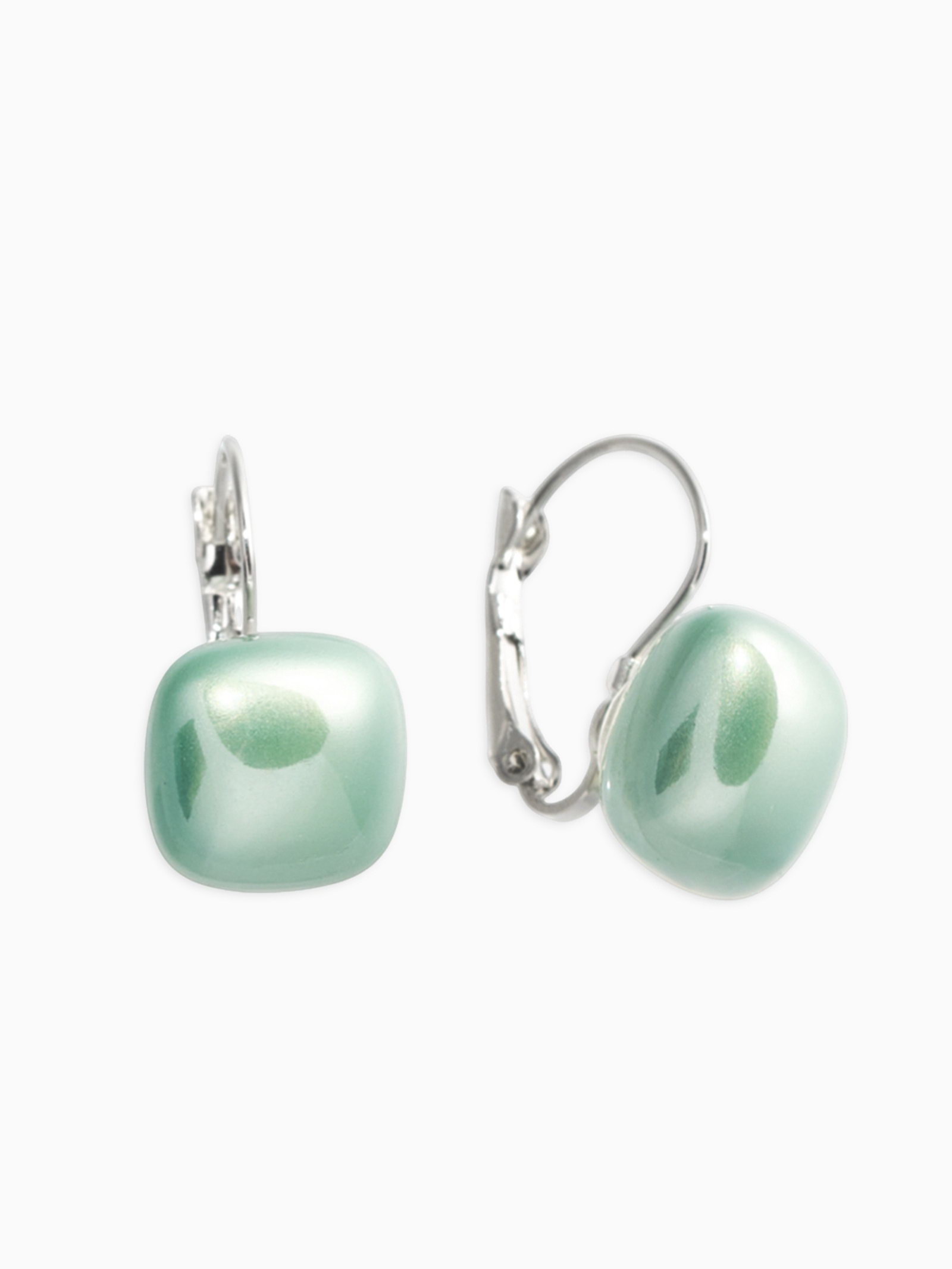 Серьги пластик "Майорика. Квадрат", светло-зелёные в серебре, 1.5x2.8x1.5 см., QF, Китай