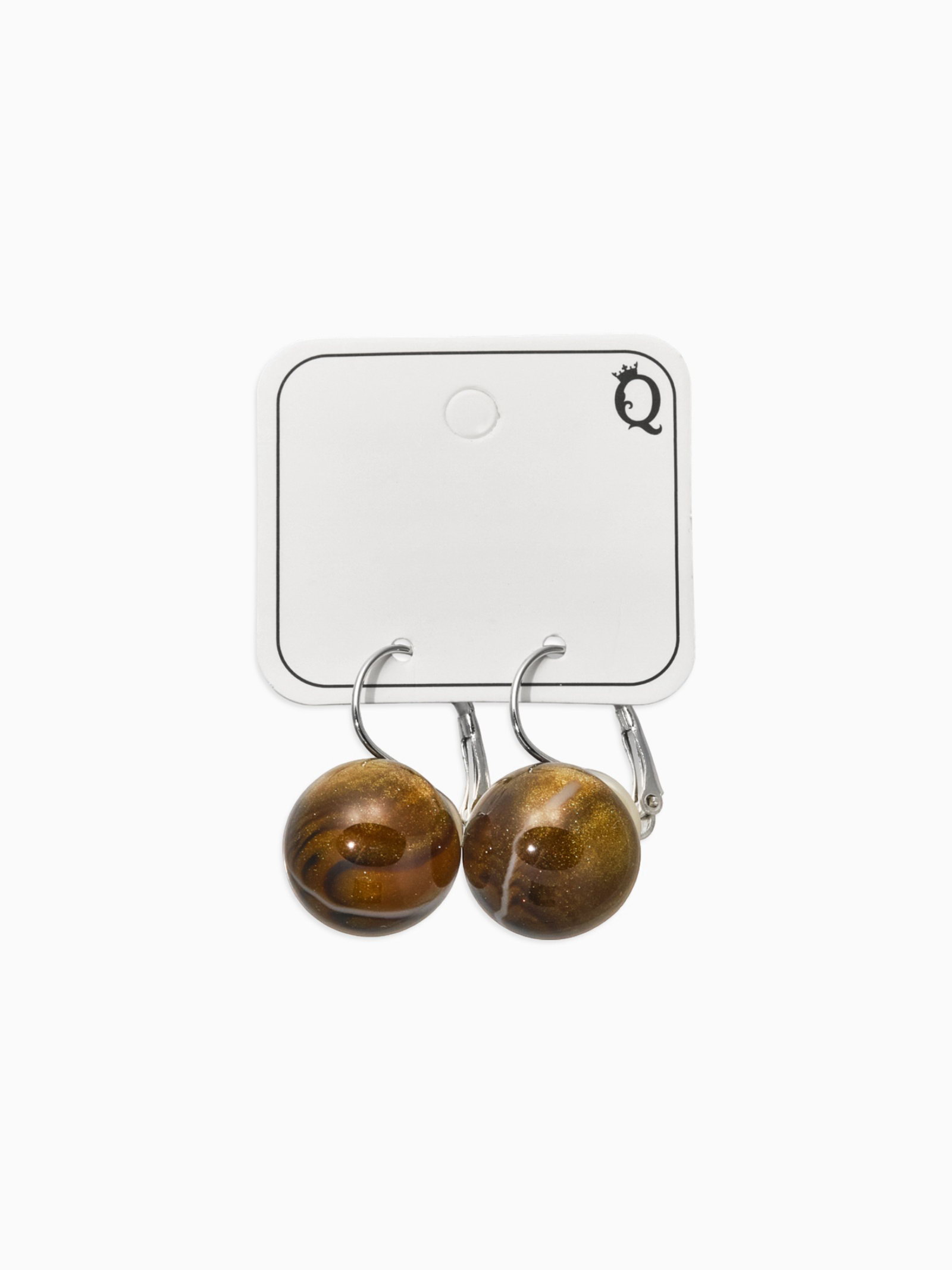 Серьги пластик "Шар №16", с разводами и блёстками, тигровые, глаз в серебре, 1.5x3.5x1.5 см., QF, Китай