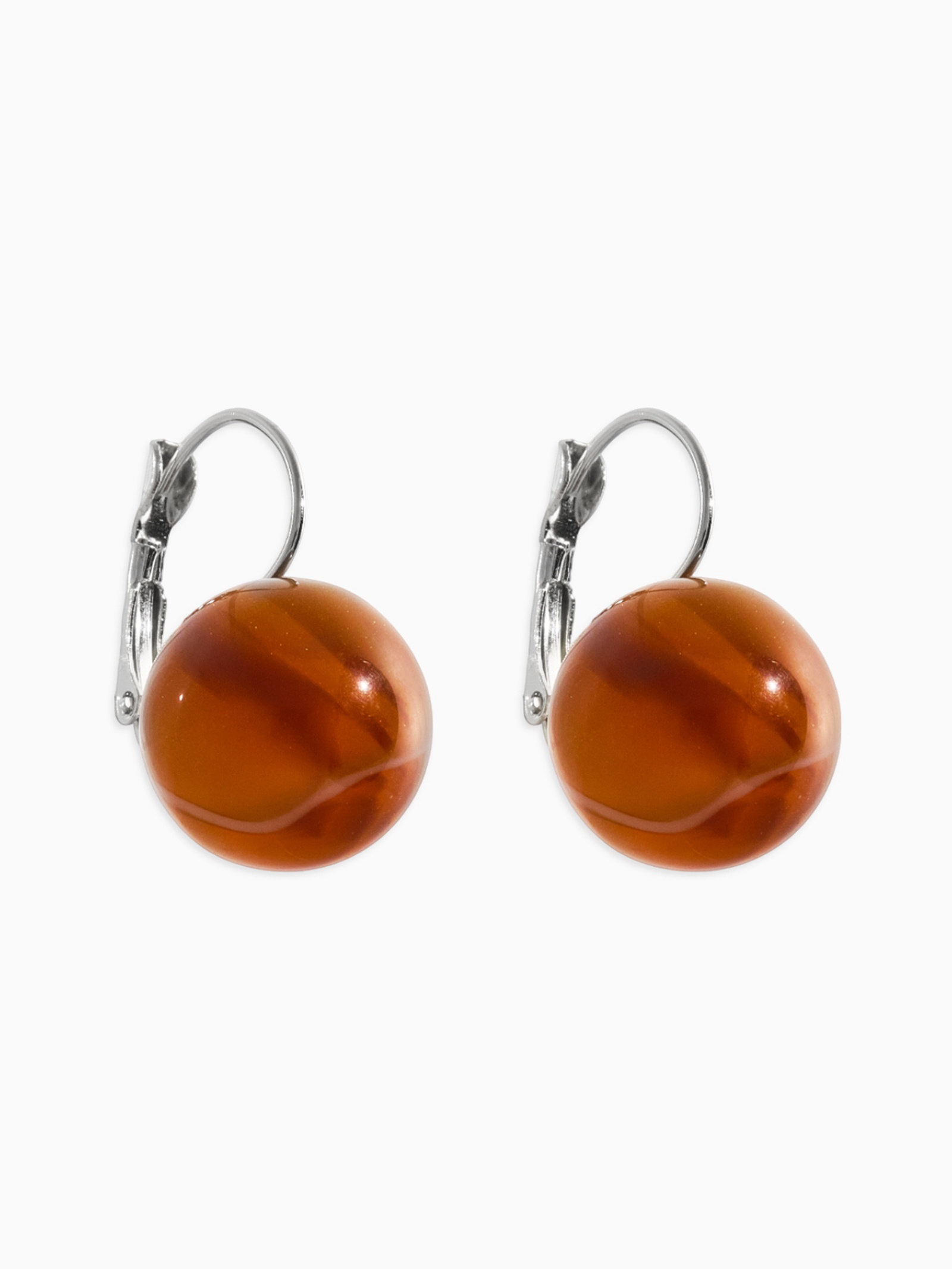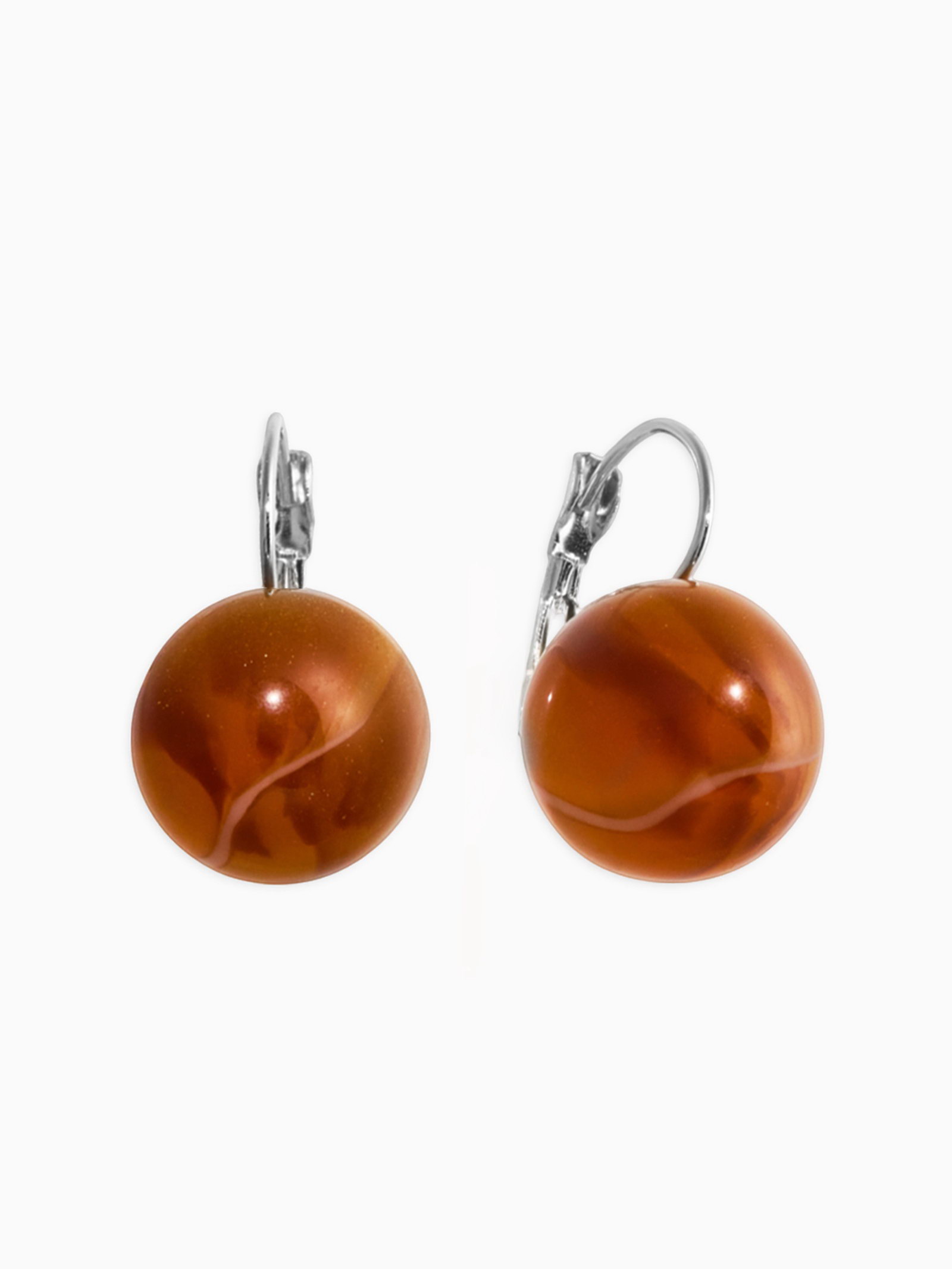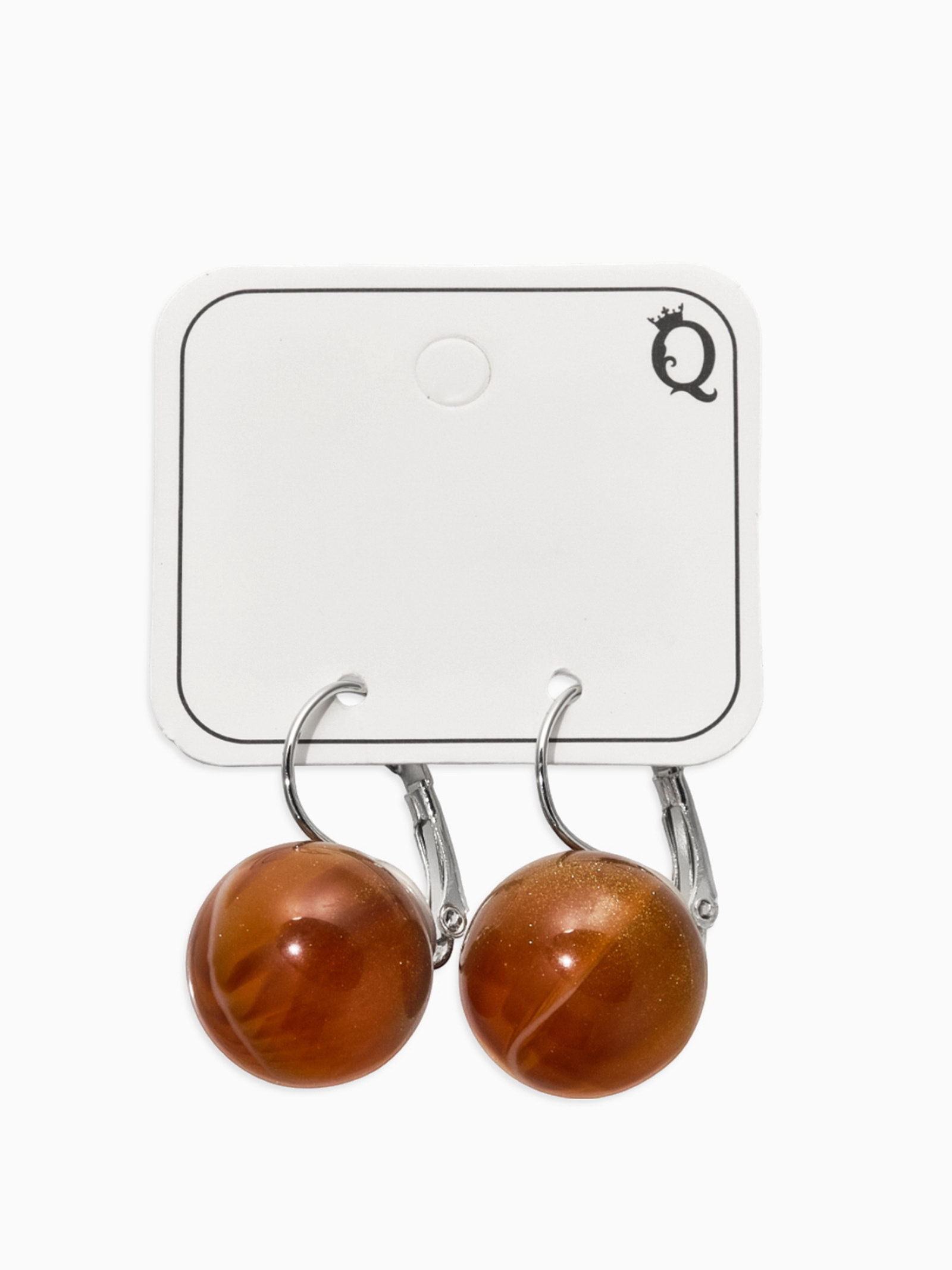 Серьги пластик "Шар №16", с разводами и блёстками, светло-коричневые в серебре, 1.5x3.5x1.5 см., QF, Китай