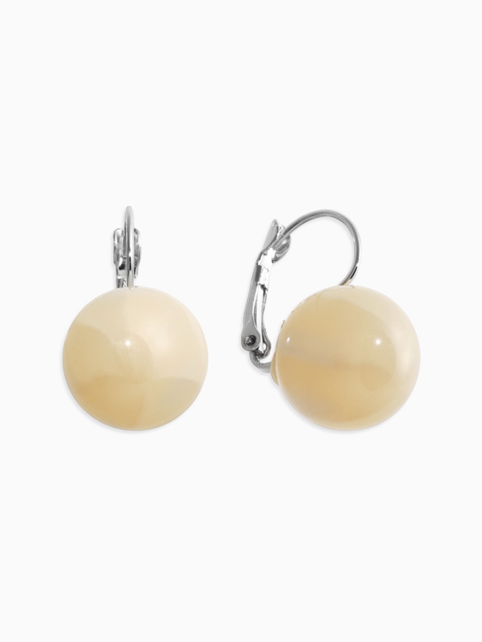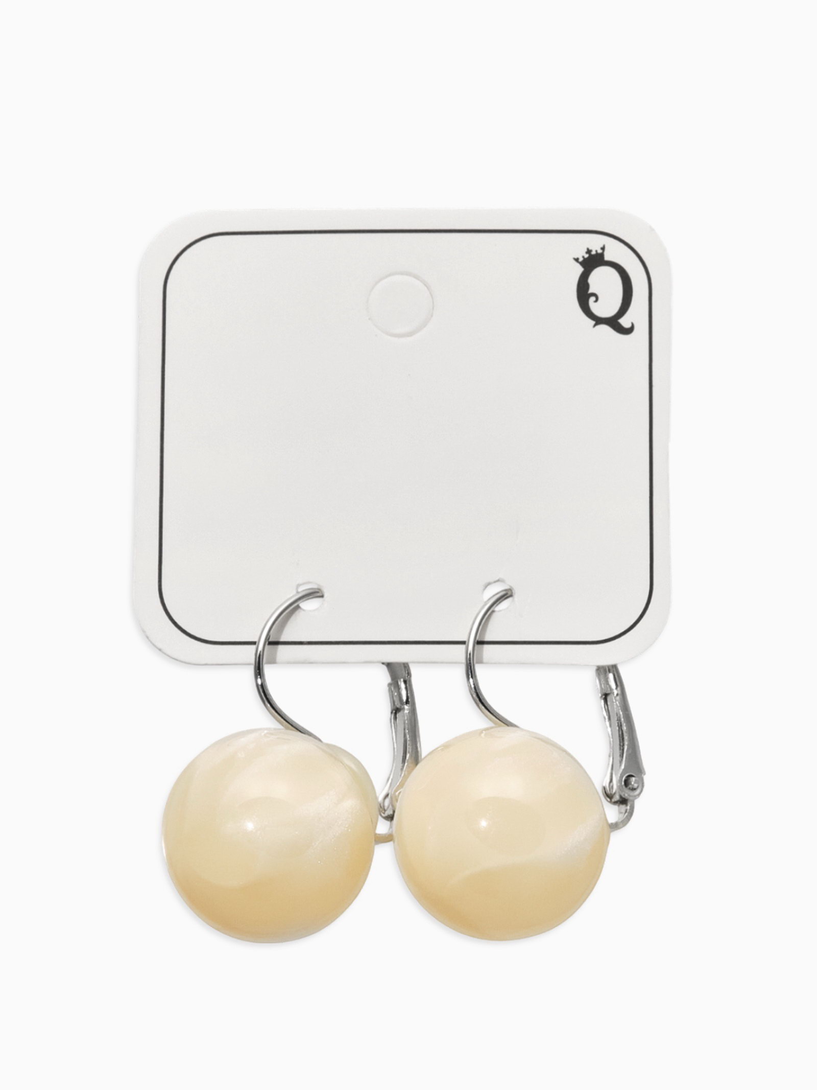 Серьги пластик "Шар №16", с разводами и блёстками, цвет молочный в серебре, 1.5x3.5x1.5 см., QF, Китай