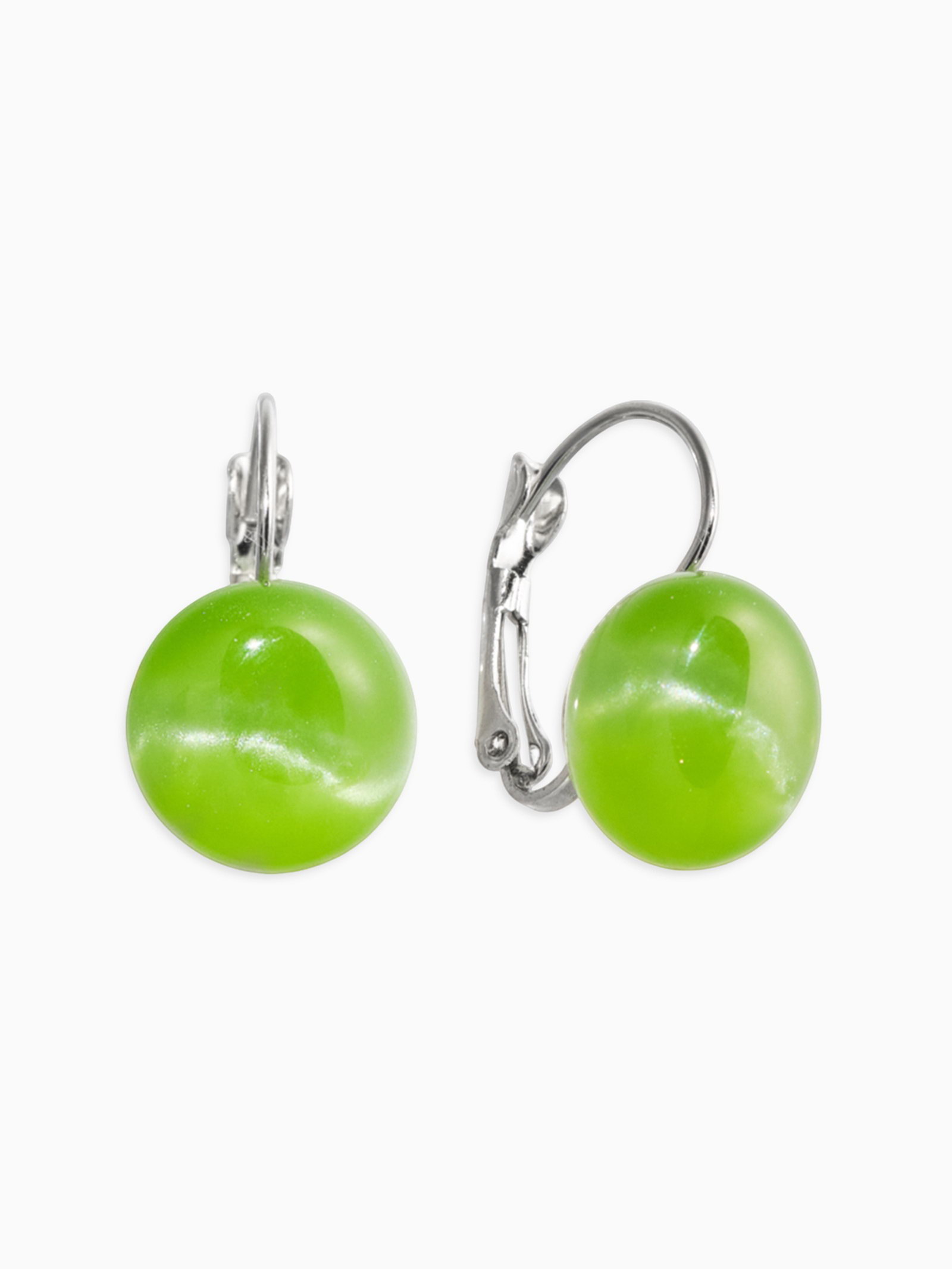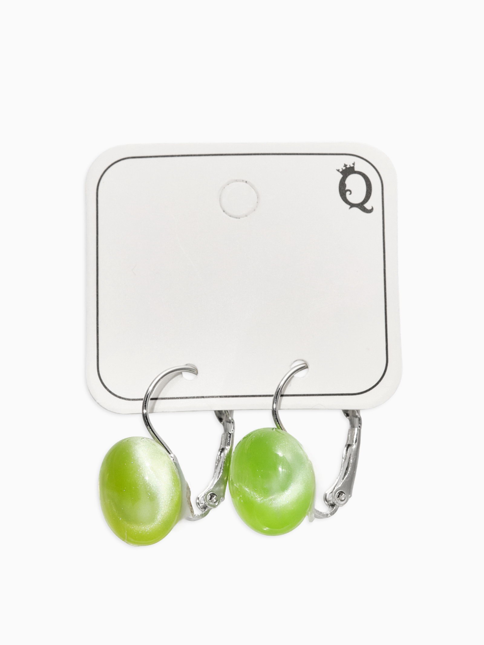 Серьги "Таблетка. Кошачий глаз", шарик, пластик, зелёные в серебре, 1.3x2.8x1.5 см., QF, Китай