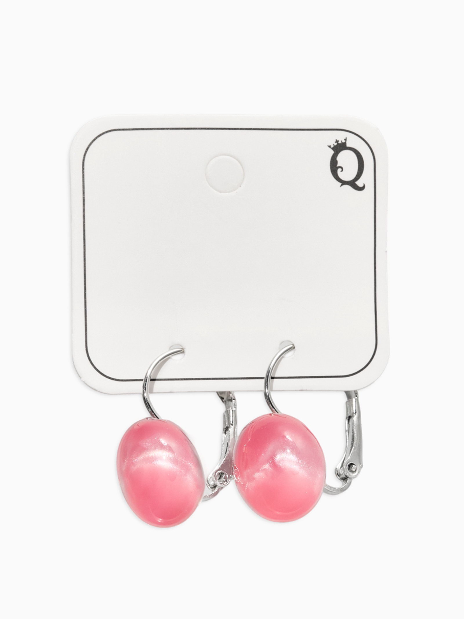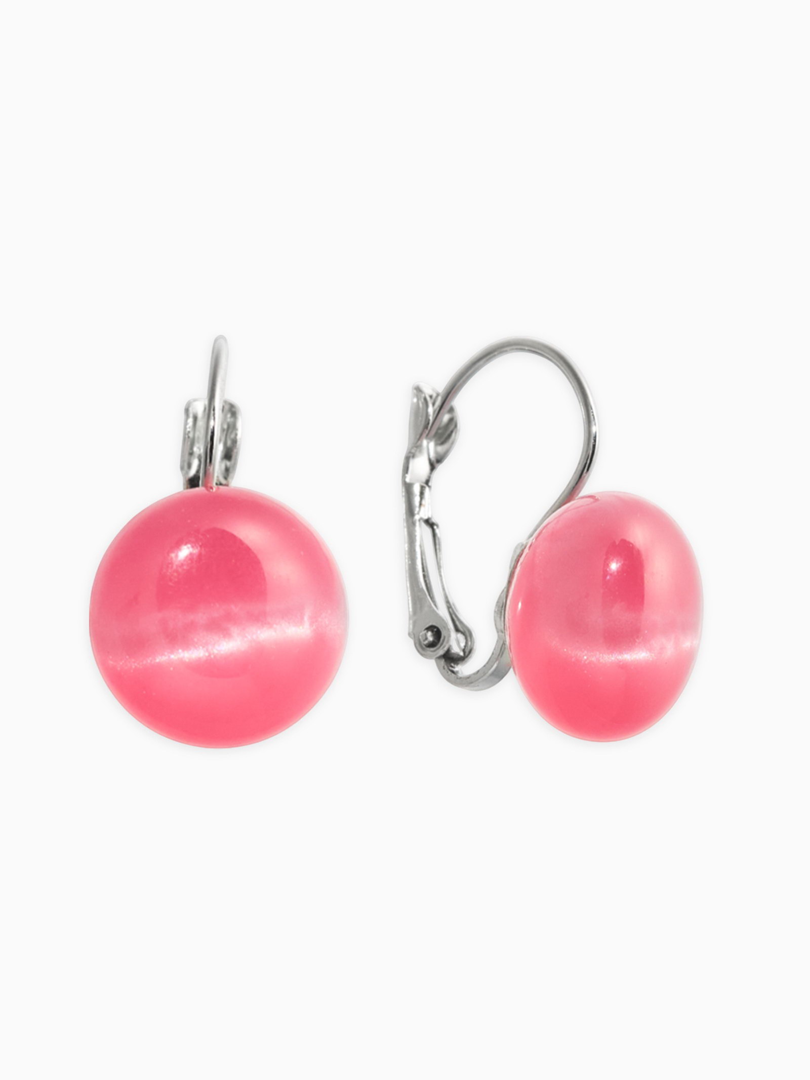 Серьги "Таблетка. Кошачий глаз", шарик, пластик, розовые в серебре, 1.3x2.8x1.5 см., QF, Китай