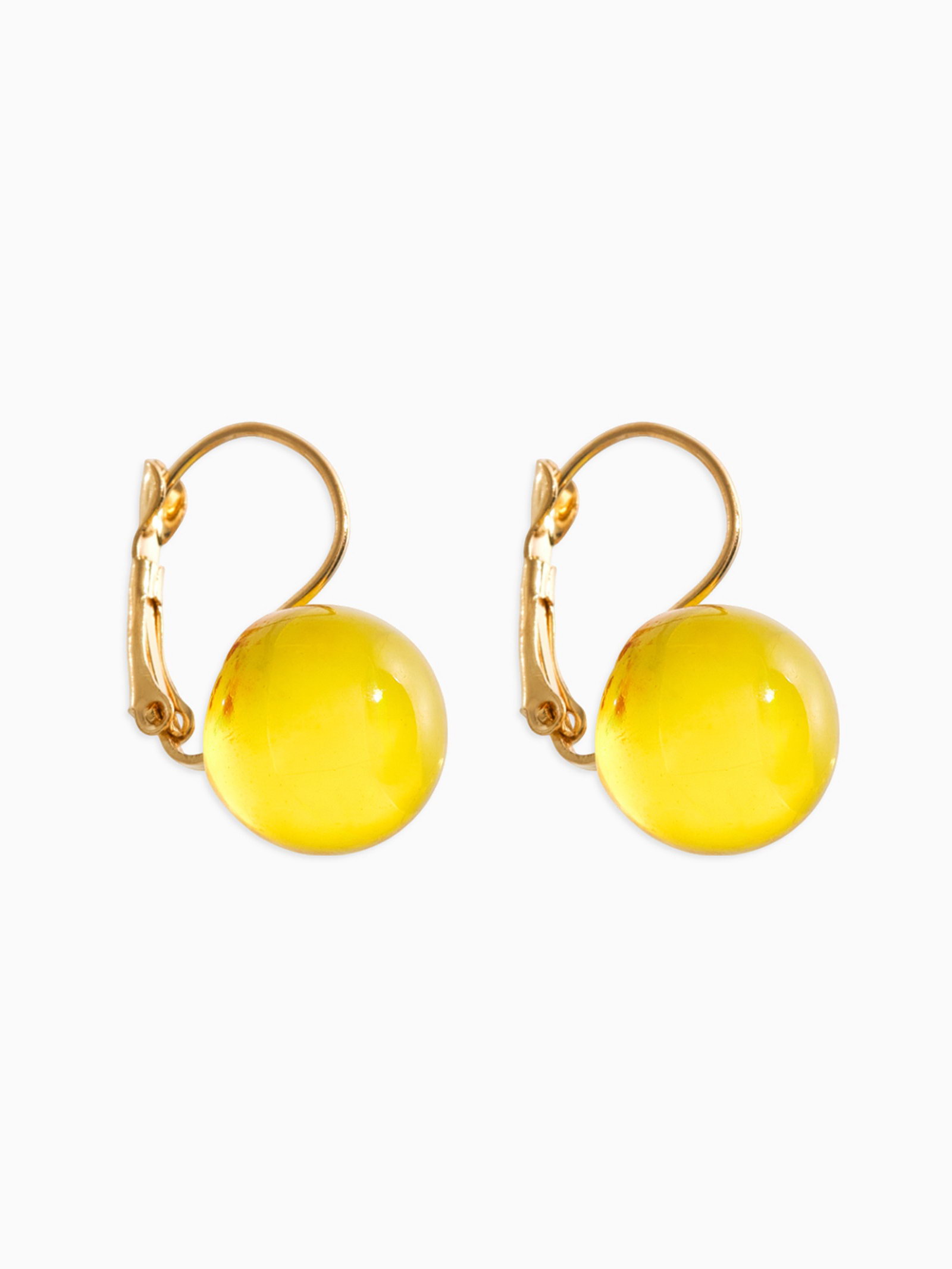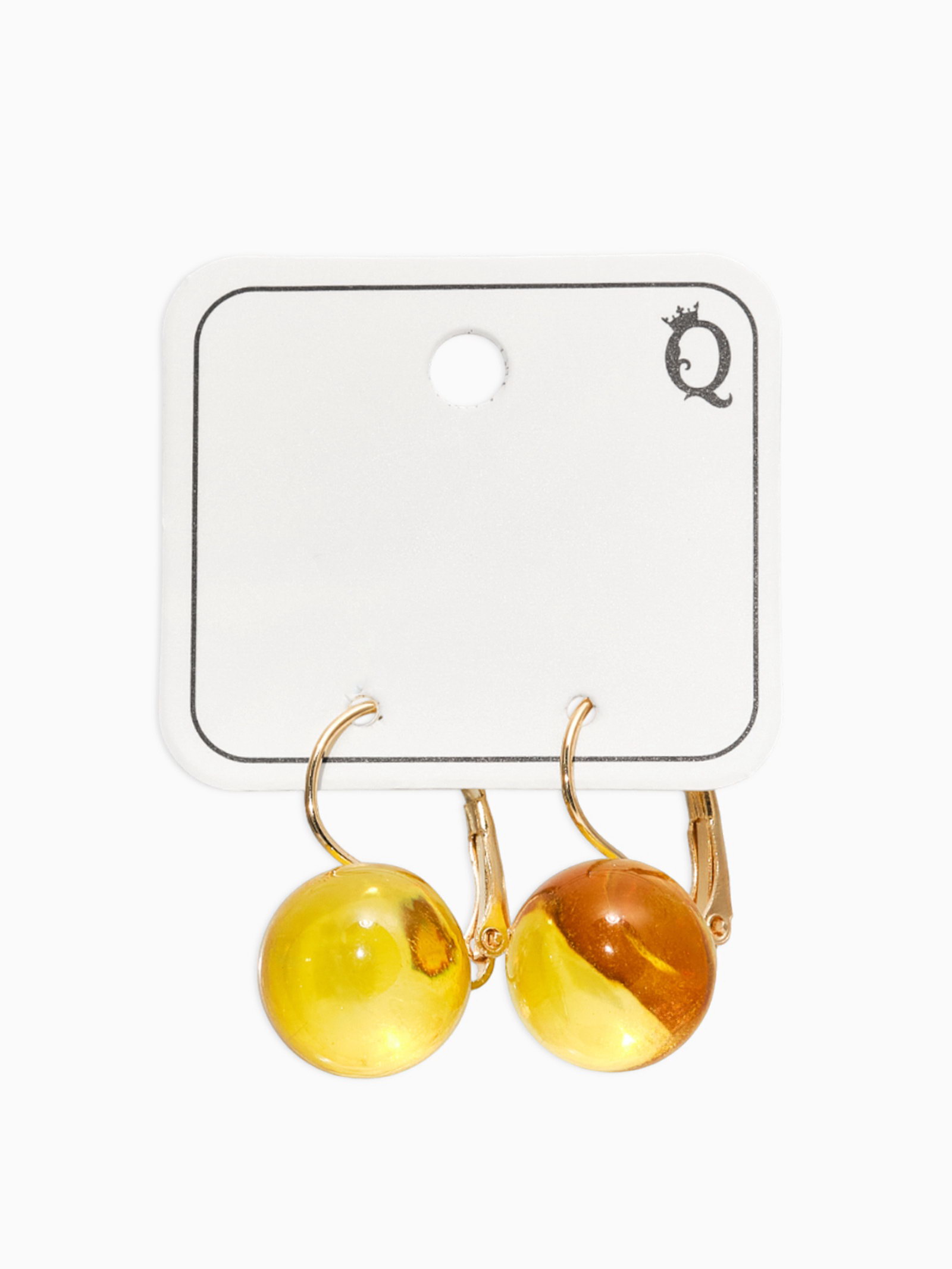 Серьги "Шар №14", пластик, жёлтые в золоте, 1.4x2.8x1.4 см., QF, Китай