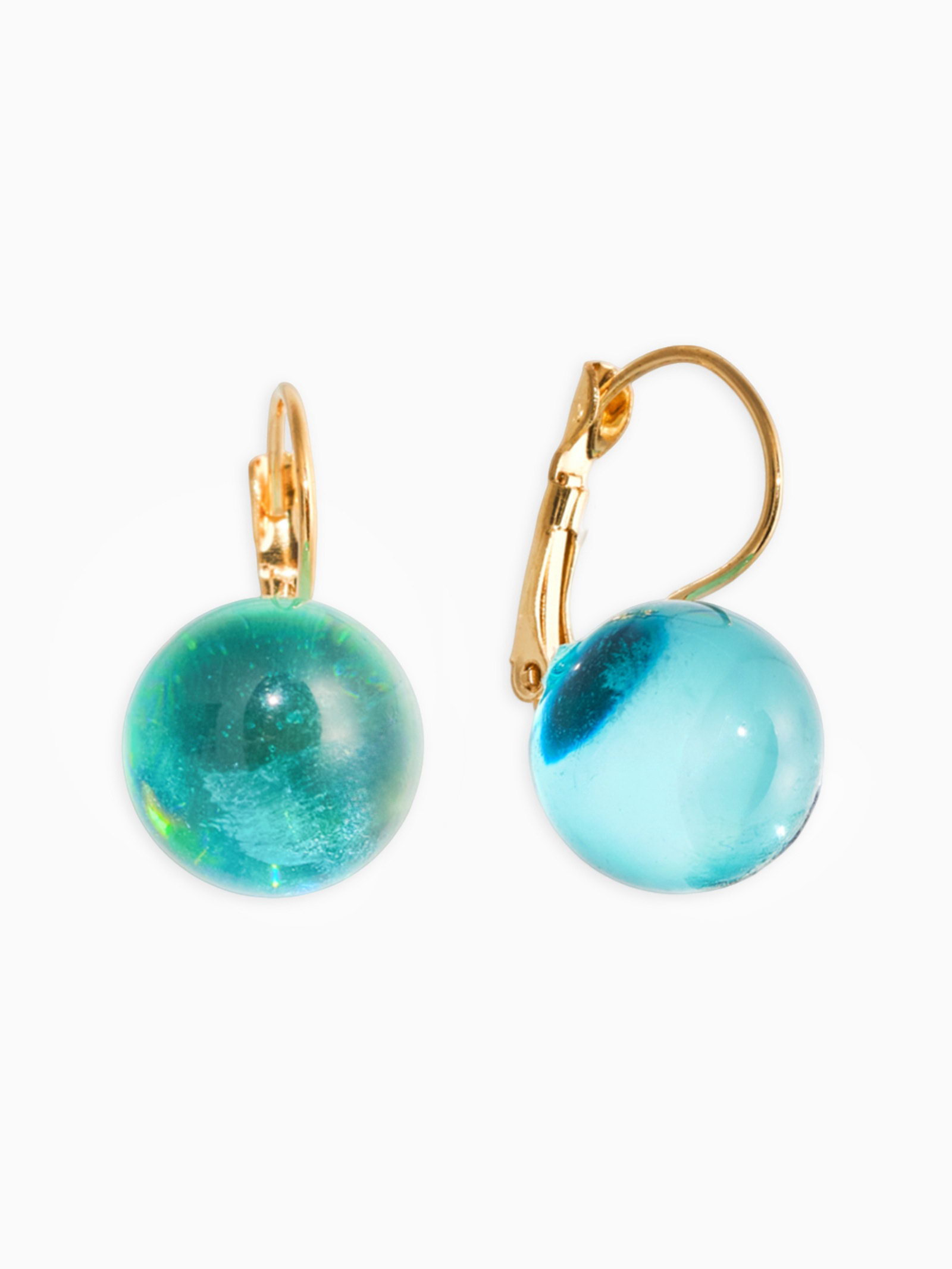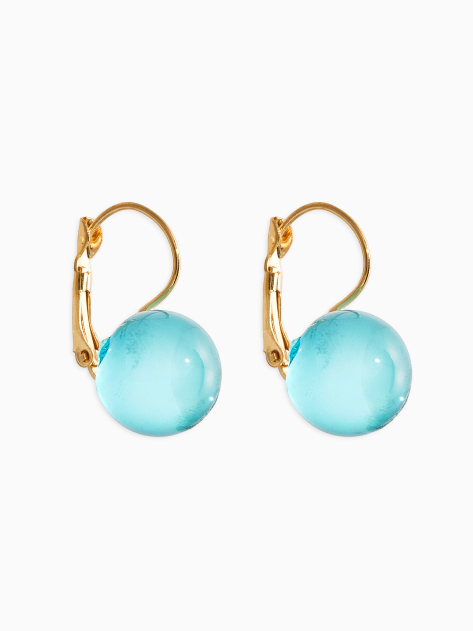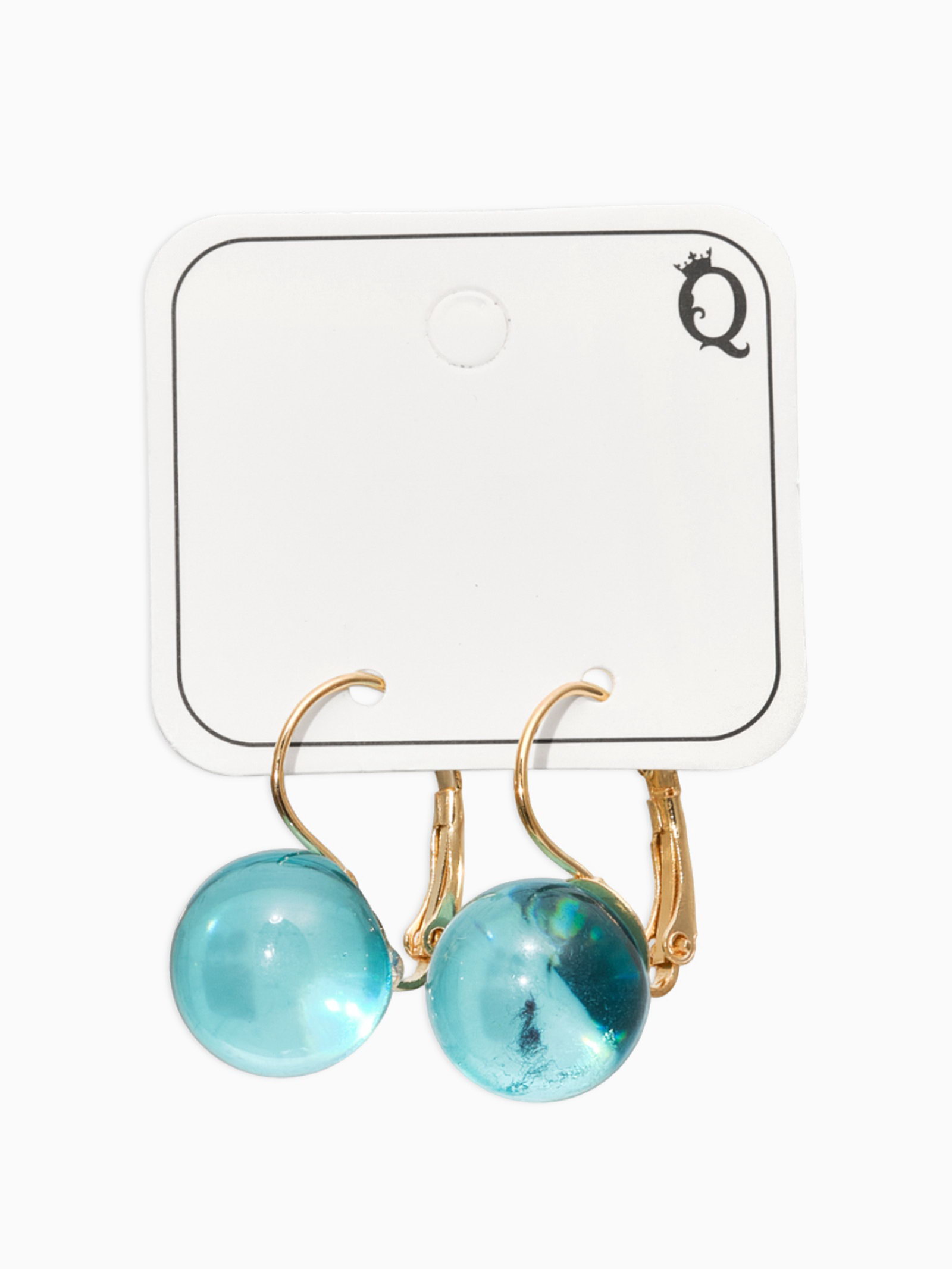 Серьги "Шар №14", пластик, голубые в золоте, 1.4x2.8x1.4 см., QF, Китай