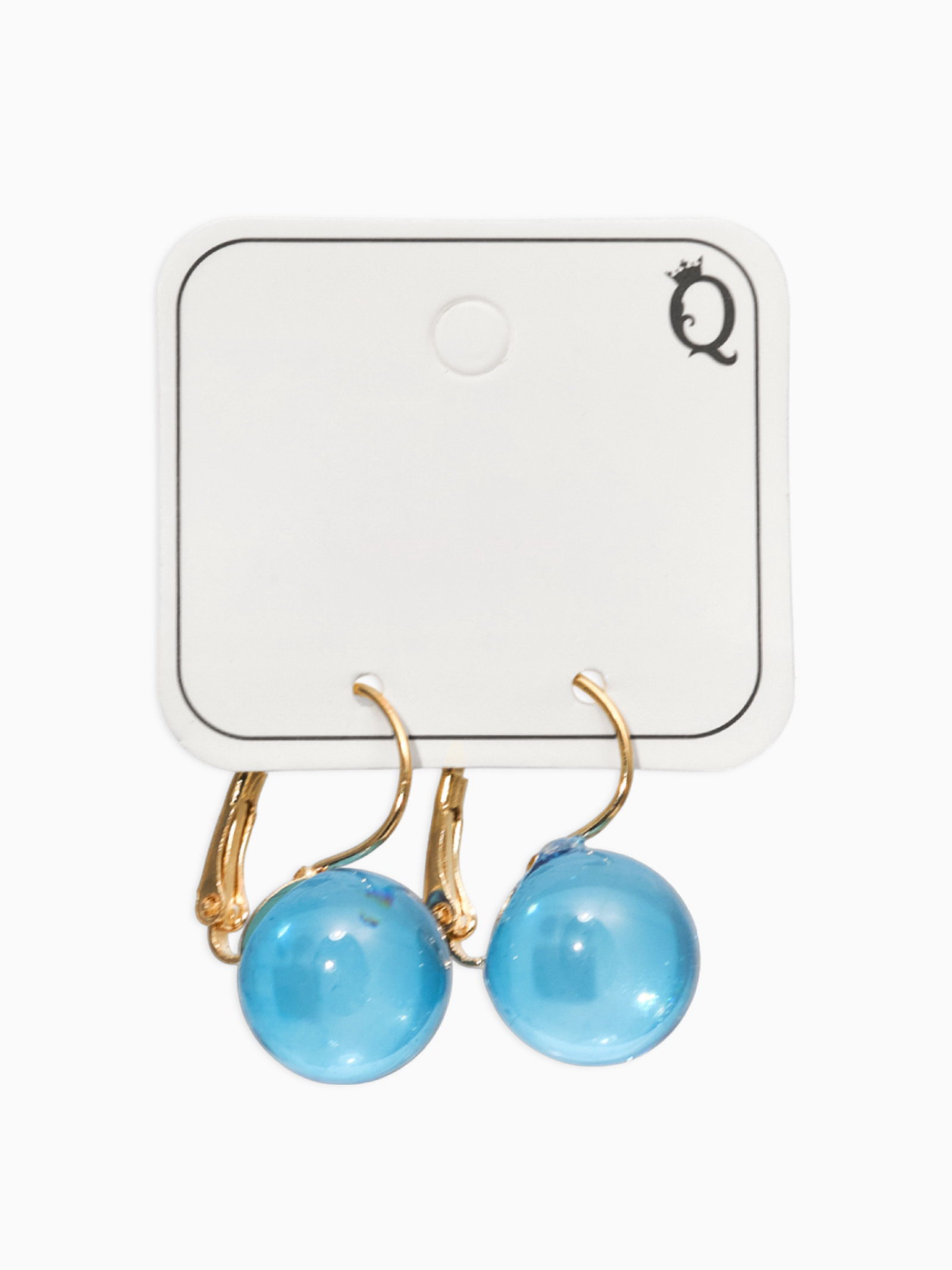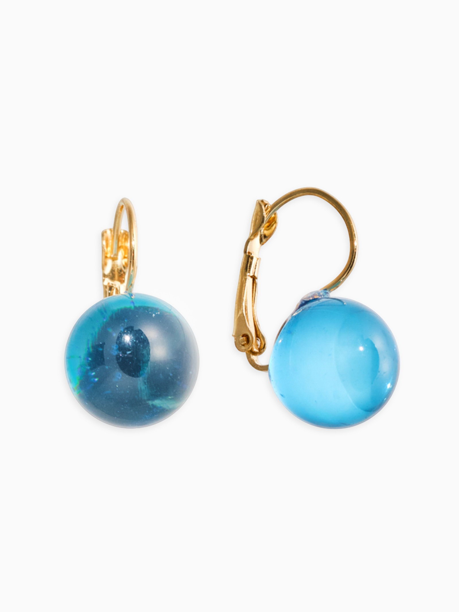 Серьги "Шар №14", пластик, синие в золоте, 1.4x2.8x1.4 см., QF, Китай