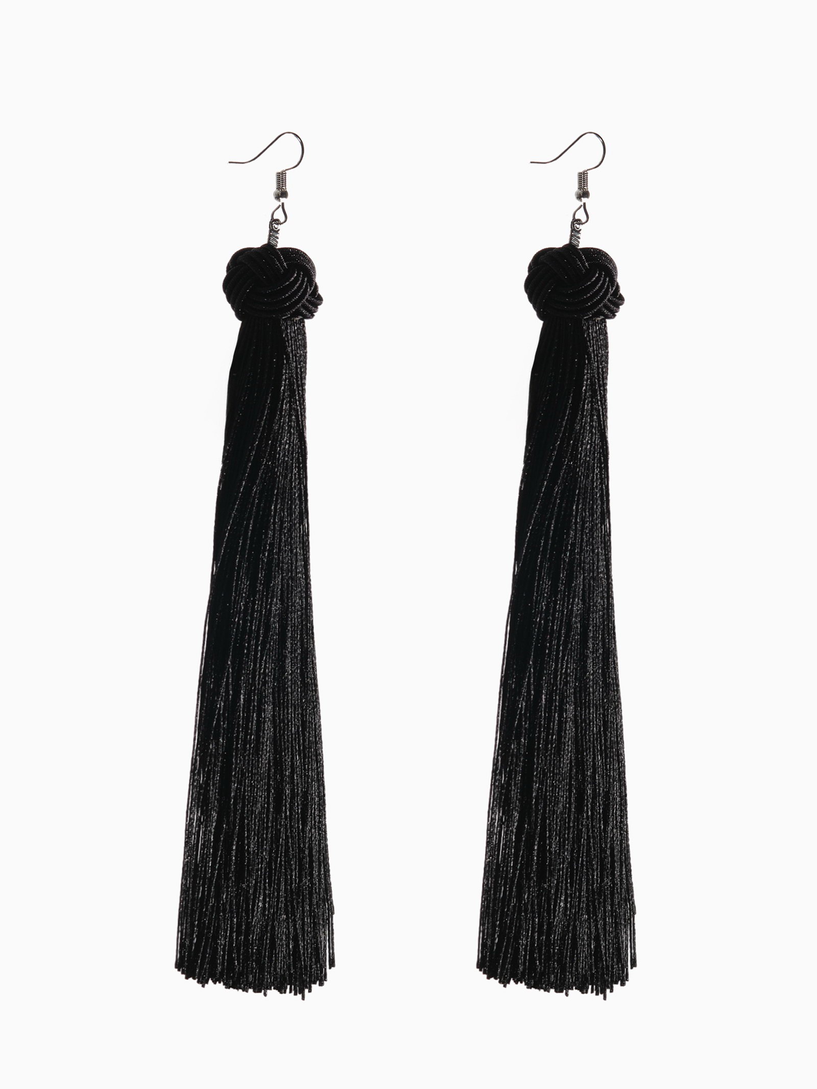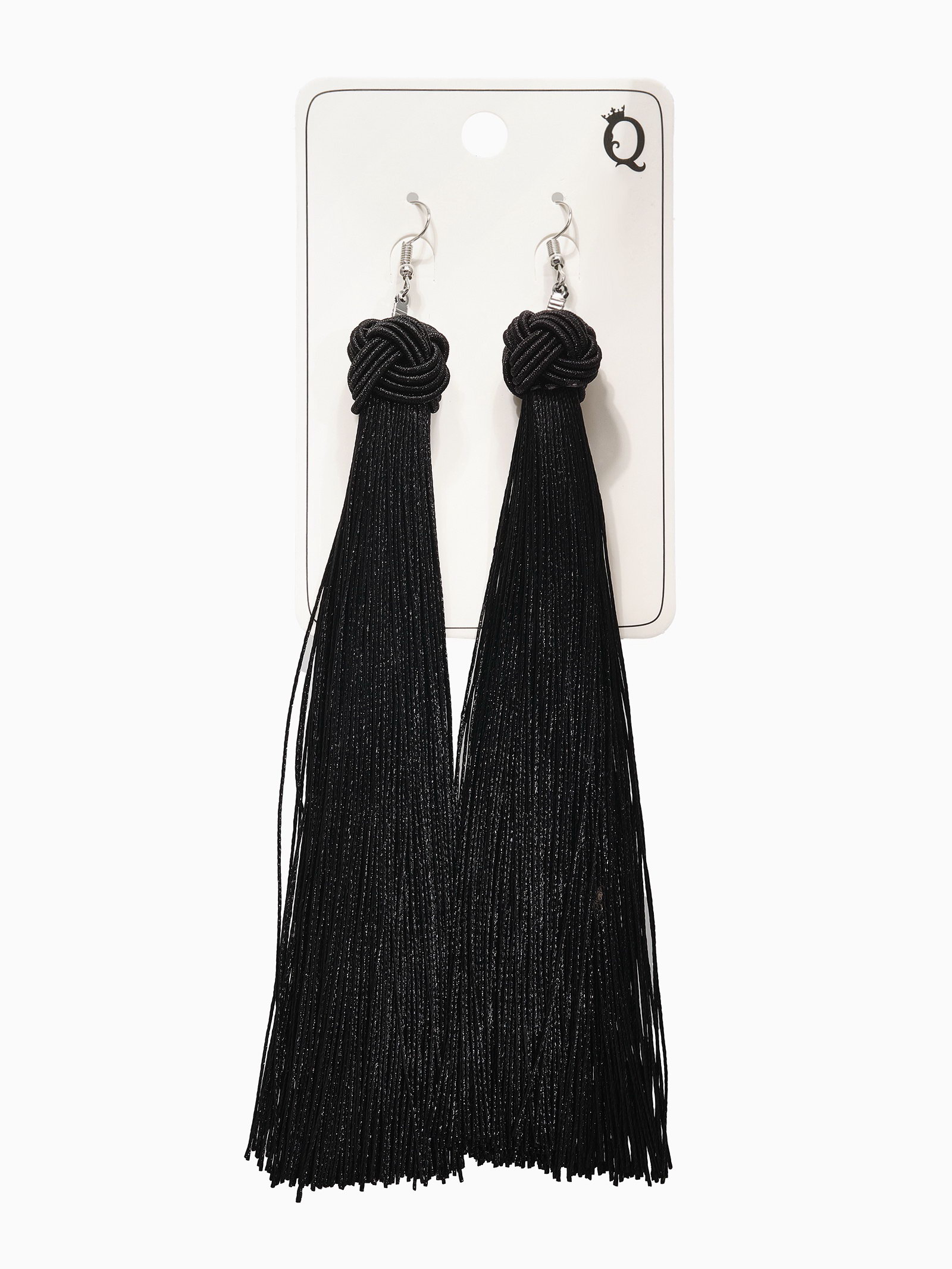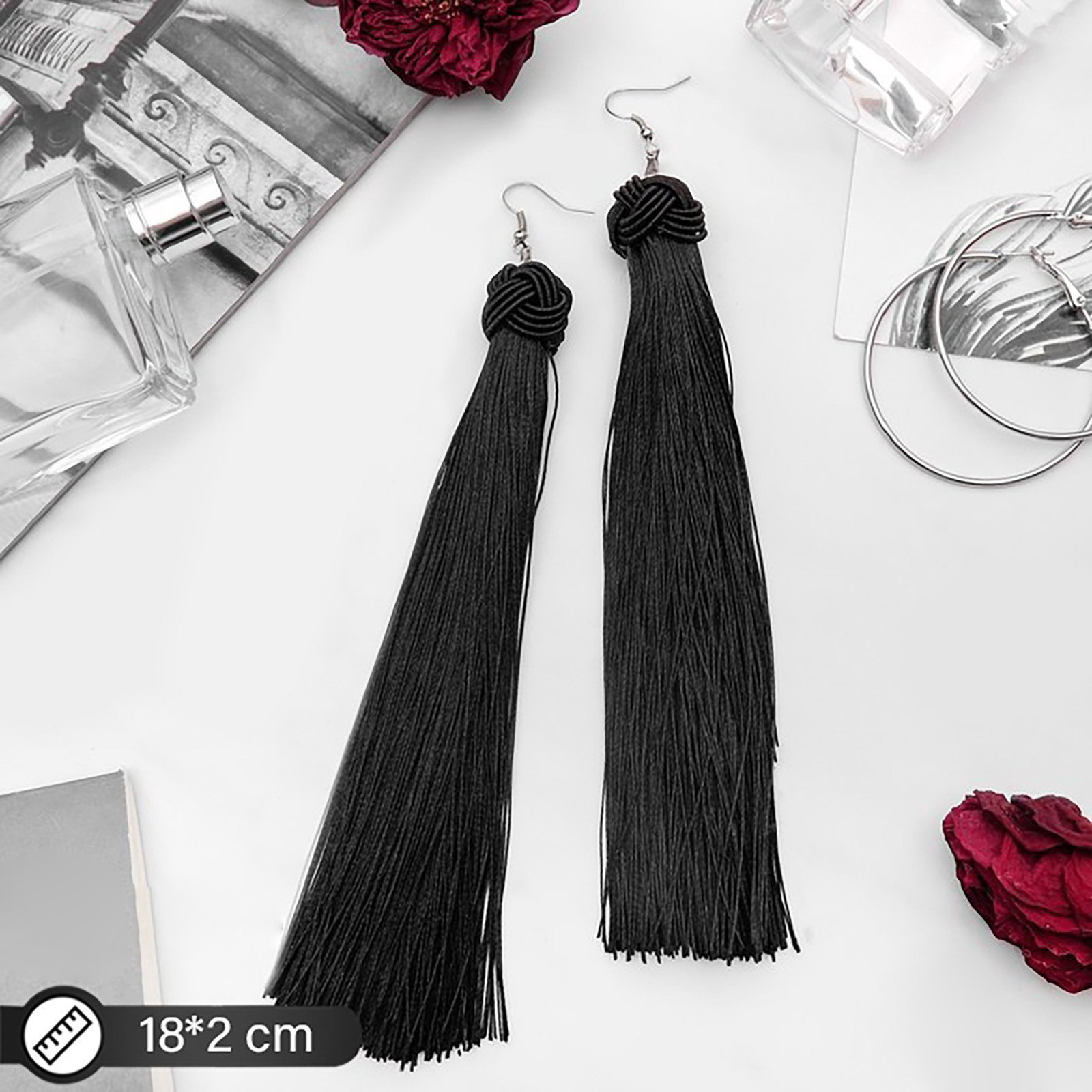 Серьги "Кисти" романс, цвет чёрный в серебре, длина кисти 16 см, 2x18x2 см., QF, Китай