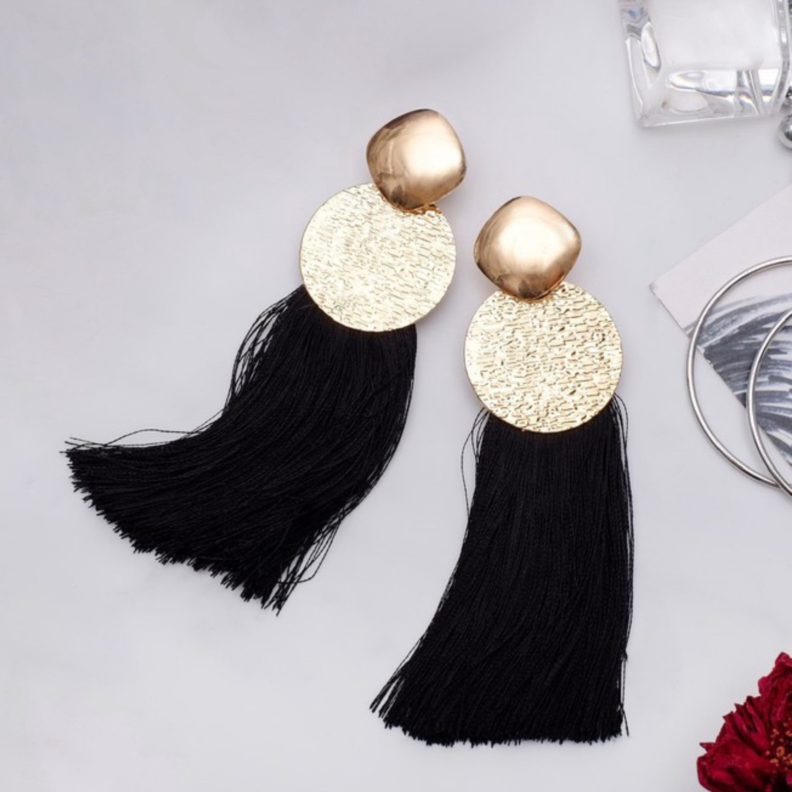 Серьги ассорти "Кисти" хинди, цвет чёрный в золоте, L кисти 6.5 см, 3.3x11x0.5 см., QF, Китай