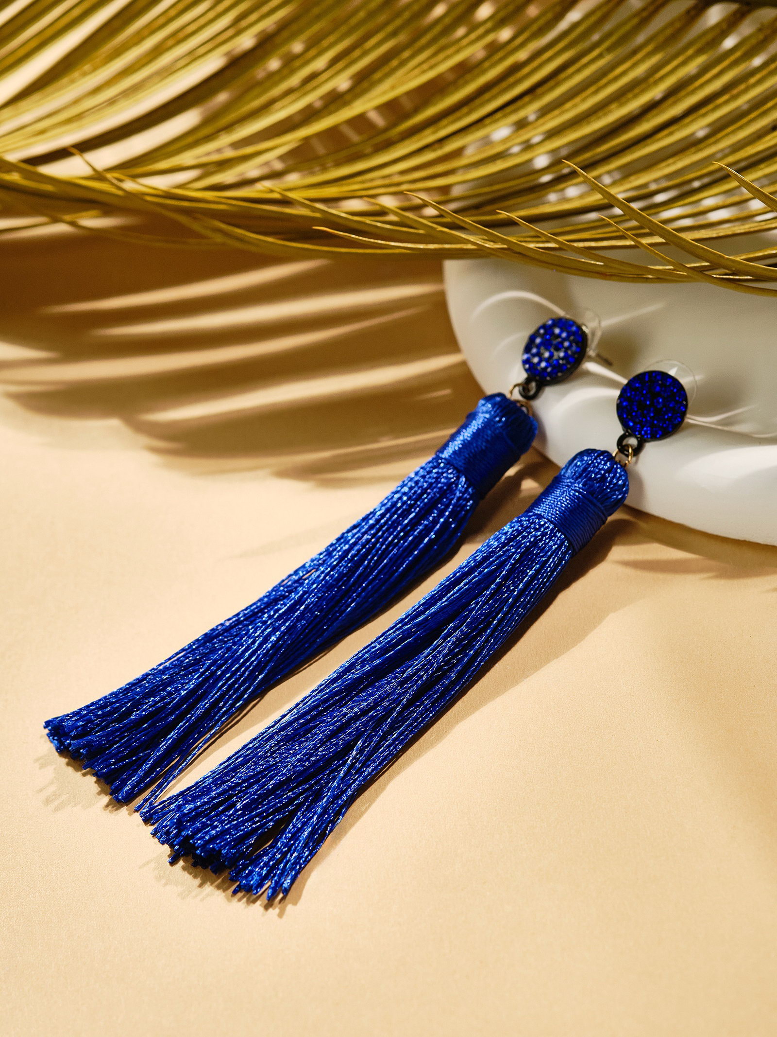 Серьги "Кисти" гармония, цвет синий L кисти 9.5см, 1.5x4.5x10.5 см., QF, Китай