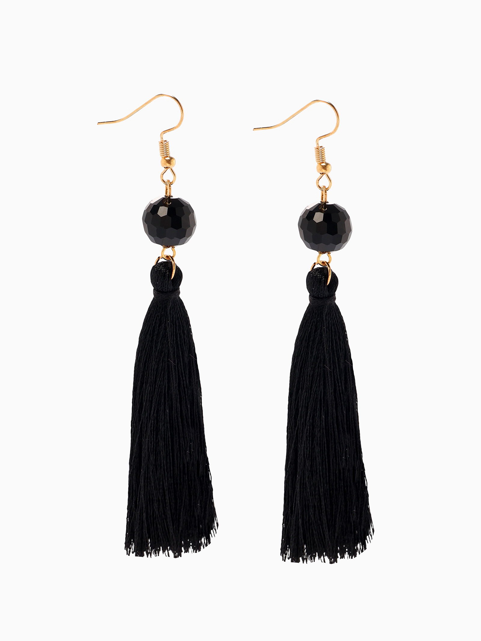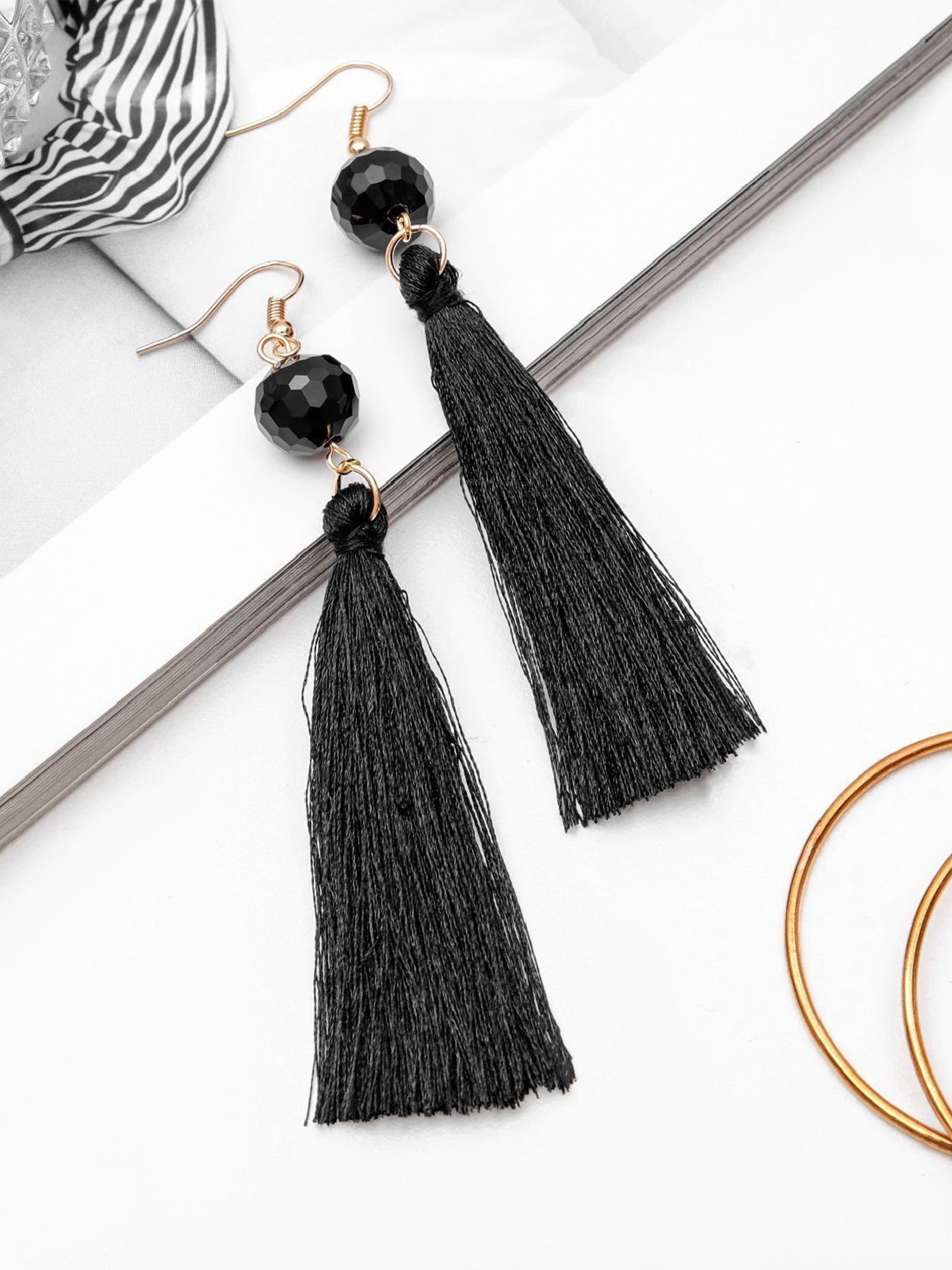 Серьги ассорти "Кисти" диско, цвет чёрный в золоте, L кисти 7 см, 1.7x11x0.5 см., QF, Китай