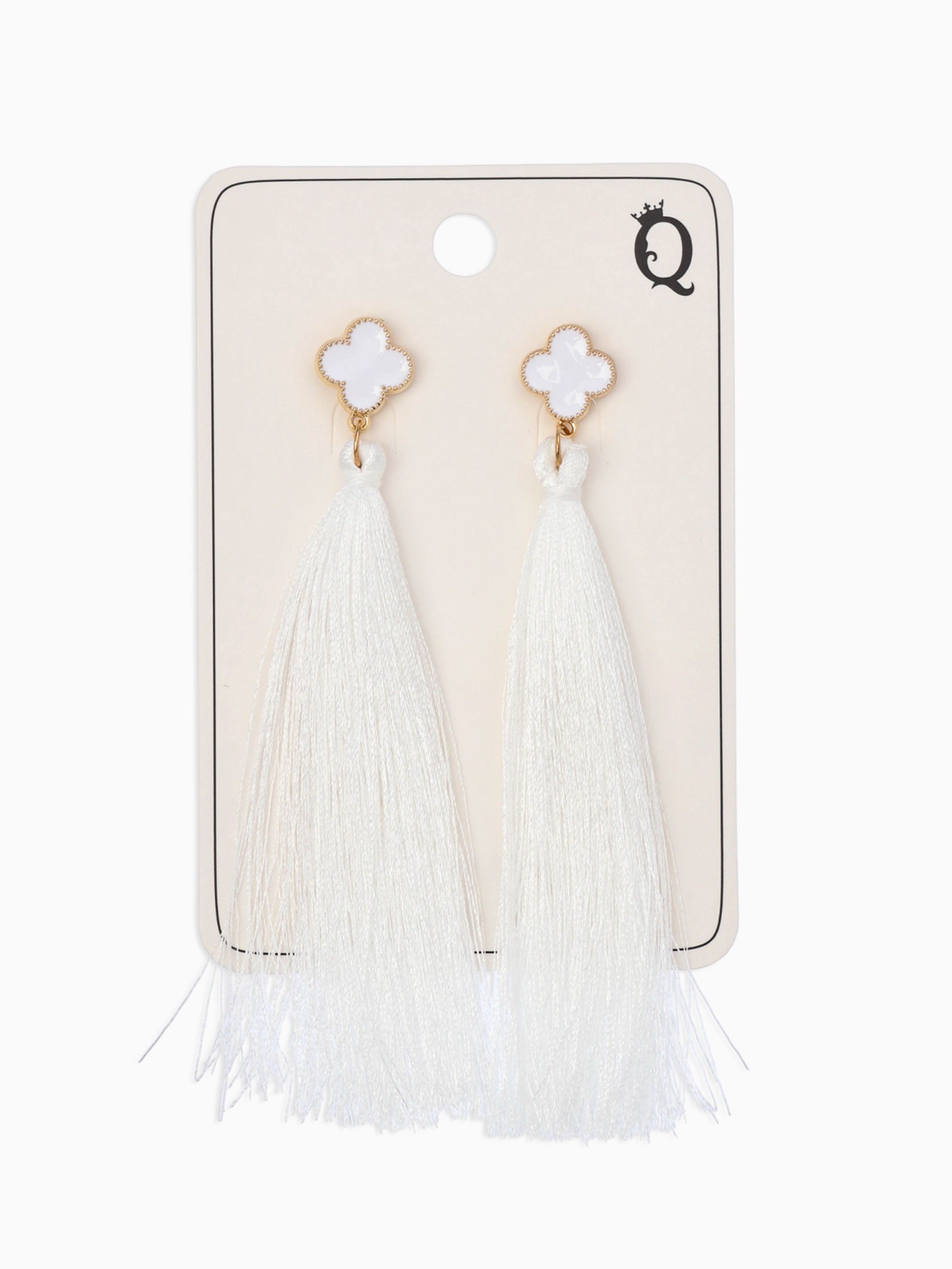 Серьги "Кисти", цвет белый в золоте, L кисти 8.7 см, 1.2x10.5x1 см., QF, Китай