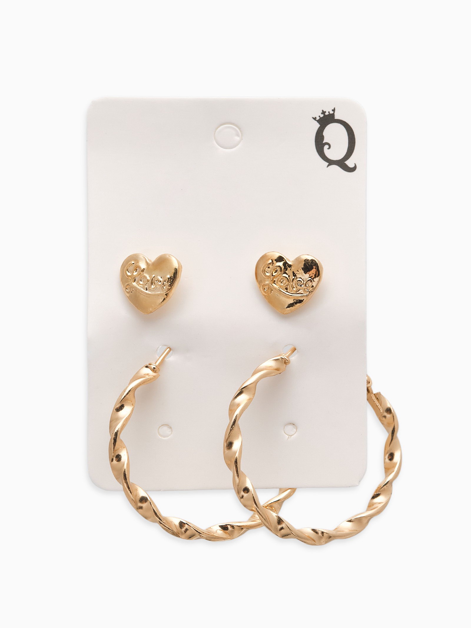 Набор серег "Сердце", 2 пары, d=2.5 см, цвет золото, 2.5x2.5x0.2 см., QF, Китай